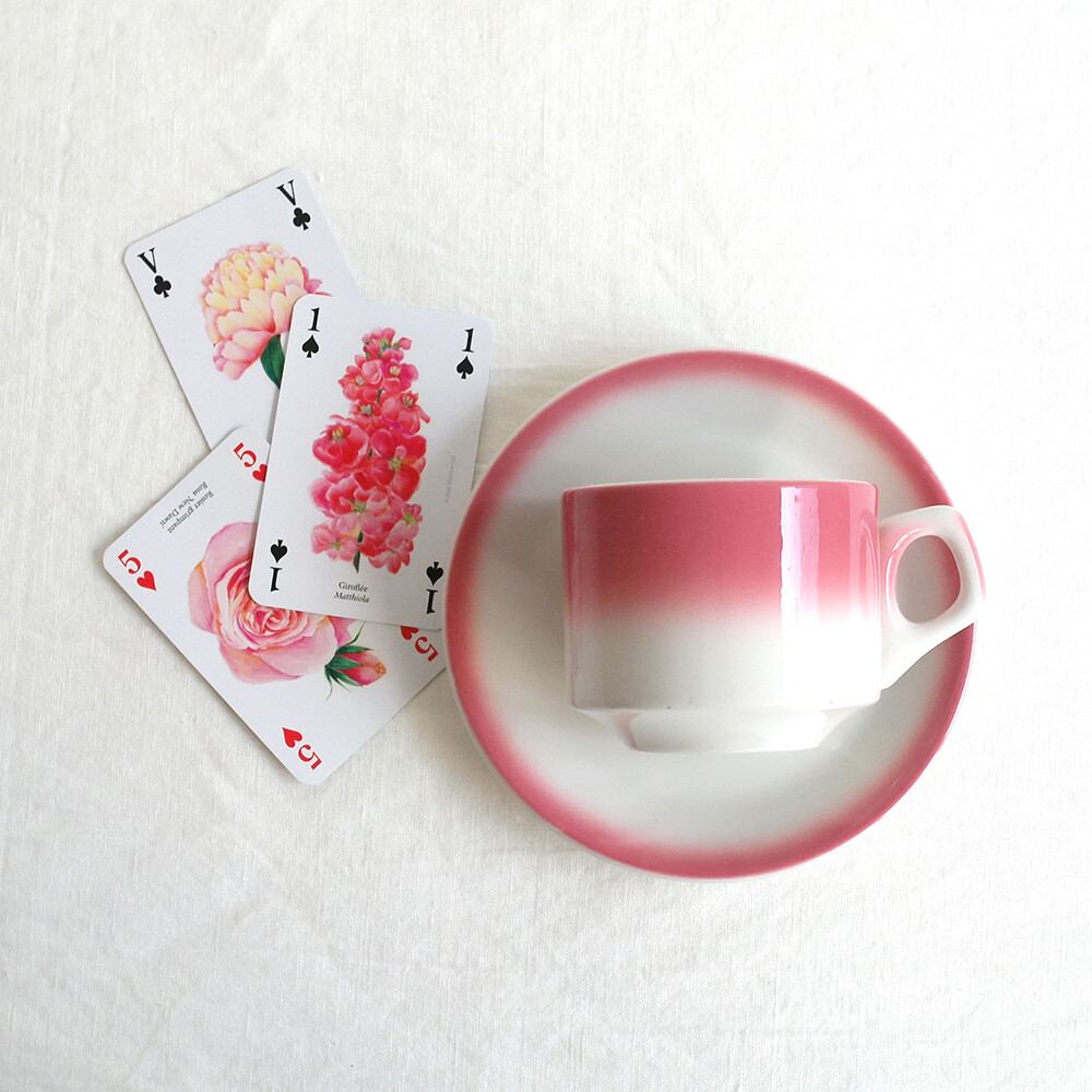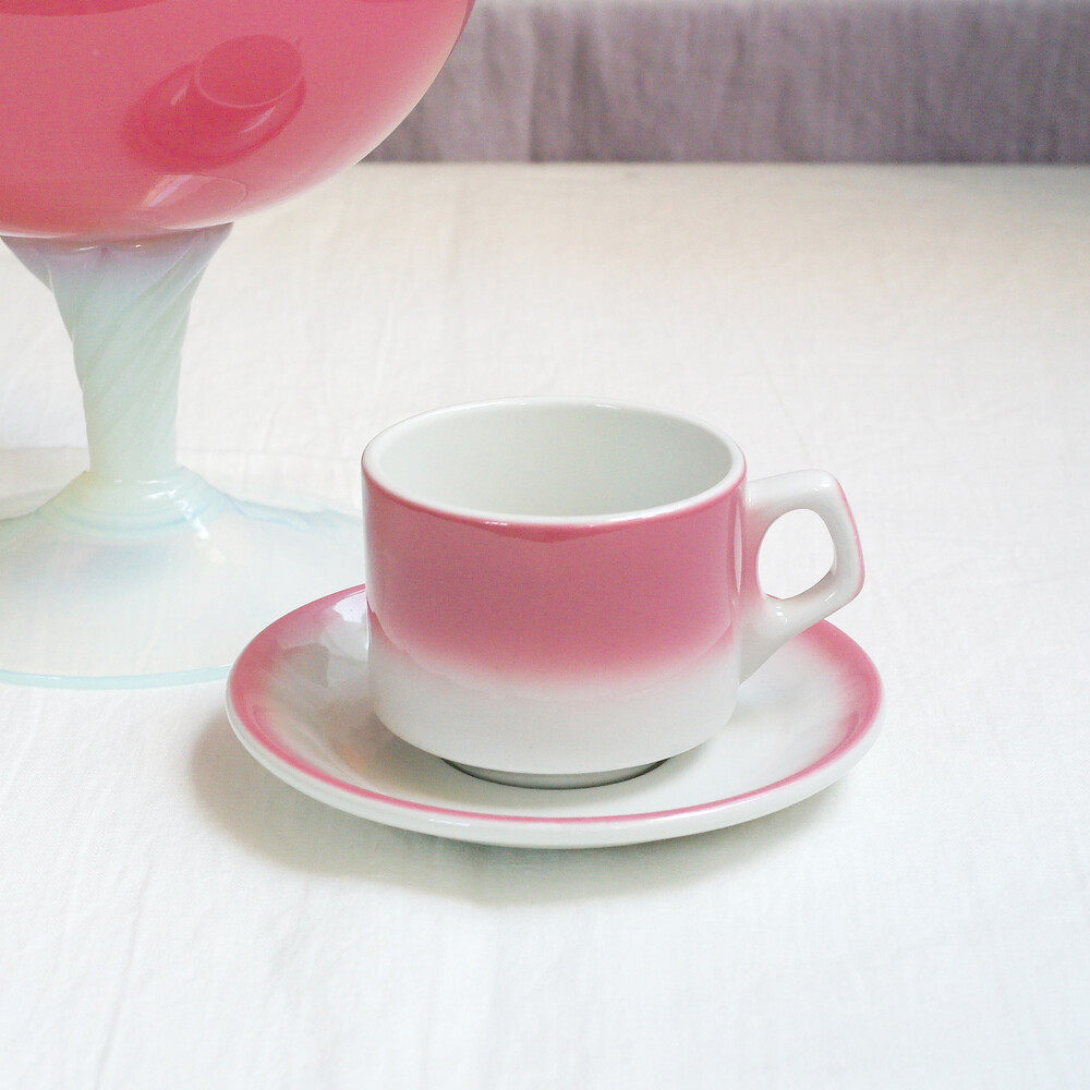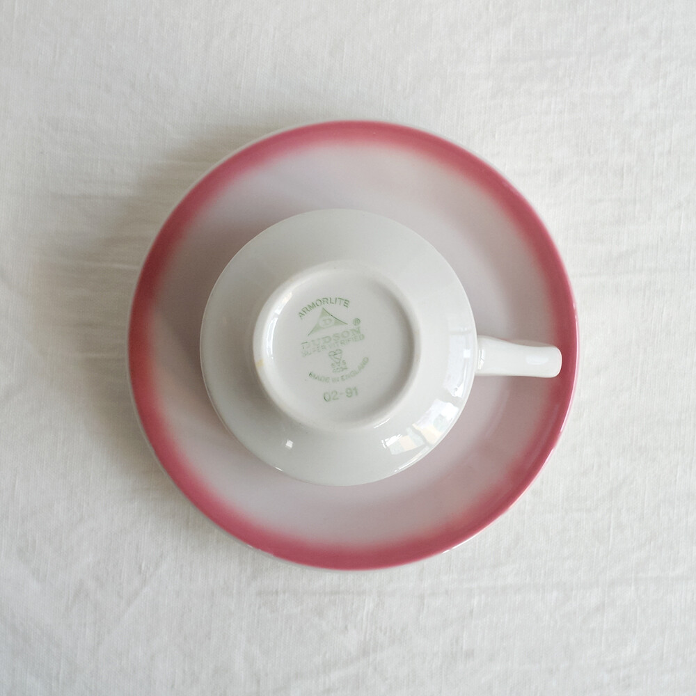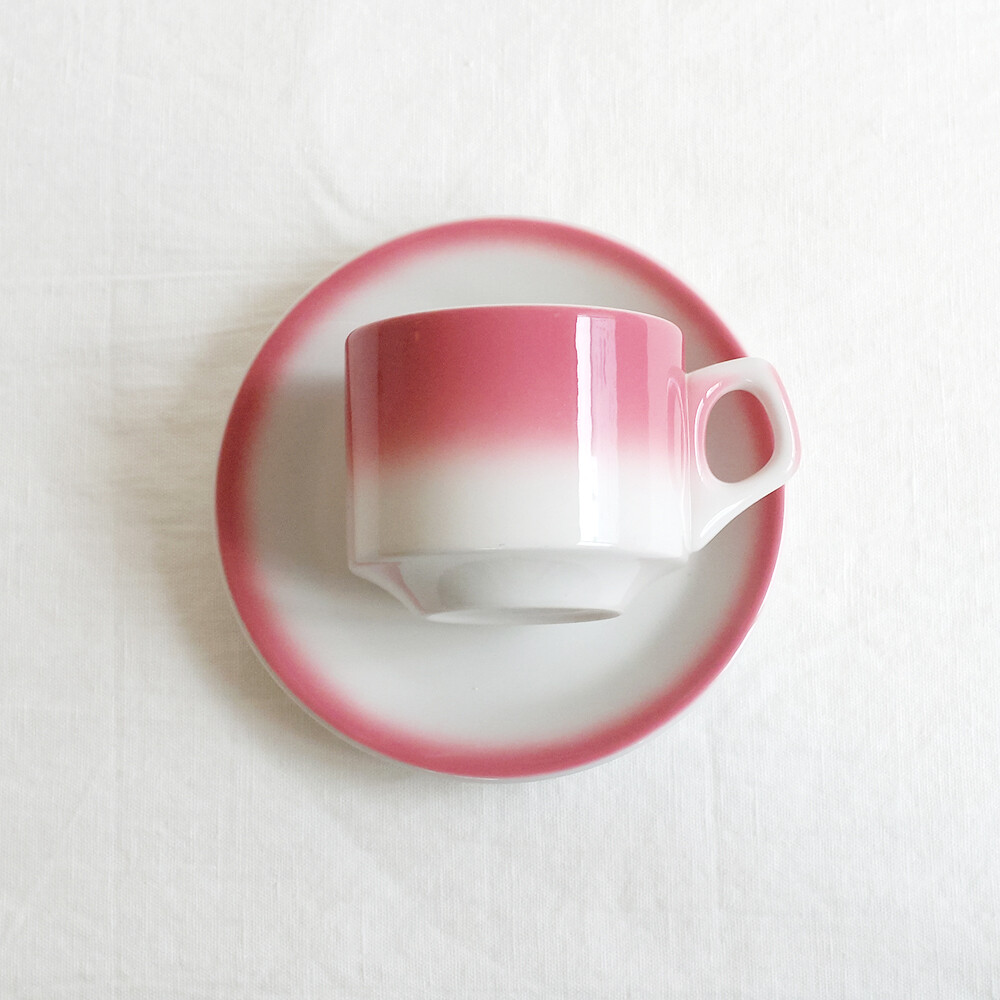 짙은 매홍빛의 그러데이션으로 컵의 바디부분과 손잡이에 포인트를 준 찻잔 세트 입니다.
