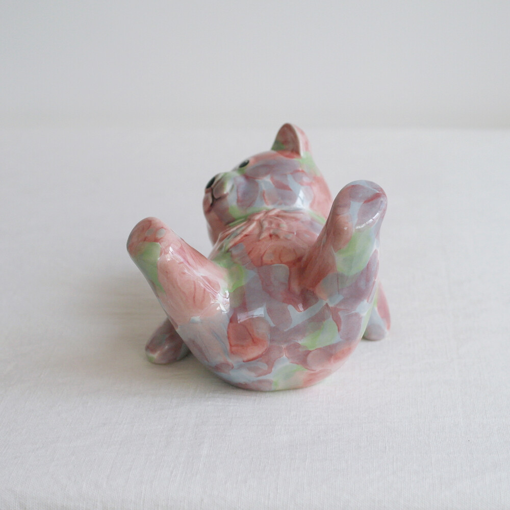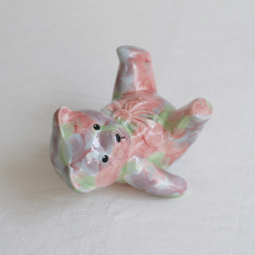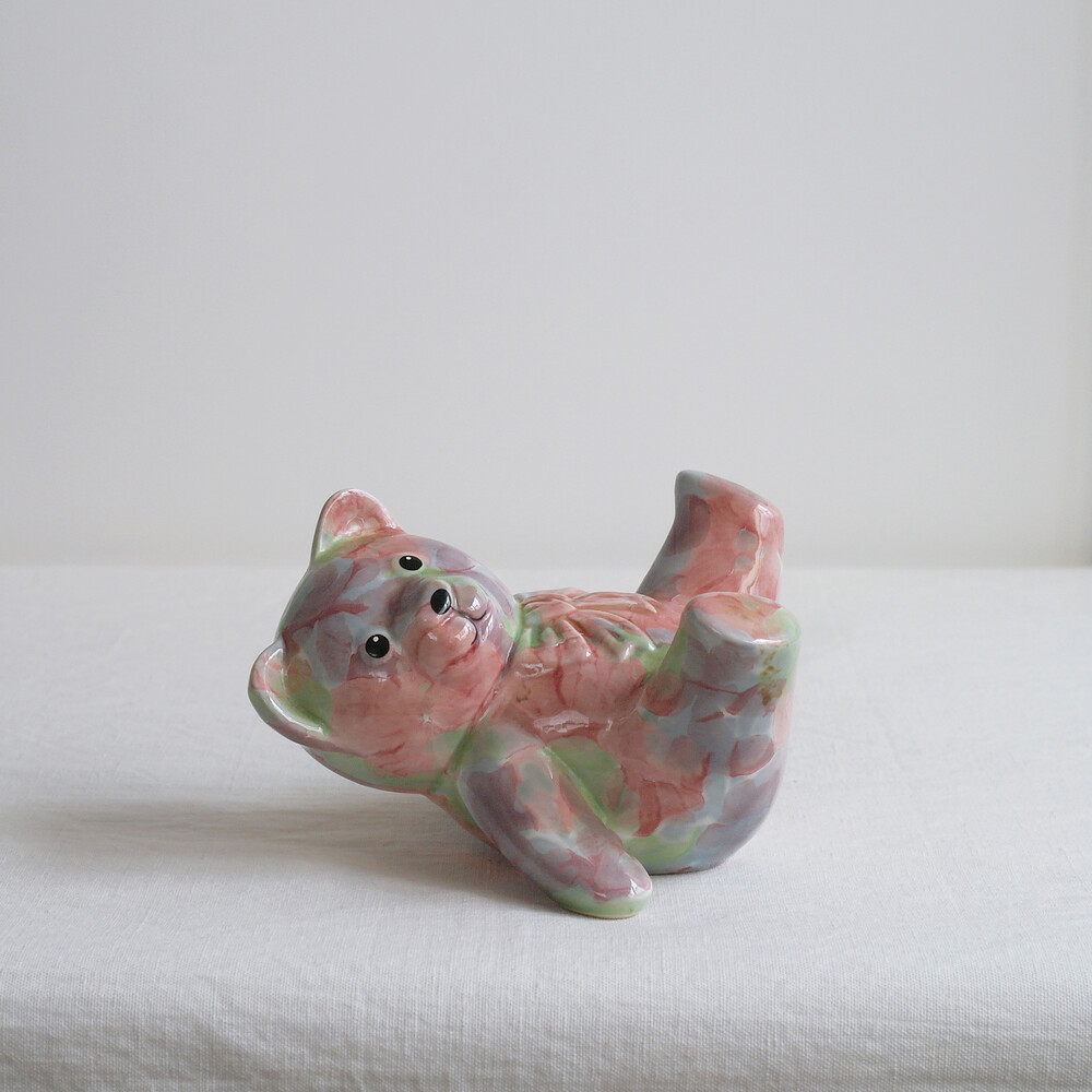 VINTAGE CERAMIC - PURPLE & PINK PARK FLORAL TEDDY
