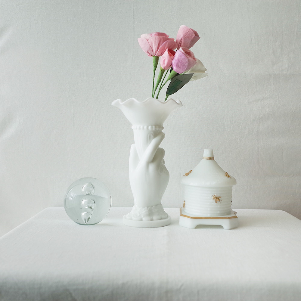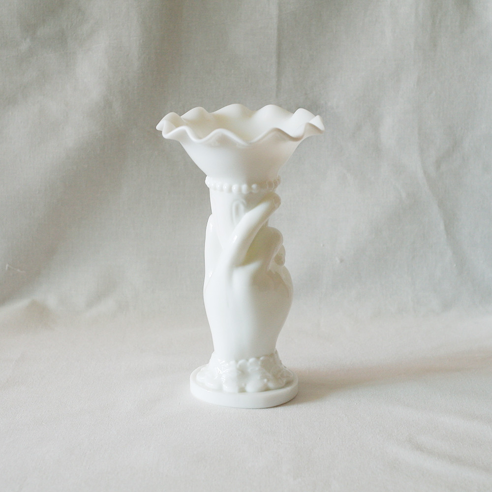 주물의 경계가 거의 보이지 않는 오팔린 유리 제품입니다.