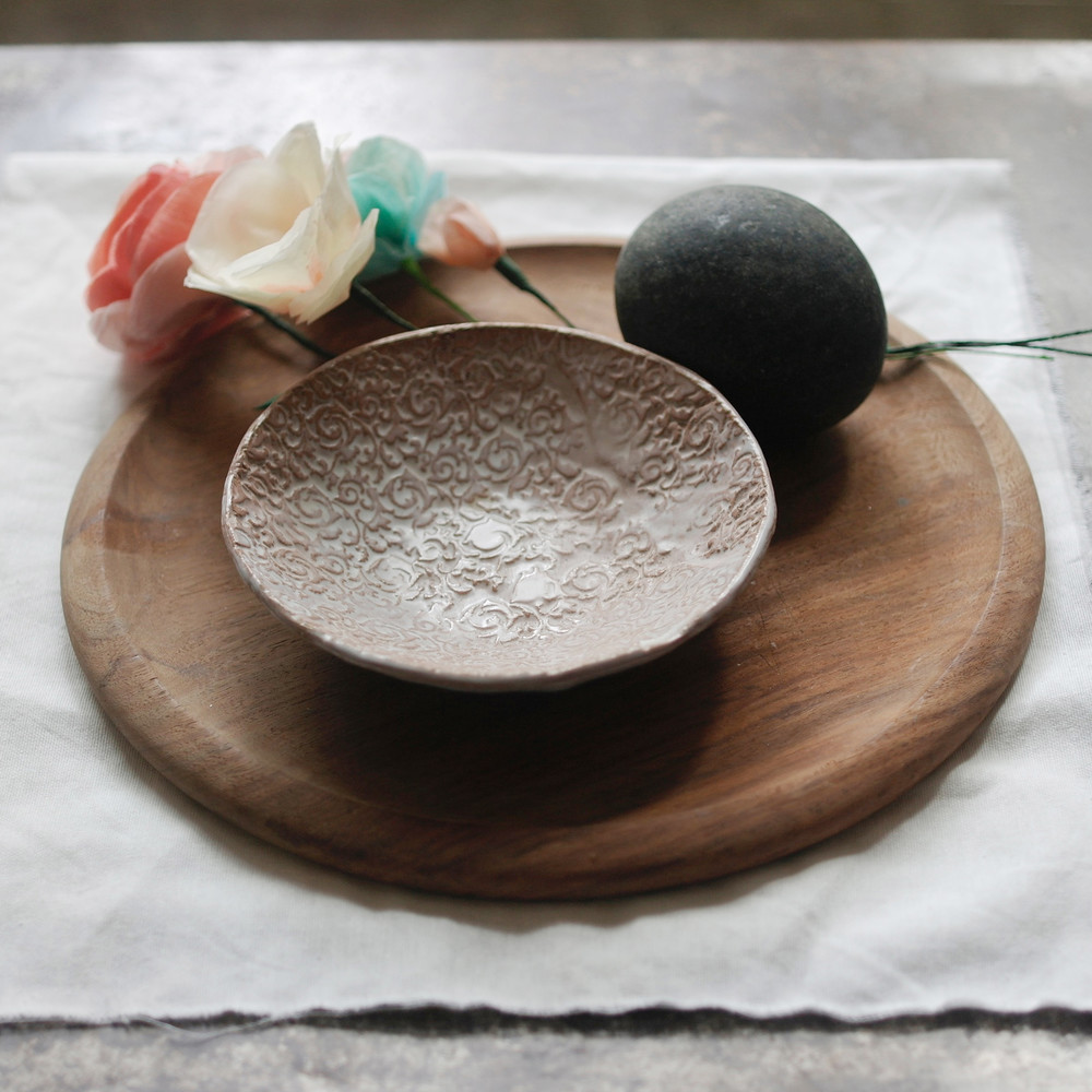 도자기 표현에 찍은 뒤 접시 형태로 빚었습니다.