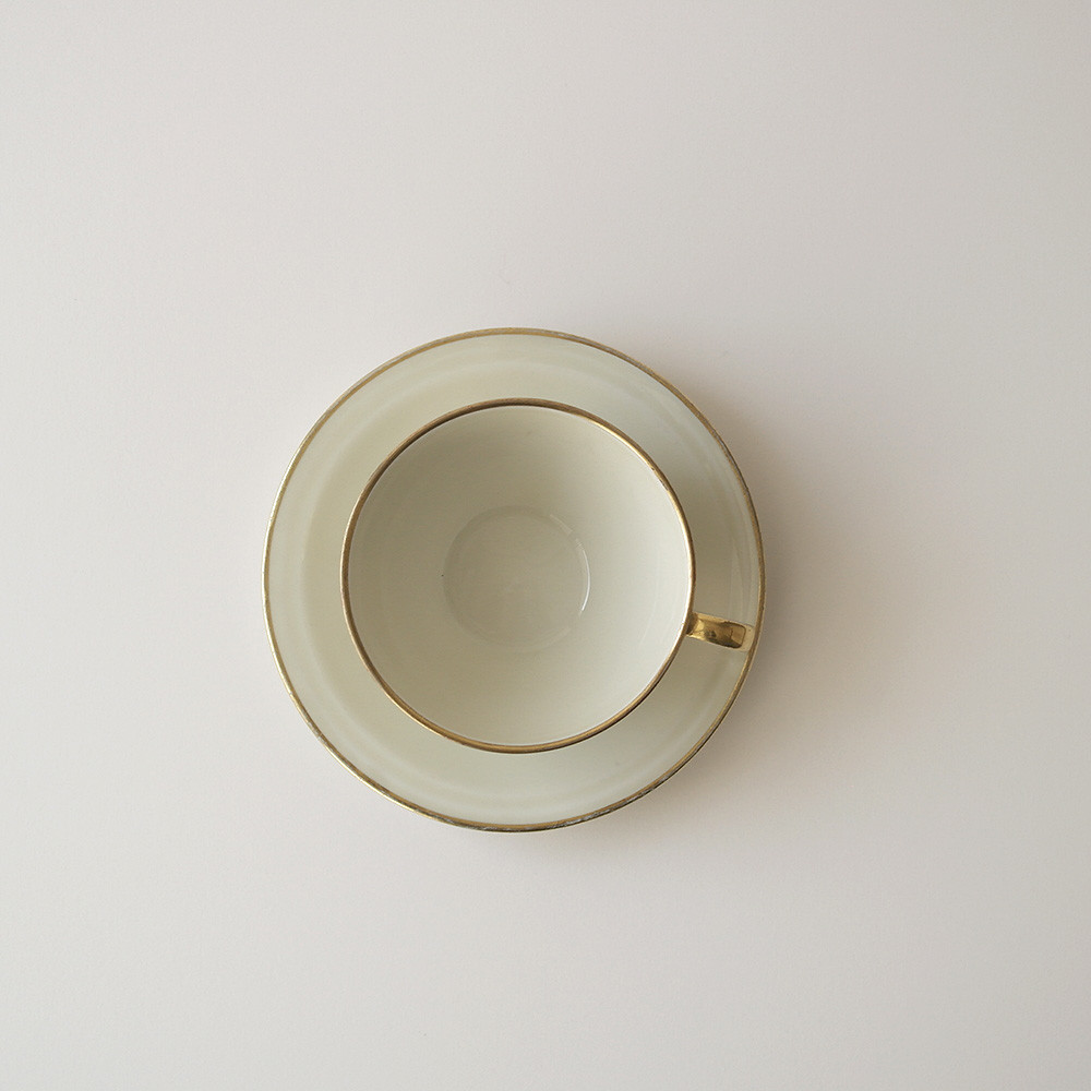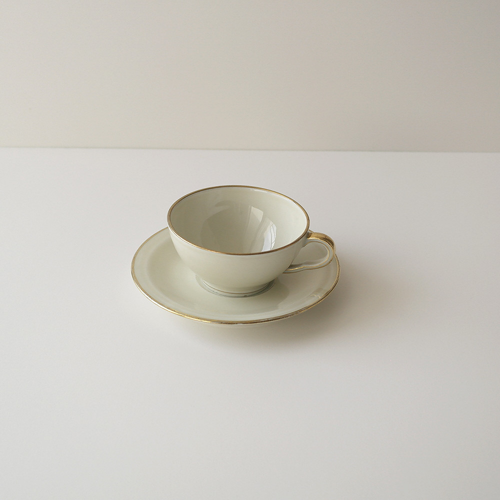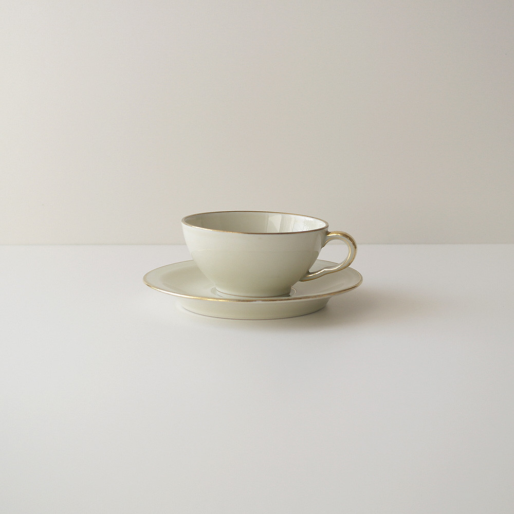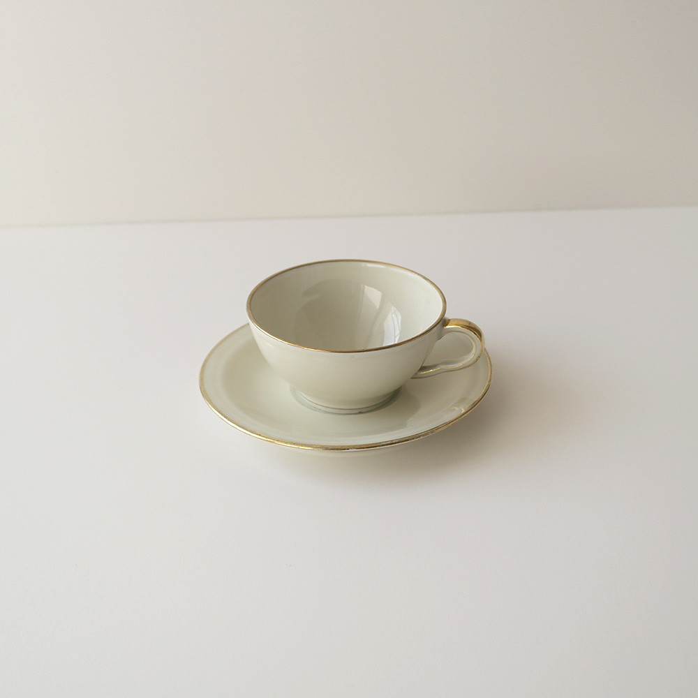 베이지톤의 도자기와 골드림, 그리고 단순한 형태가 매우 우아한 컵입니다.