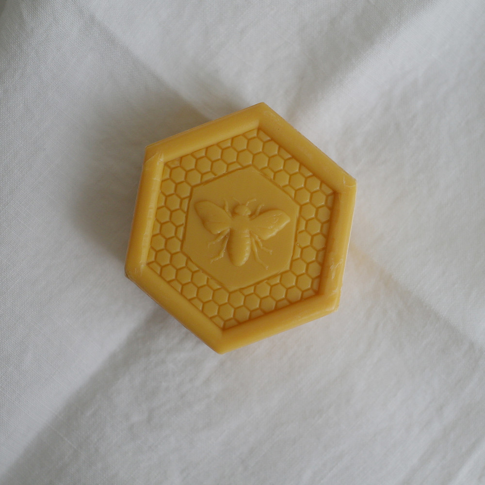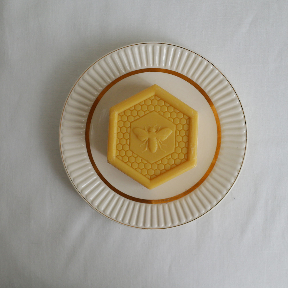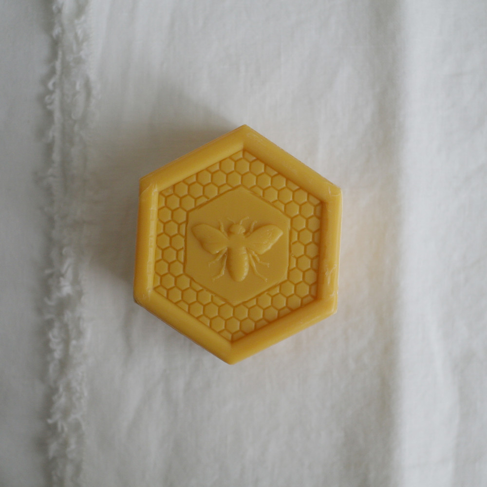 벌모양이 새겨진 육각형 모양의 꿀비누 입니다.
