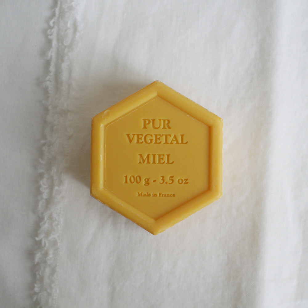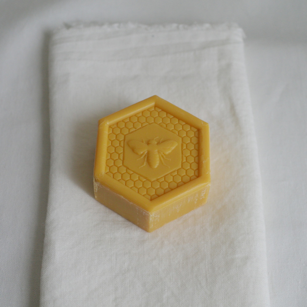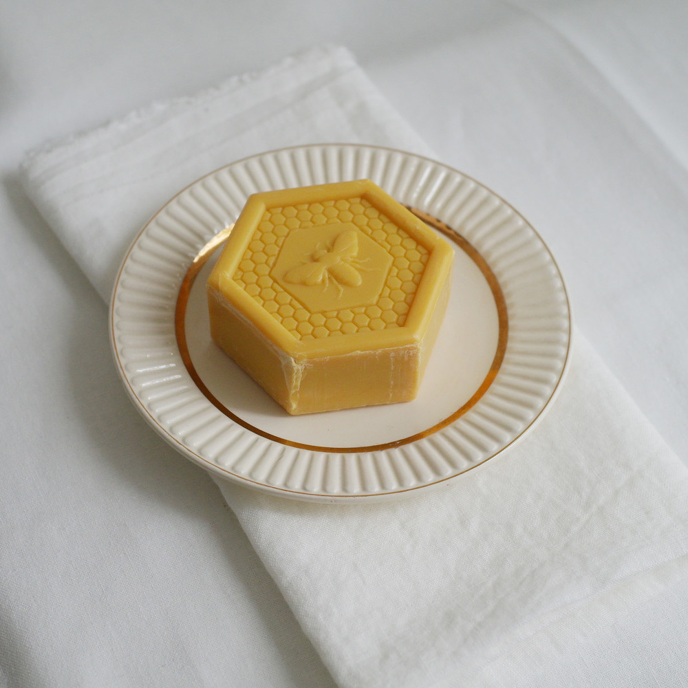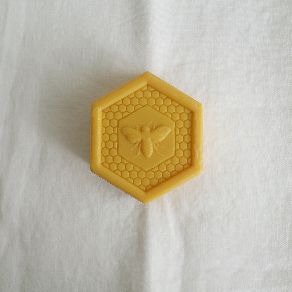 벌모양이 새겨진 육각형 모양의 꿀비누 입니다.