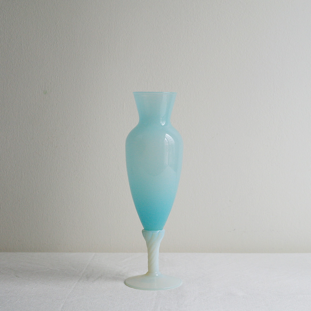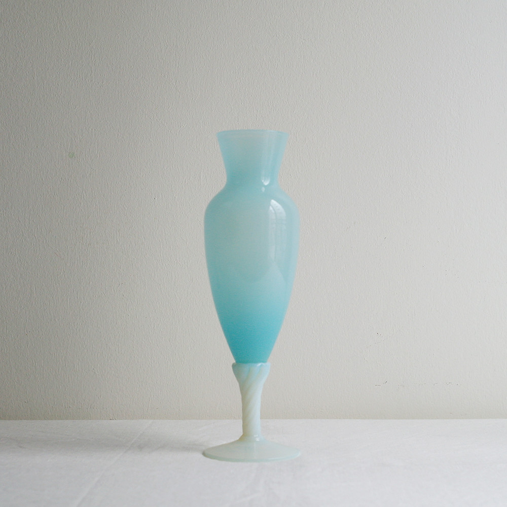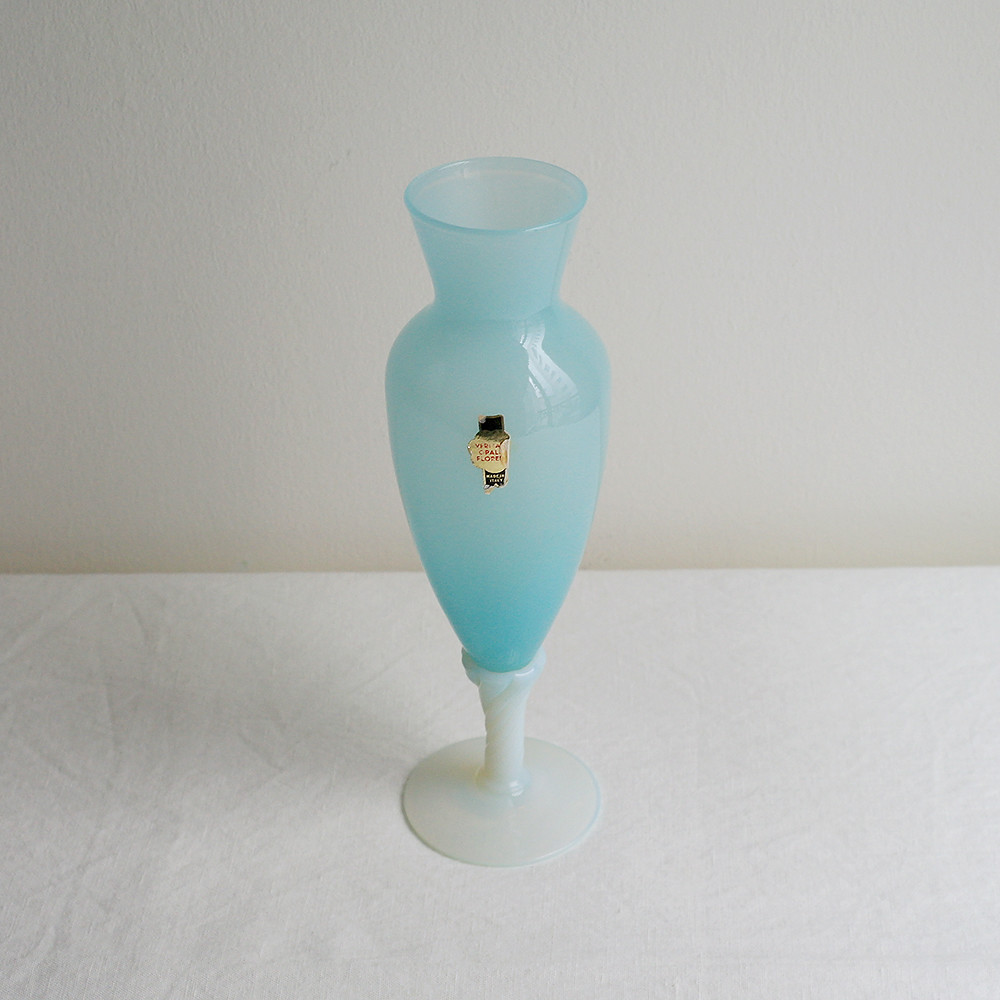 밝은 하늘색과 하얀색 받침의 오팔린 화병