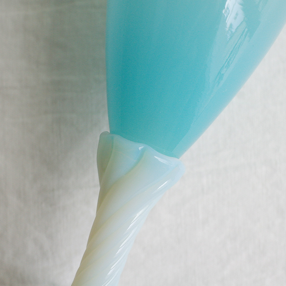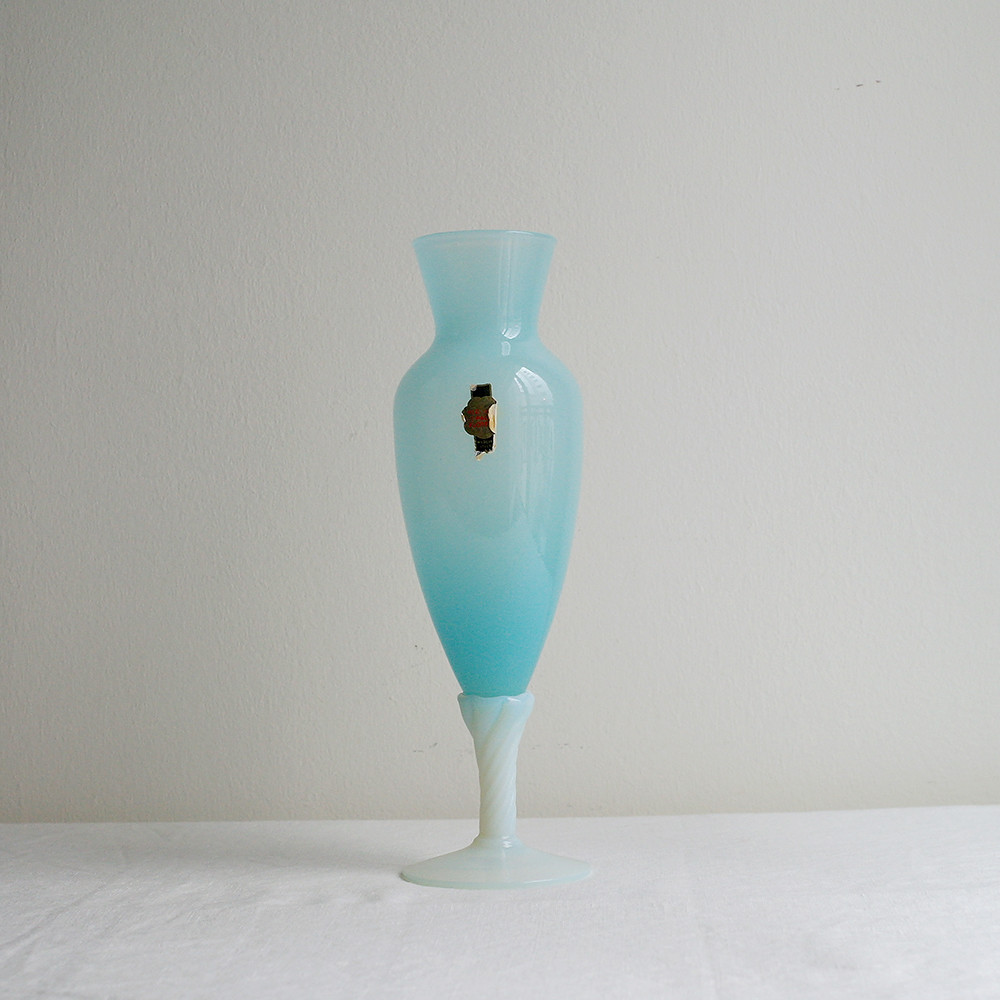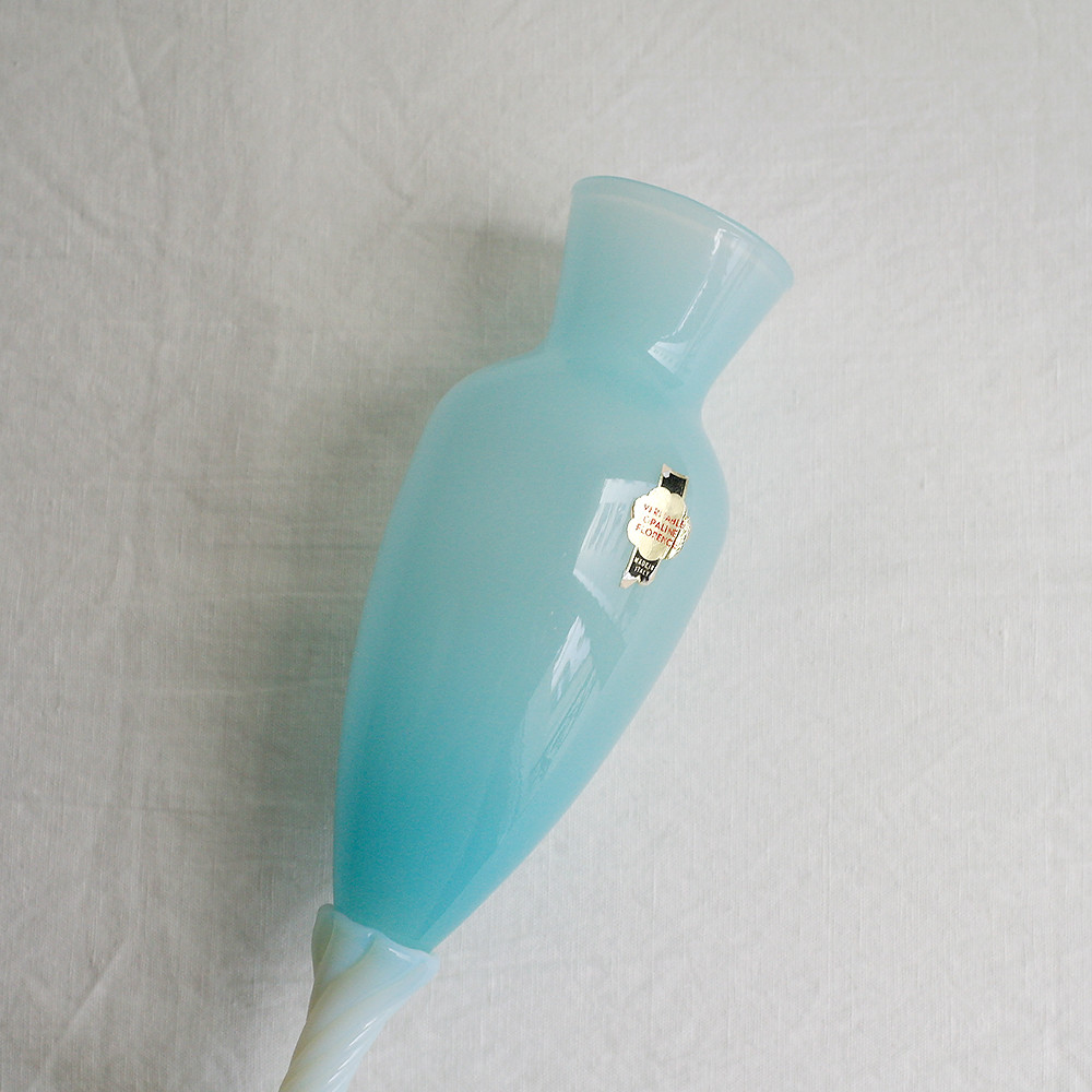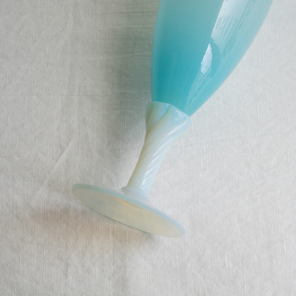 밝은 하늘색과 하얀색 받침의 오팔린 화병