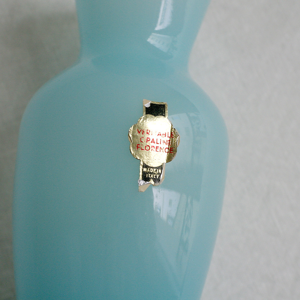 밝은 하늘색 바디의 오팔린 화병입니다.