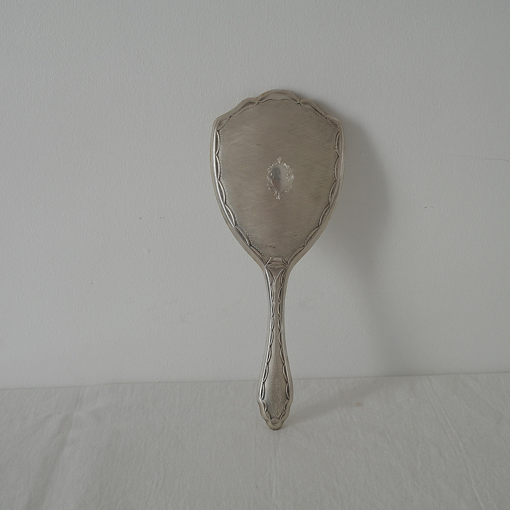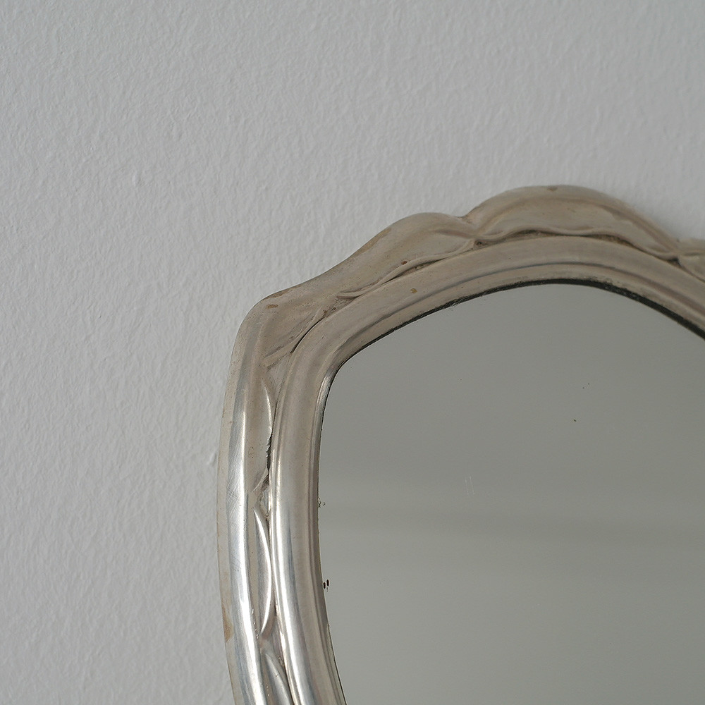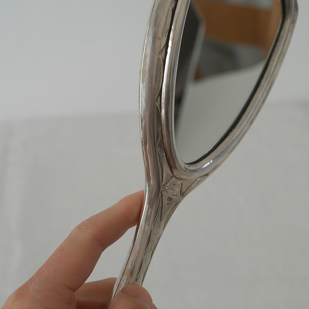 ANTIQUE MIROIR DE POCHE EN METAL ARGENTÉ