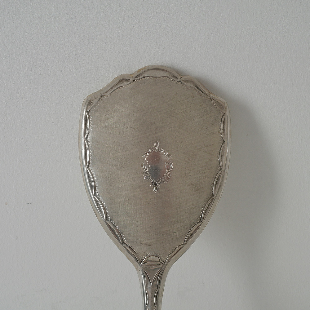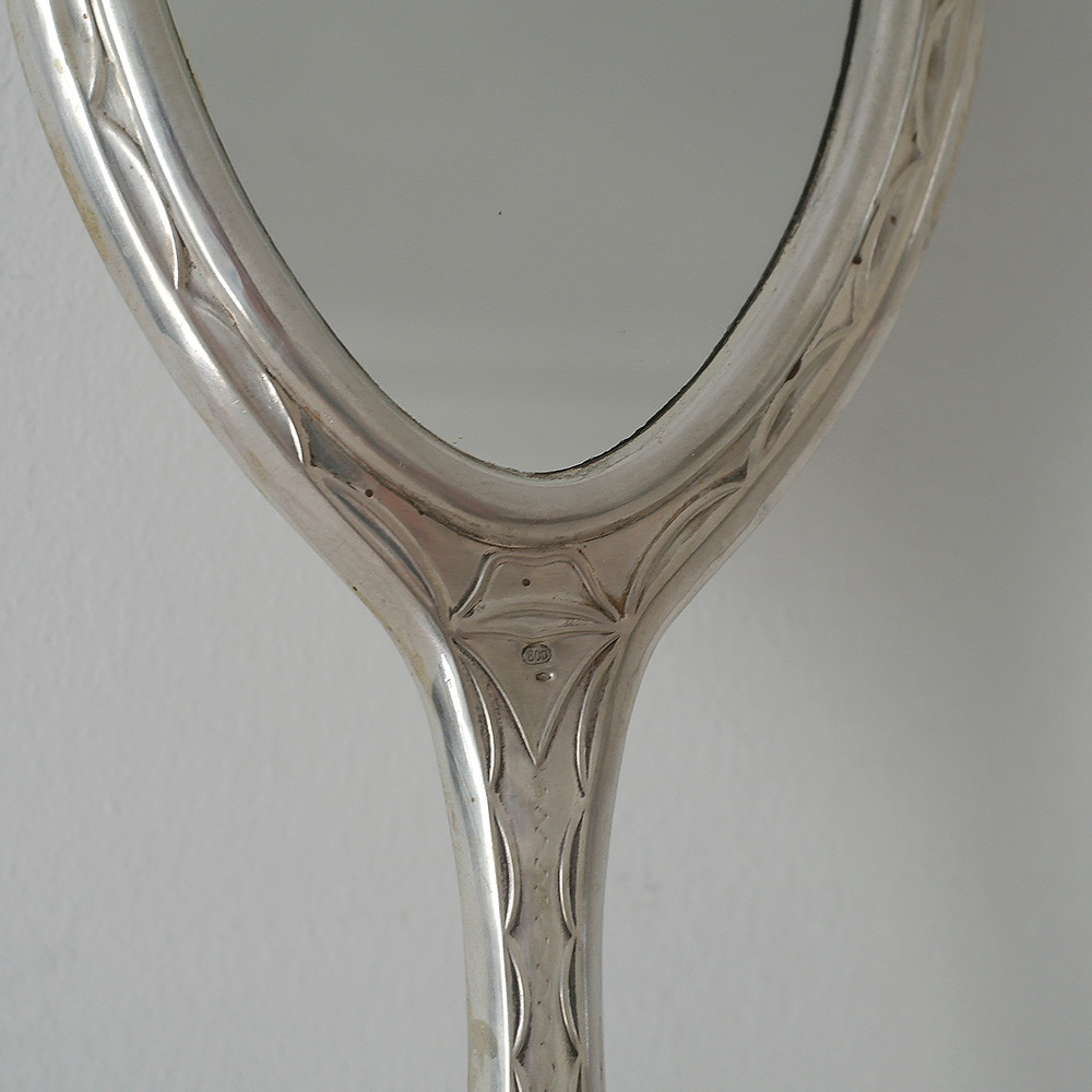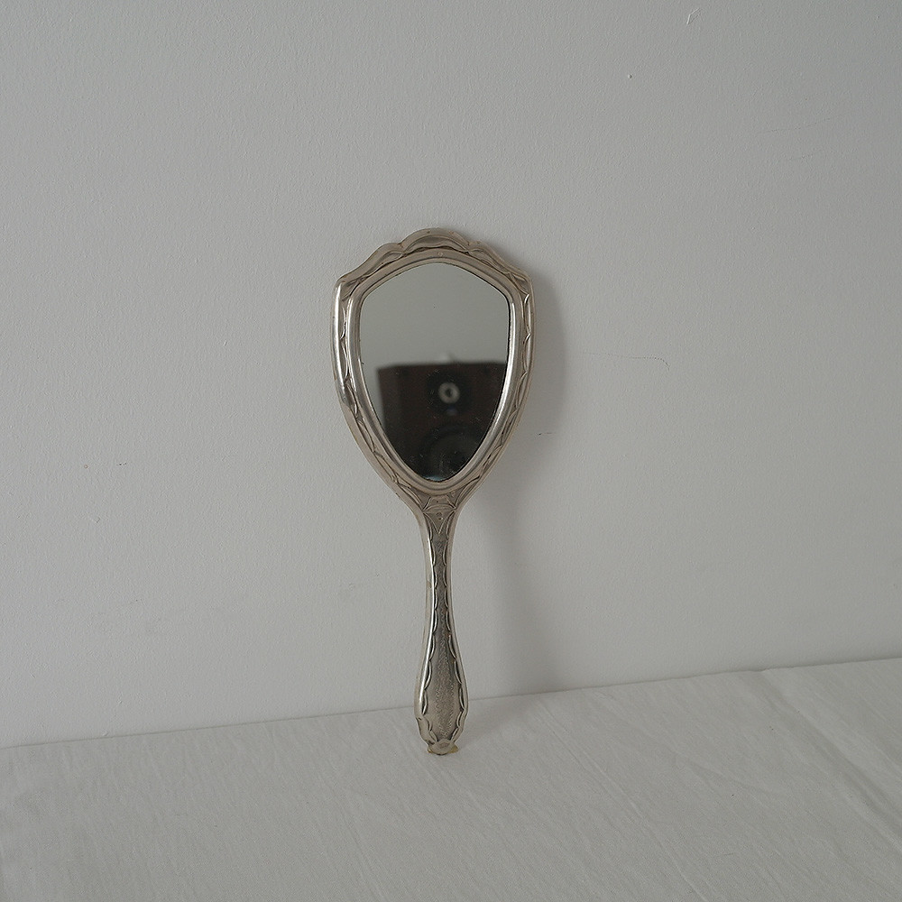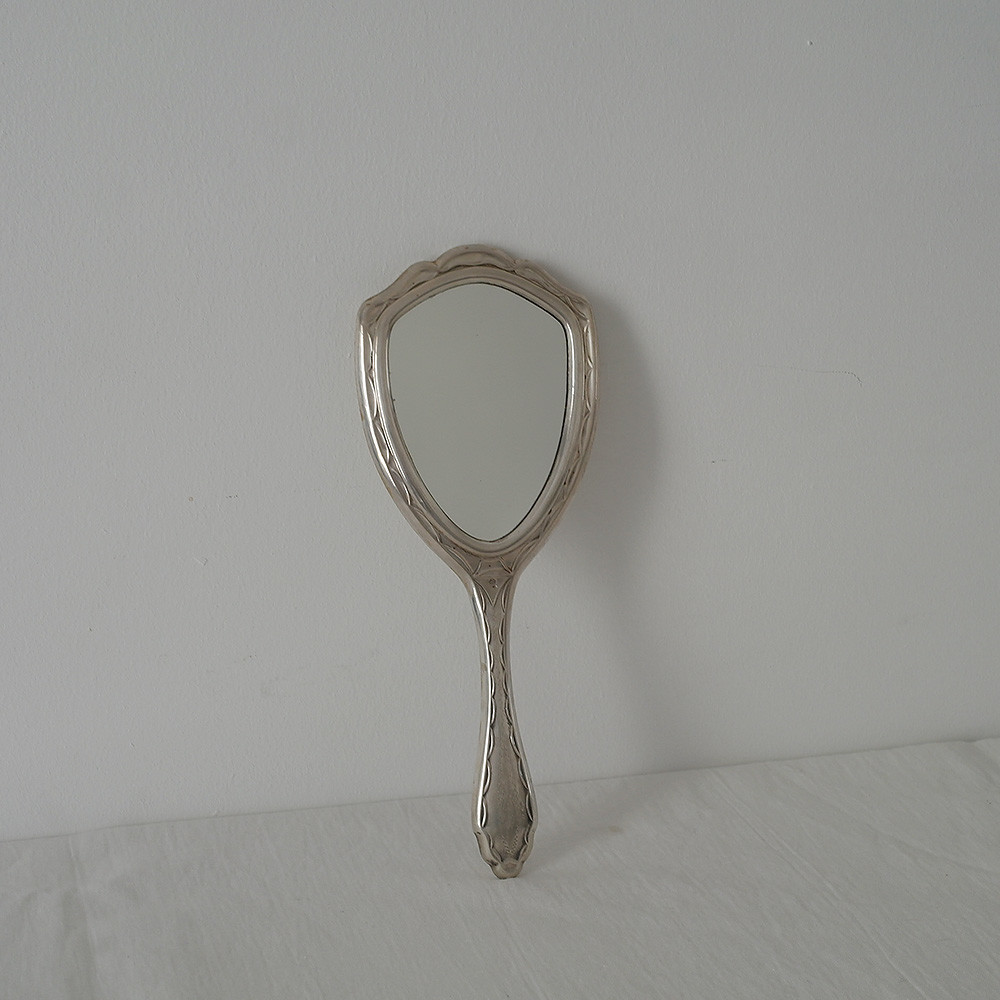 ANTIQUE MIROIR DE POCHE EN METAL ARGENTÉ