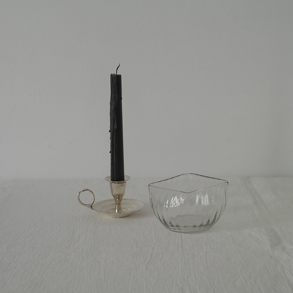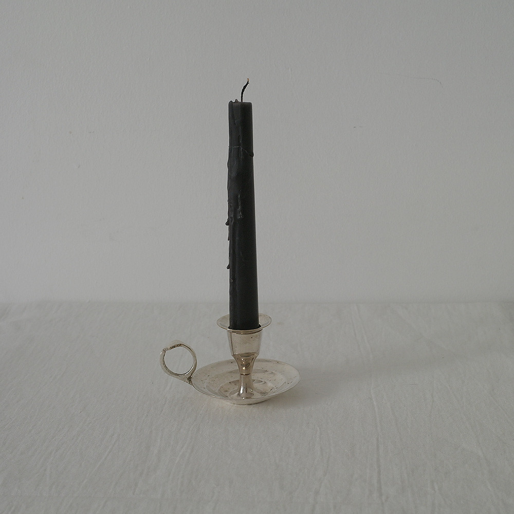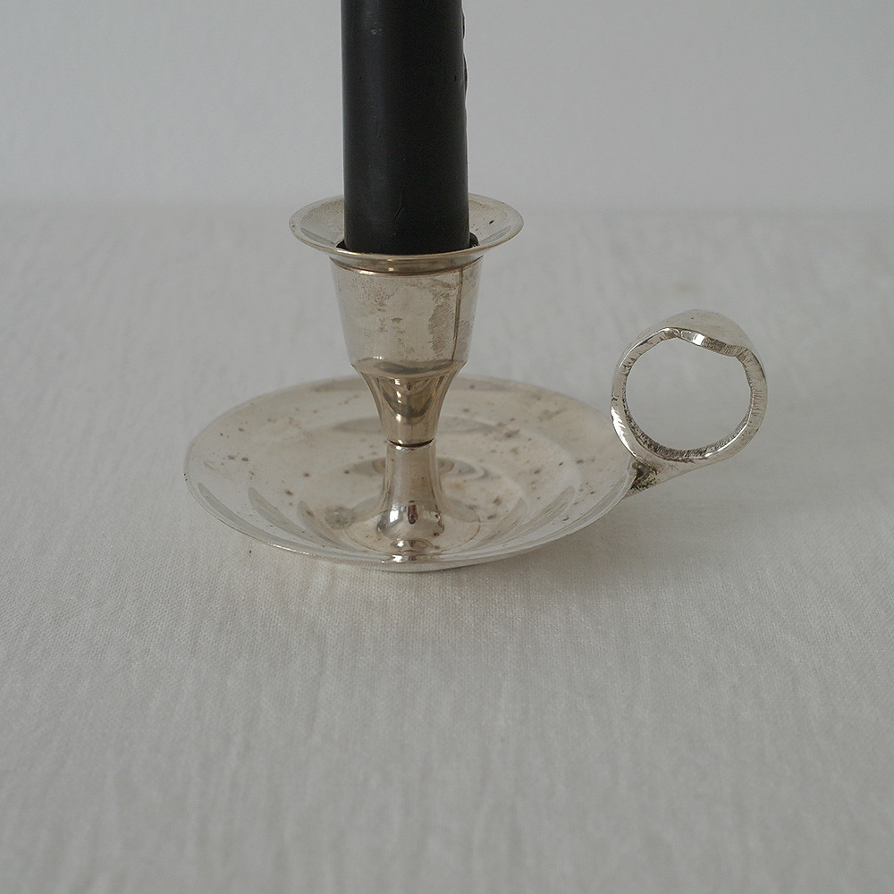 초를 쉽게 옮길 수 있도록 동그란 손잡이가 달린 빈티지 은도금 촛대 입니다.
