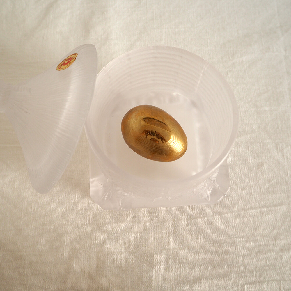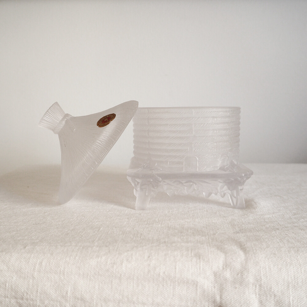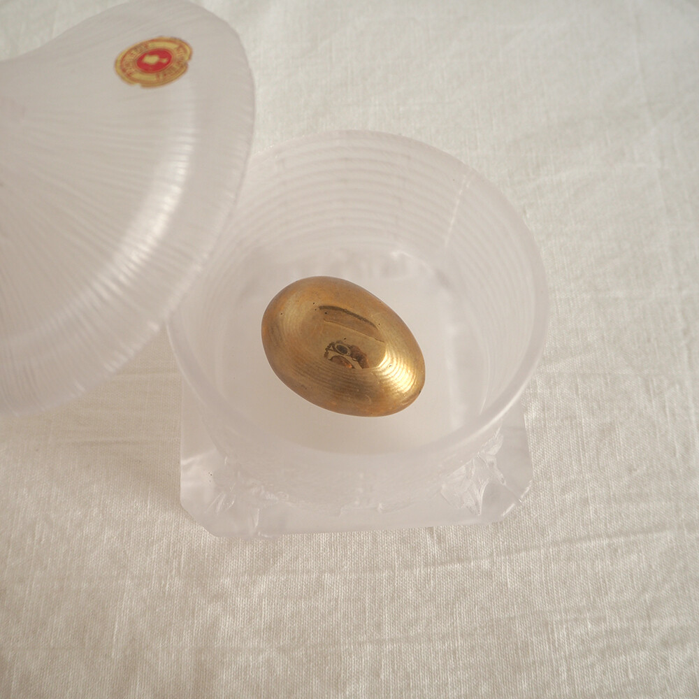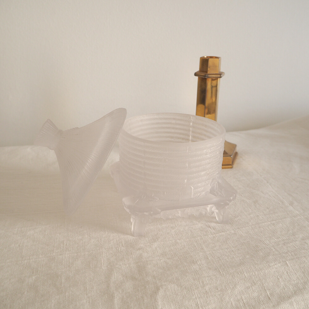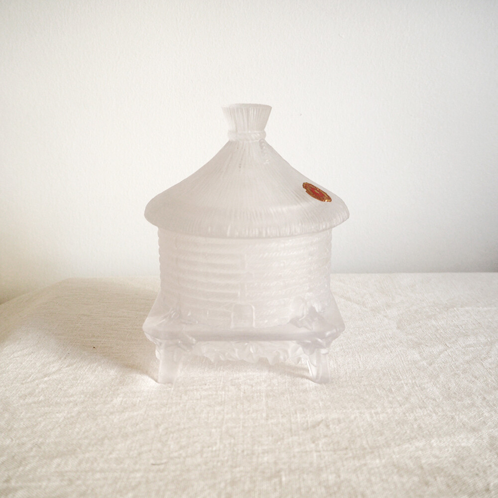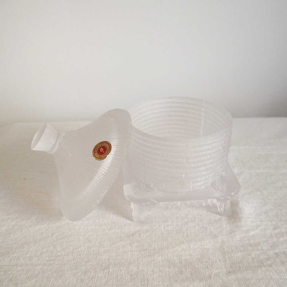 무광의 반투명한 유리로 만들어진 설탕 통입니다.