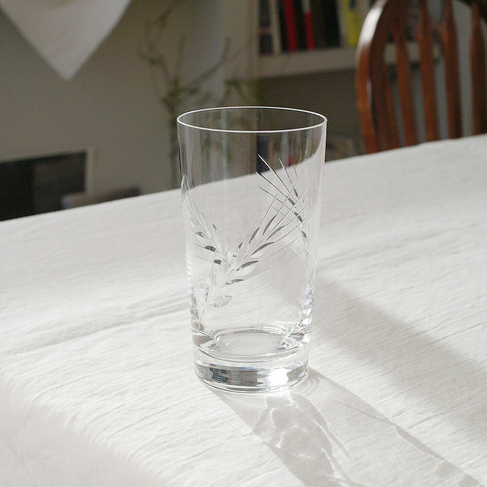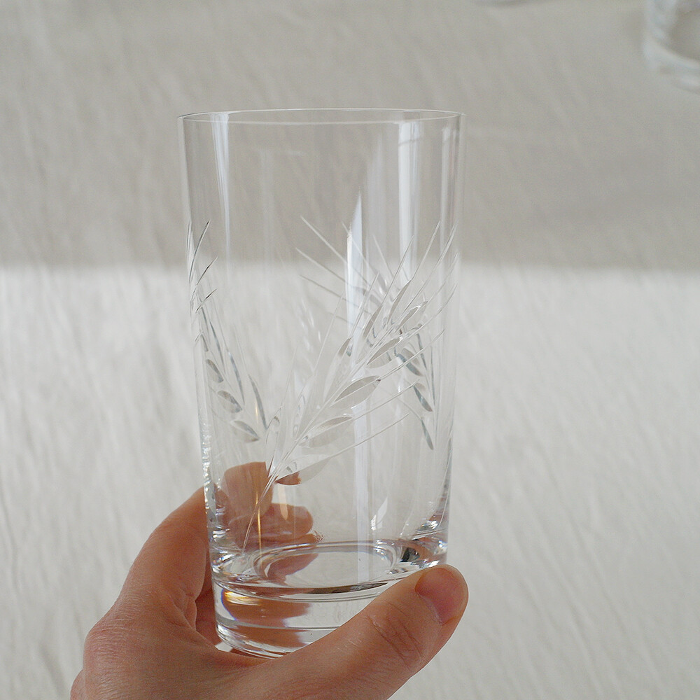 컵의 겉 부분에 보리 모양을 음각으로 장식한 크리스탈 컵입니다.