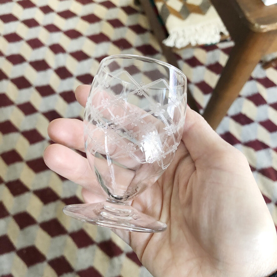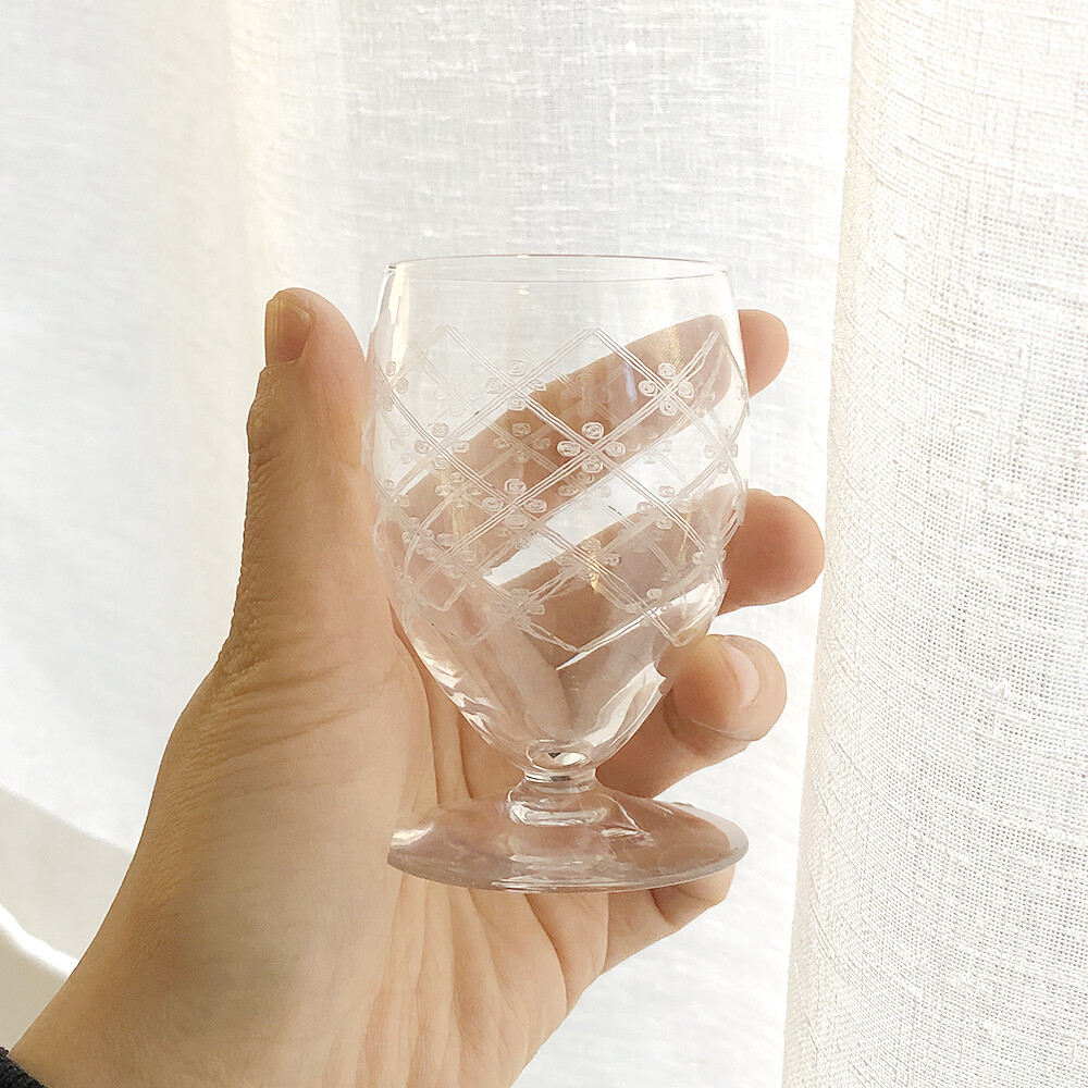 세세하게 새겨진 체크 무늬가 고급스러운 생루이 크리스탈 빈티지 잔입니다.