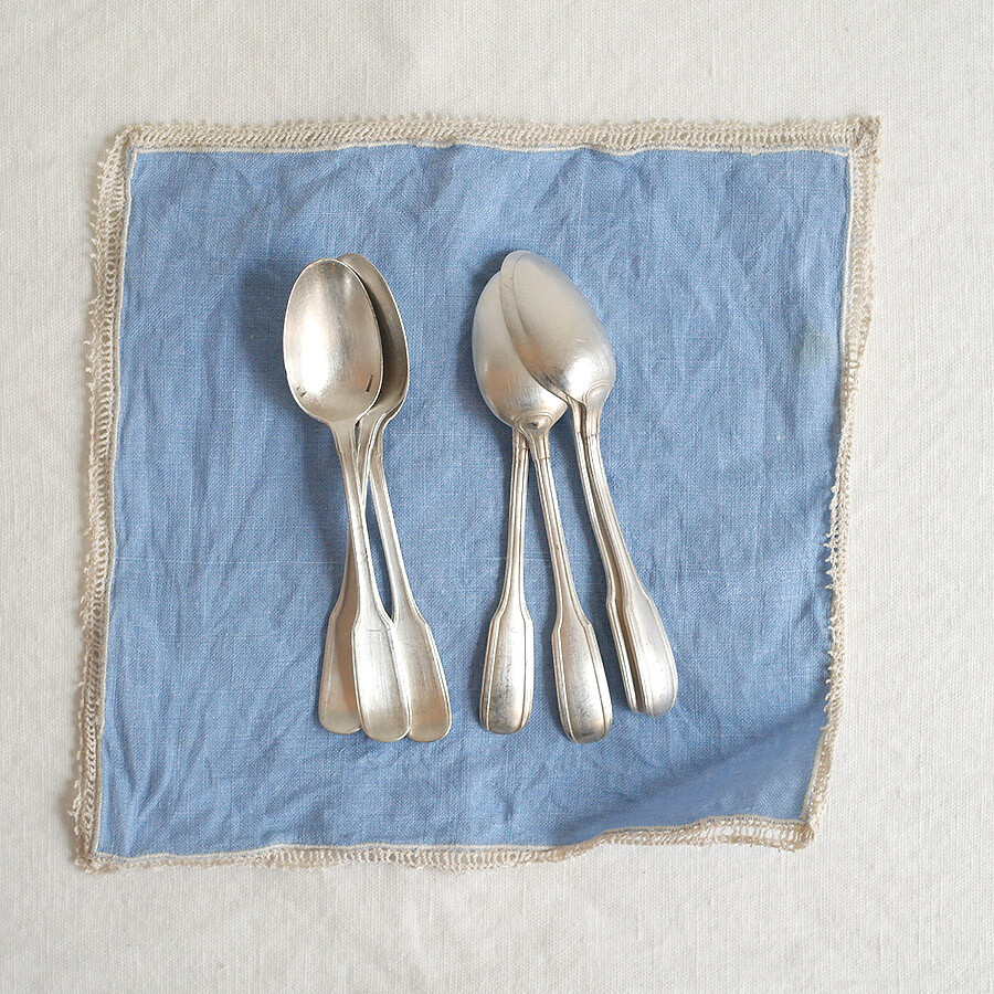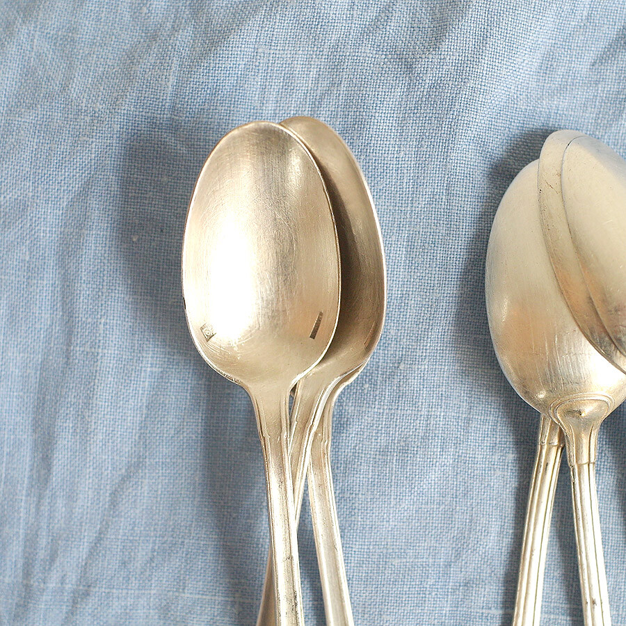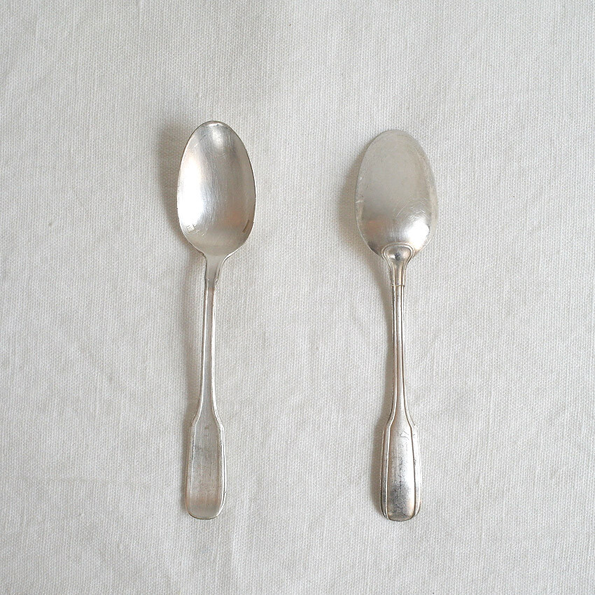 은도금 제품임을 뜻하는 두개의 도장이 스푼 안쪽에 찍혀 있습니다.