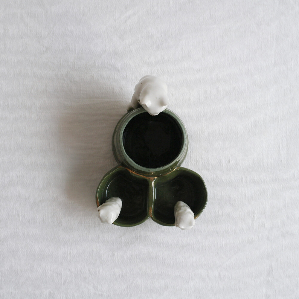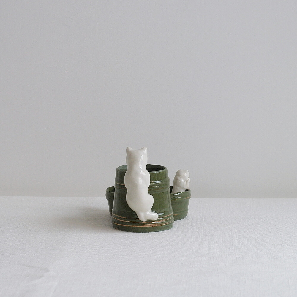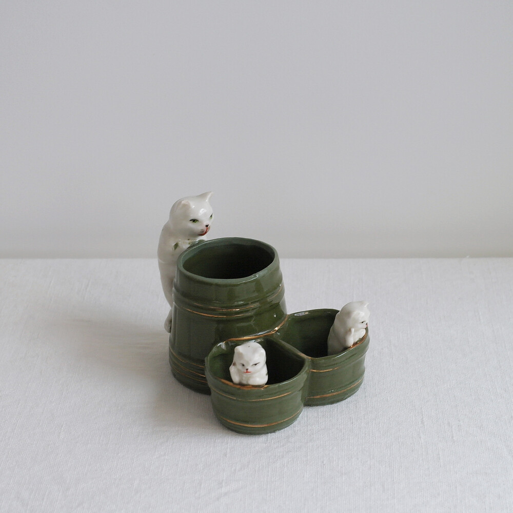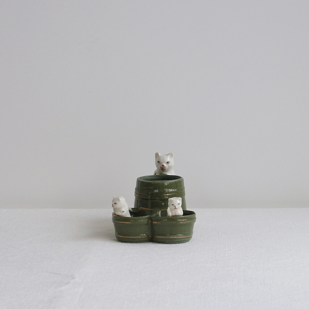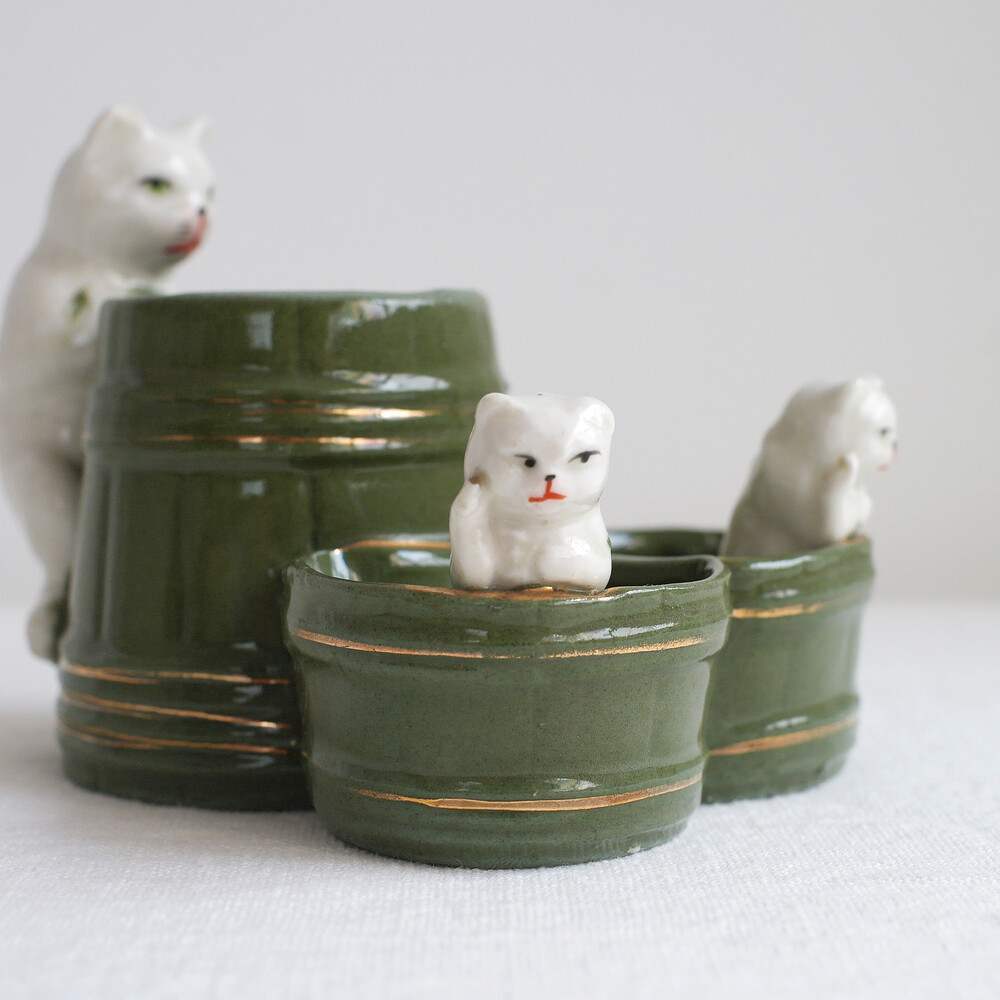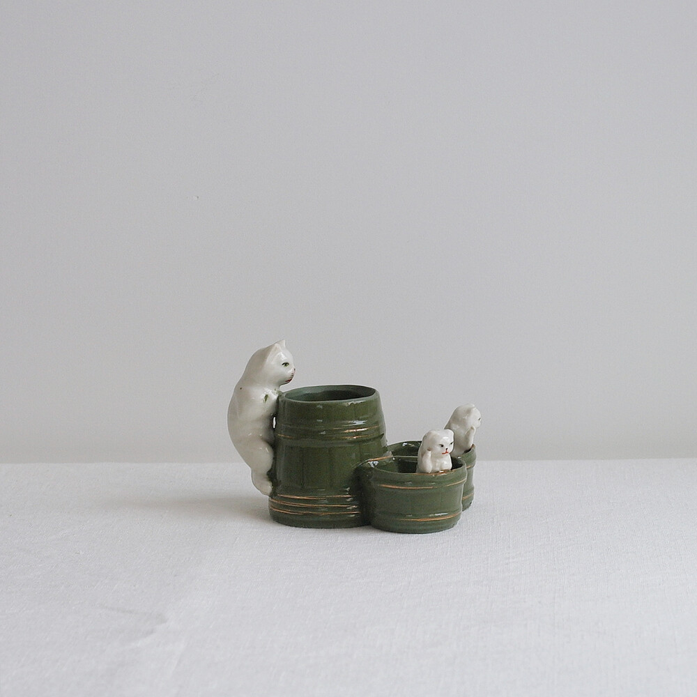 고양이 세 마리가 세 개의 통에 들어있는 양념통입니다.