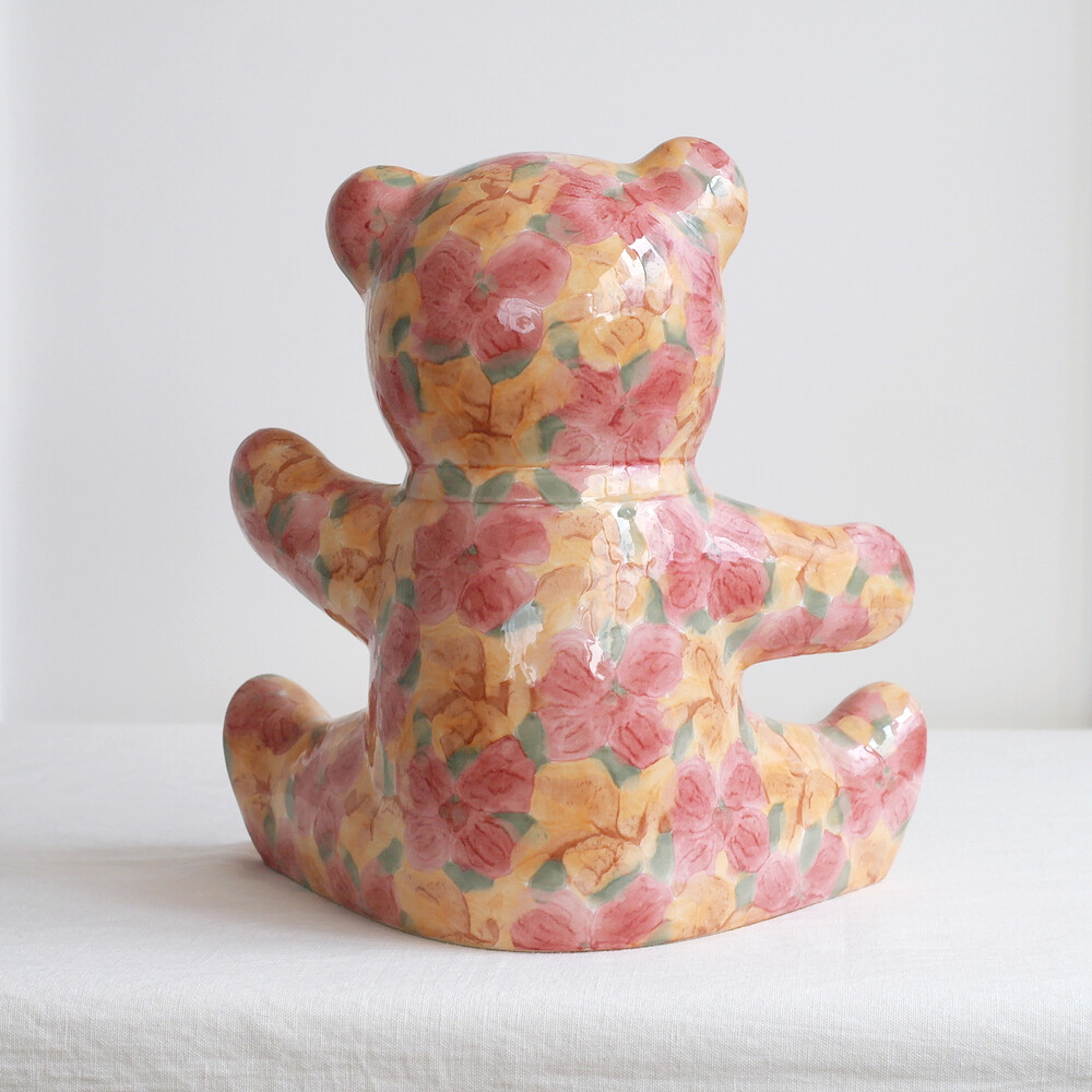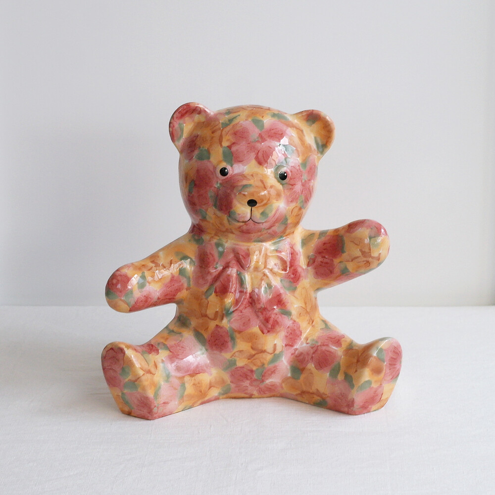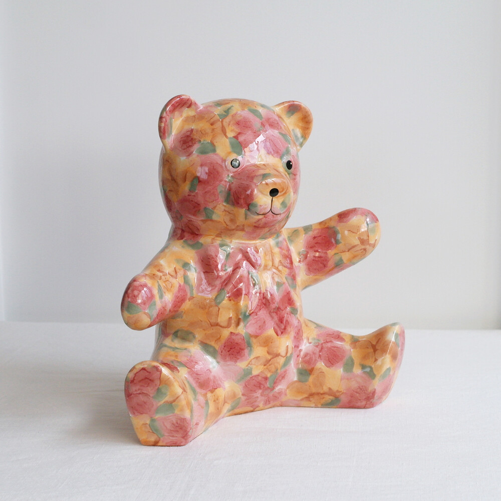 VINTAGE CERAMIC - YELLOW & CORAL PARK FLORAL TEDDY - PAPA SIZE