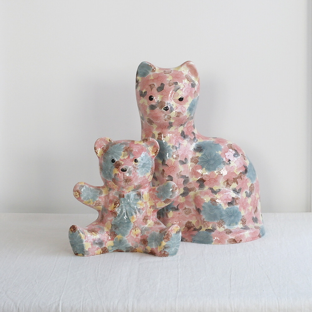 VINTAGE CERAMIC - PINK PARK FLORAL KITTY - PAPA SIZE