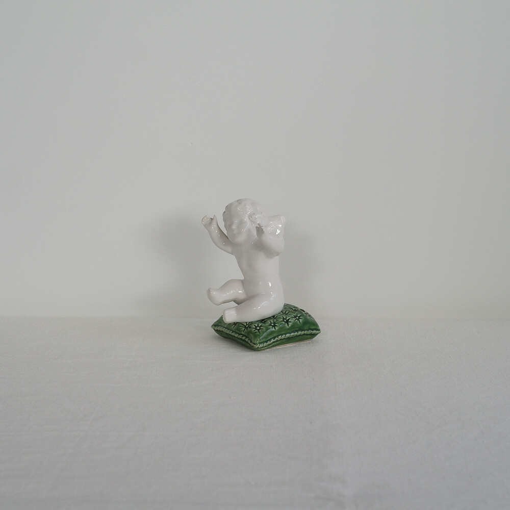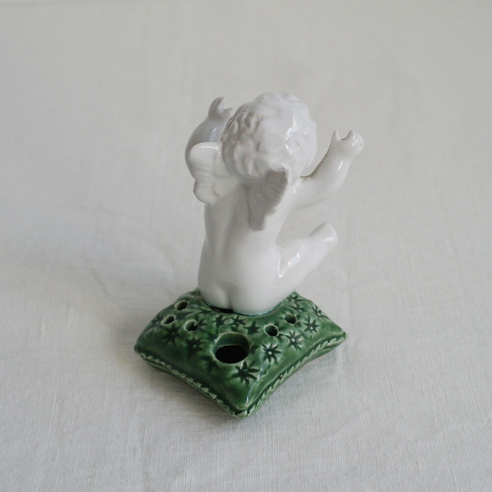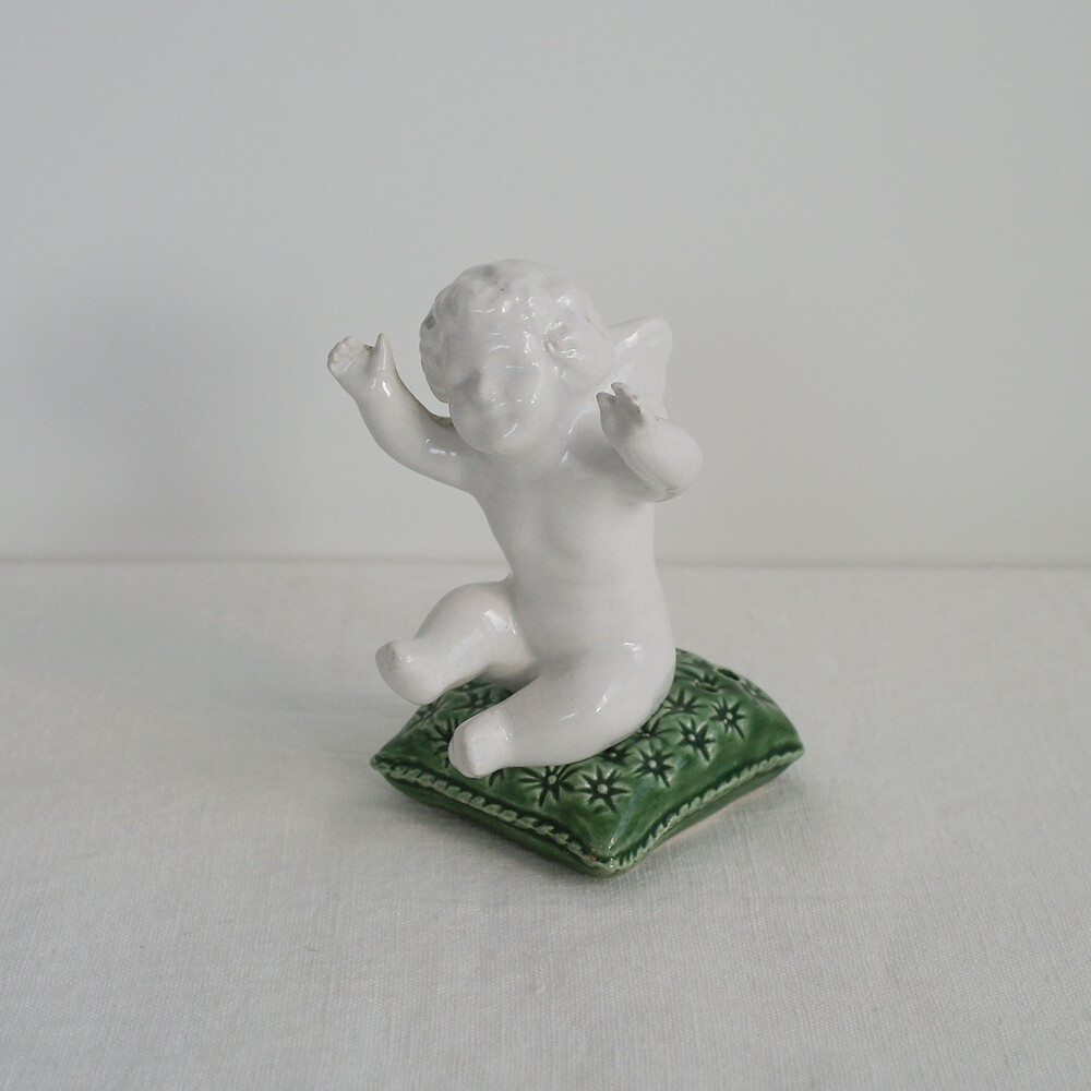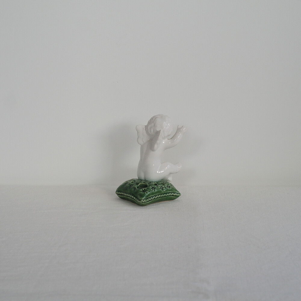 뽀얀 아기천사가 그린컬러 방석에 앉아있는 모양의 포세린 인센스 홀더 입니다.