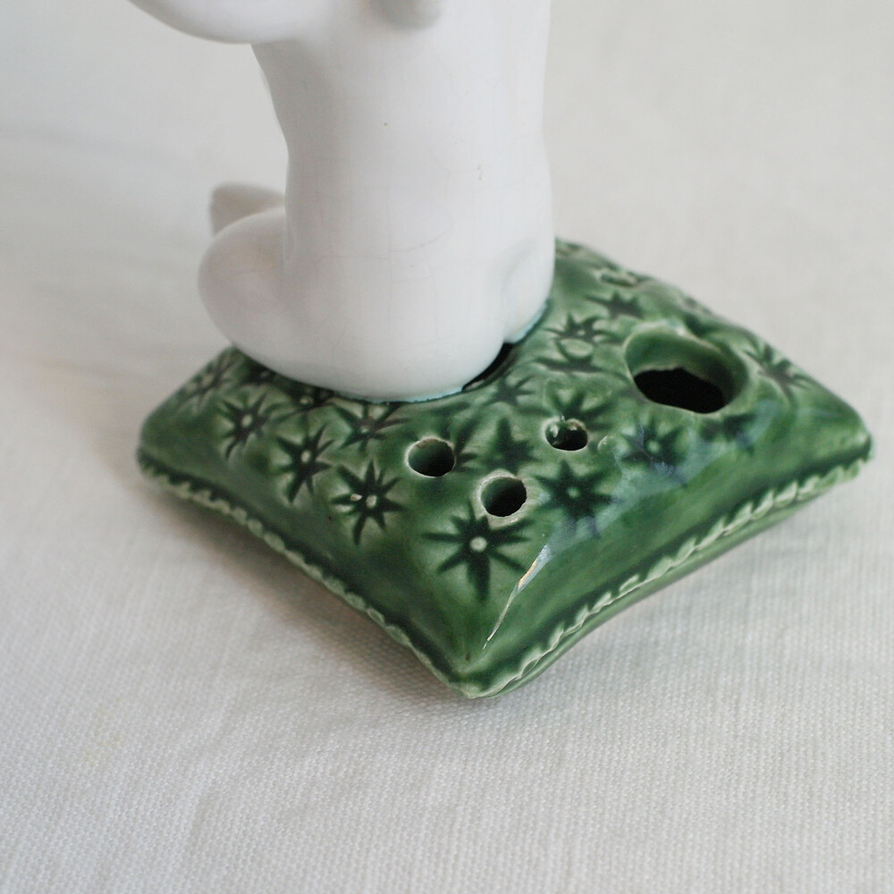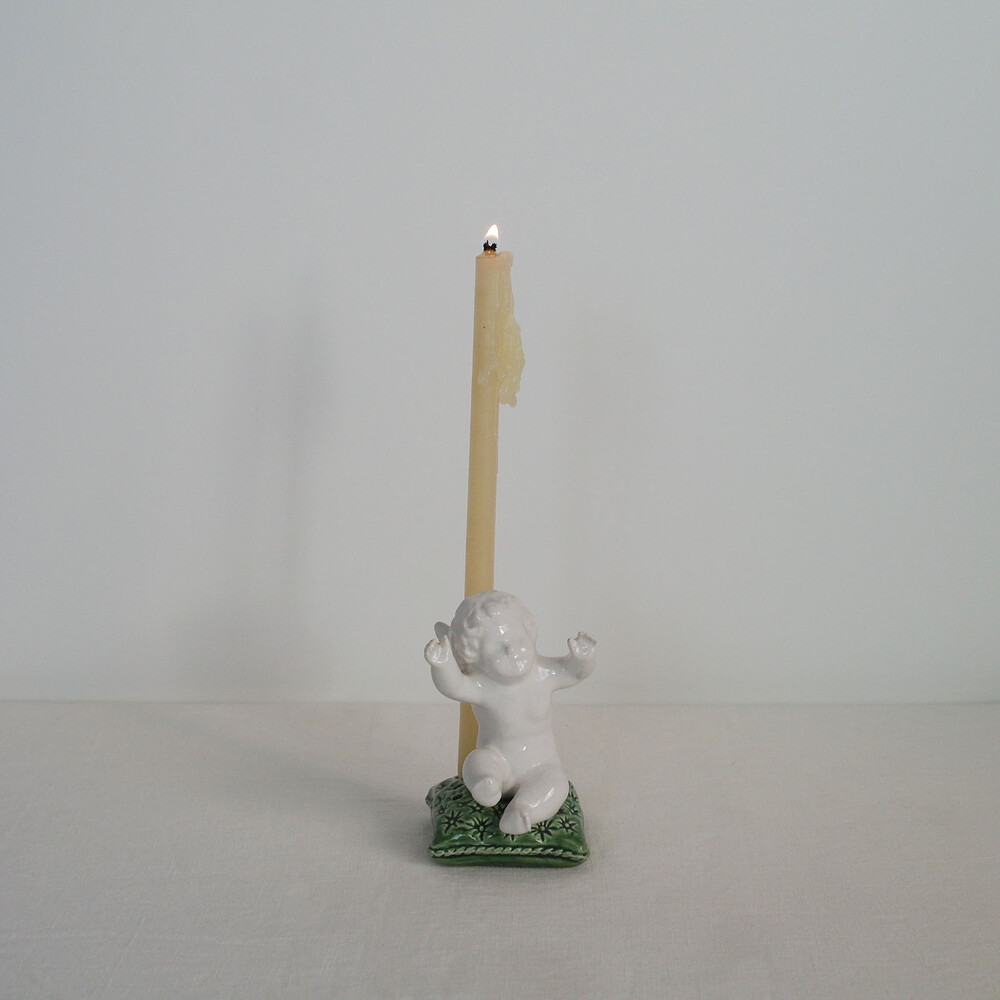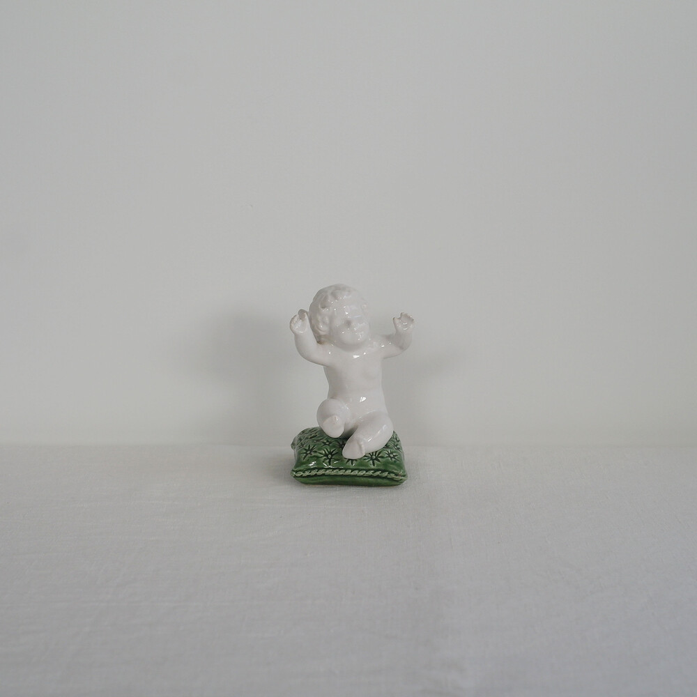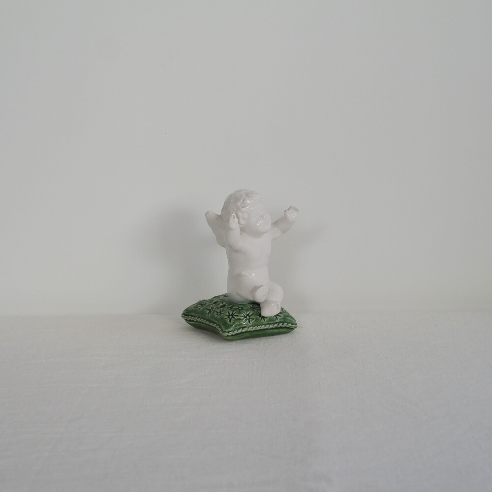 뽀얀 아기천사가 그린컬러 방석에 앉아있는 모양의 포세린 인센스 홀더 입니다.