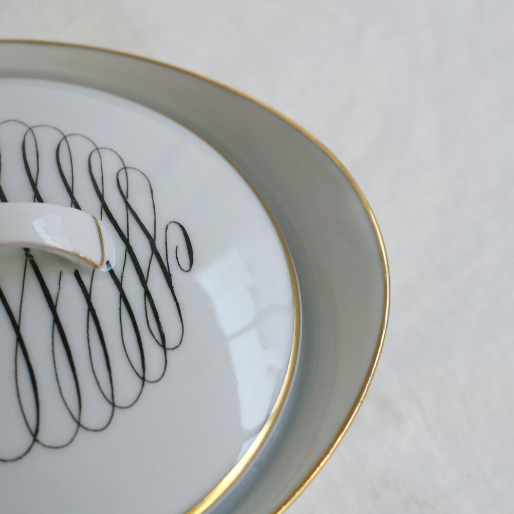 청빛이 도는 밝은 포세린 화이트 색상을 바탕으로 엣지 부분들에 금박으로 테두리가 둘러져 있습니다.