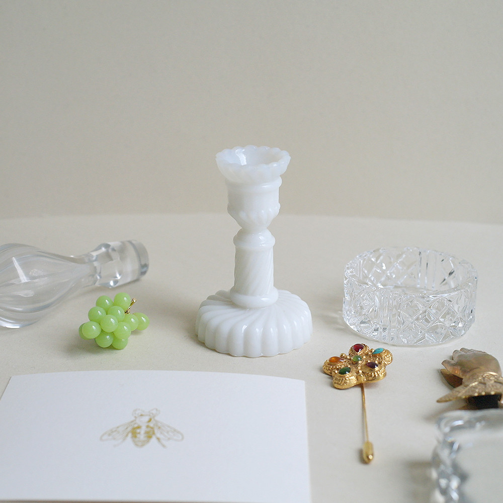 하얀색 오팔린으로 만들어진 작은 촛대입니다.
