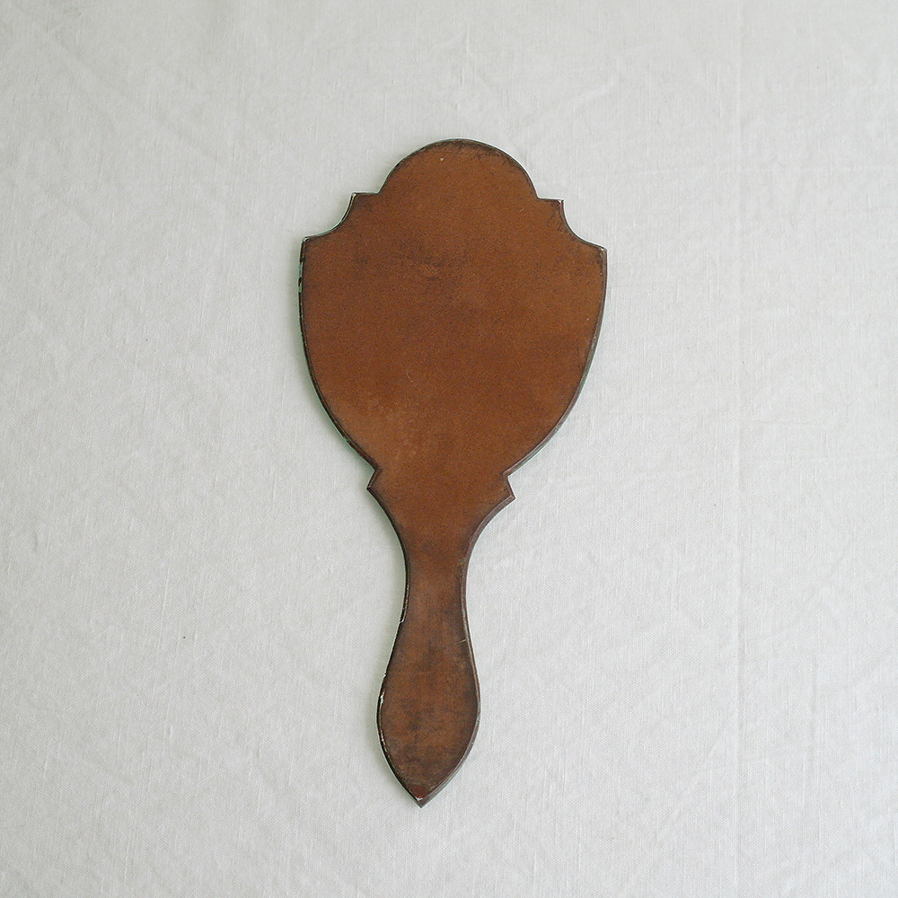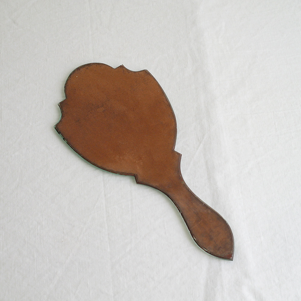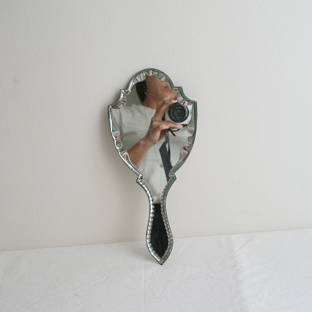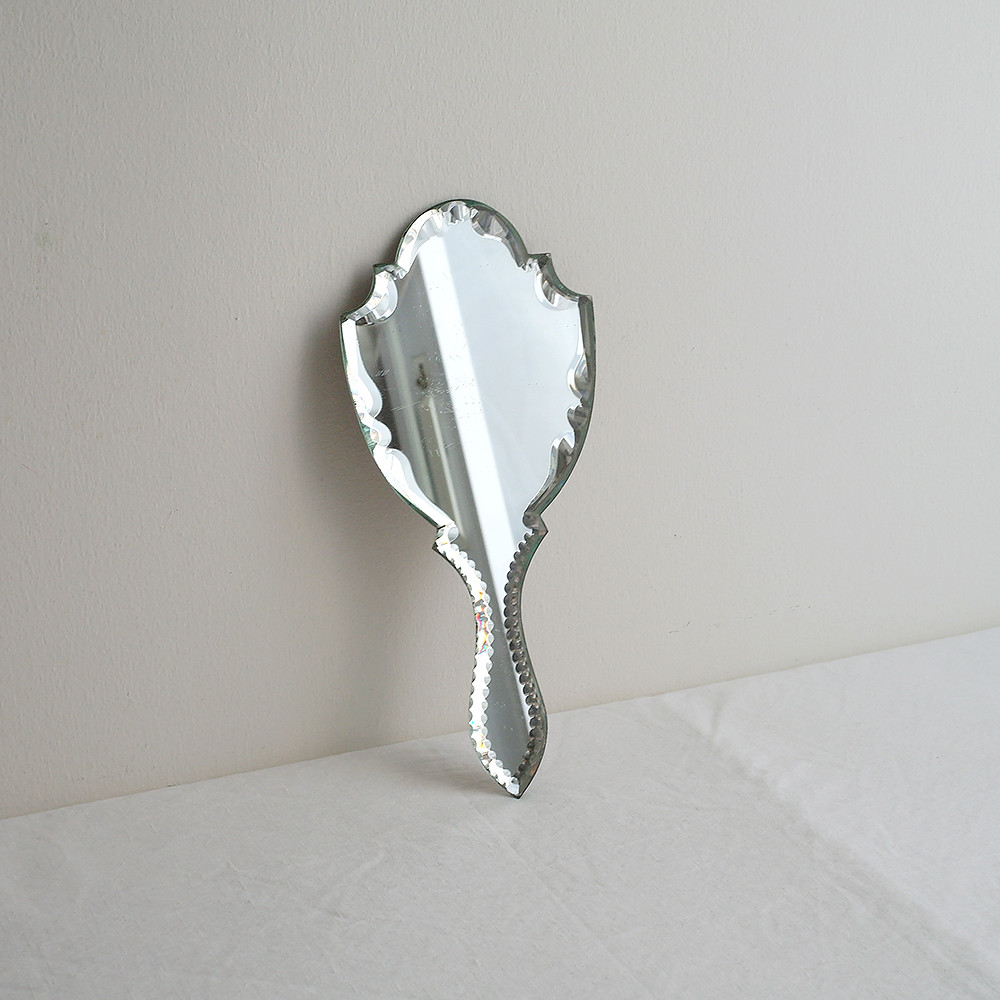 단단하고 투명한 고품질의 유리를 조각하여 만든 제법 큰 사이즈의 손거울입니다.