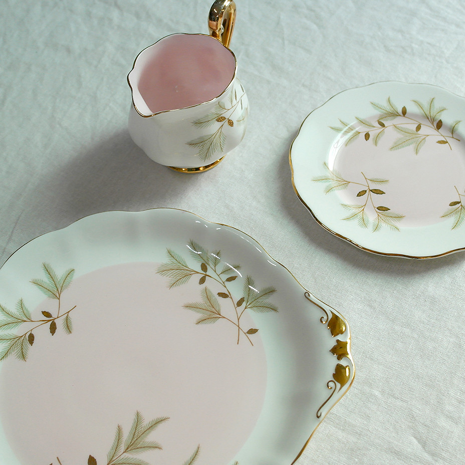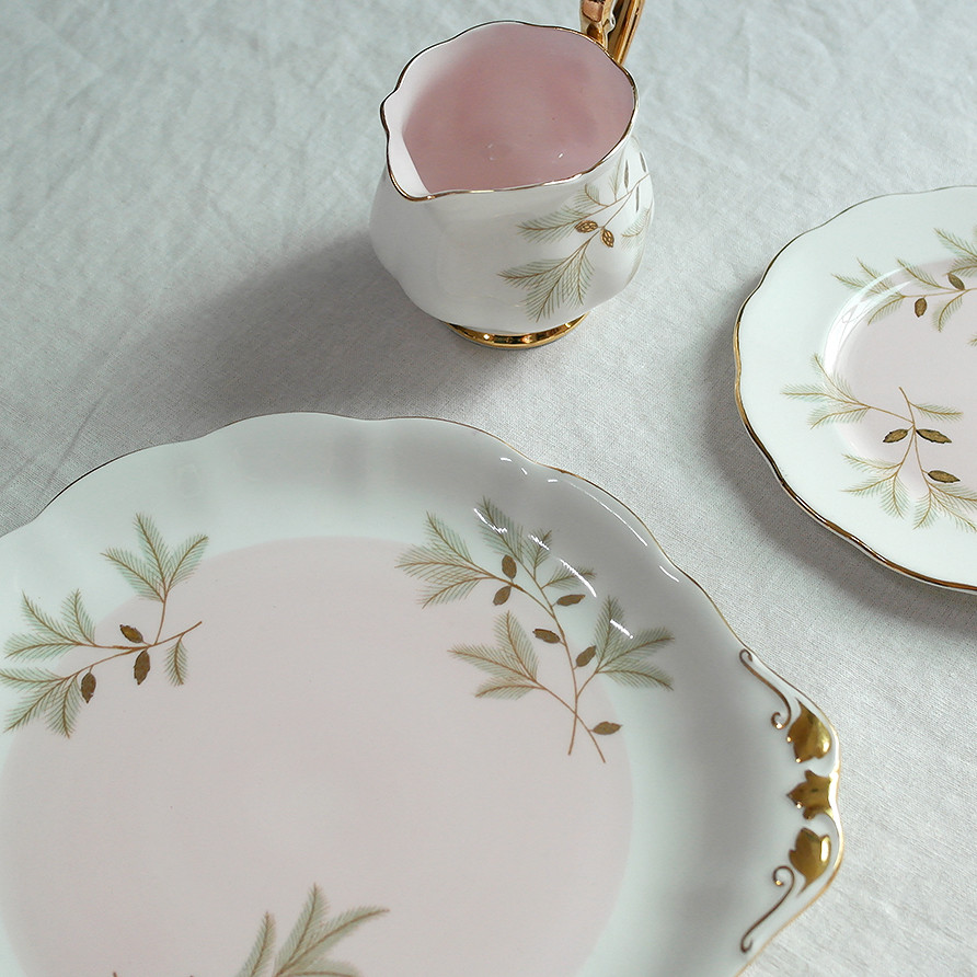 꽃잎 모양의 금색 테두리와, 화이트 본차이나
