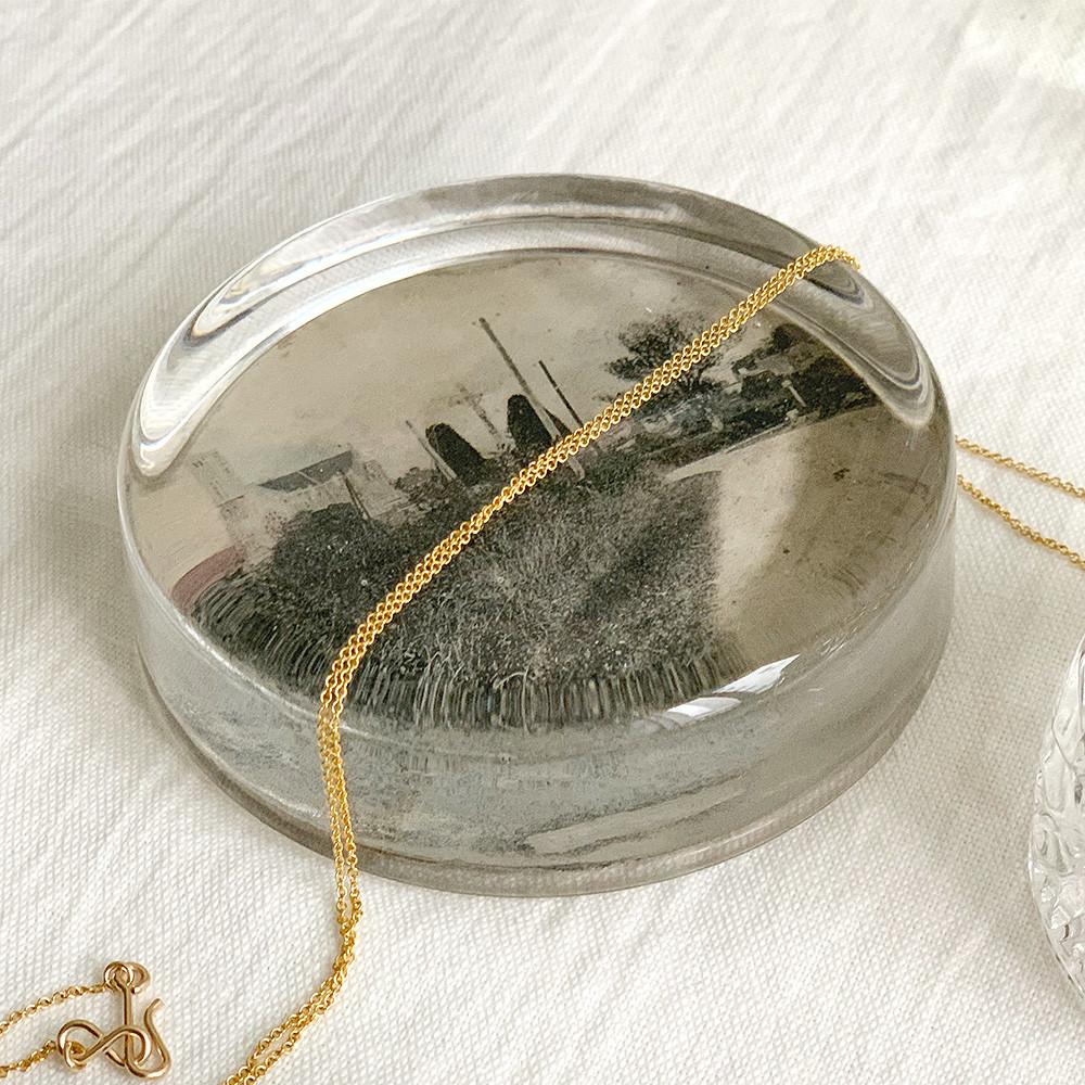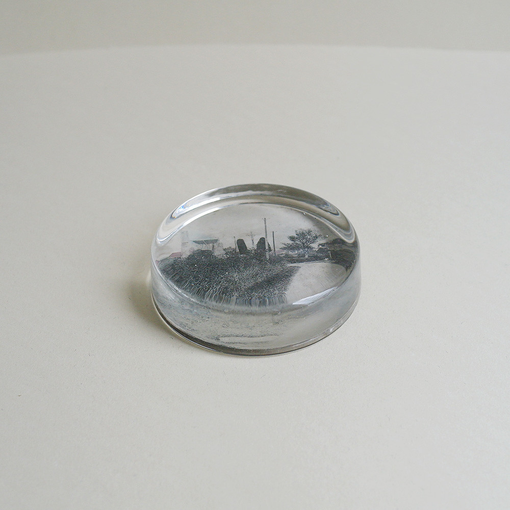 소개시켜드리는 문진처럼 흑백사진을 붙여 종이로 마무리 되는 납작한 모양의 유리 문진도 있습니다.