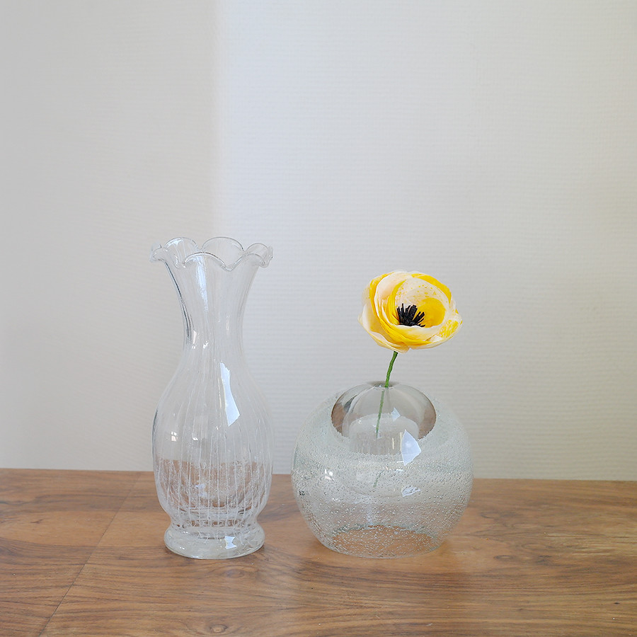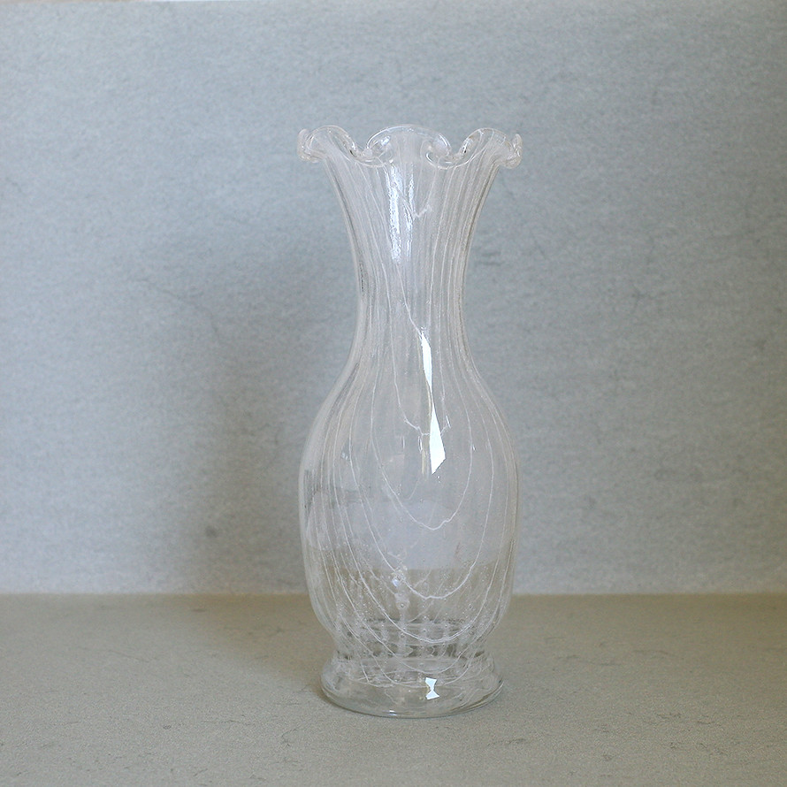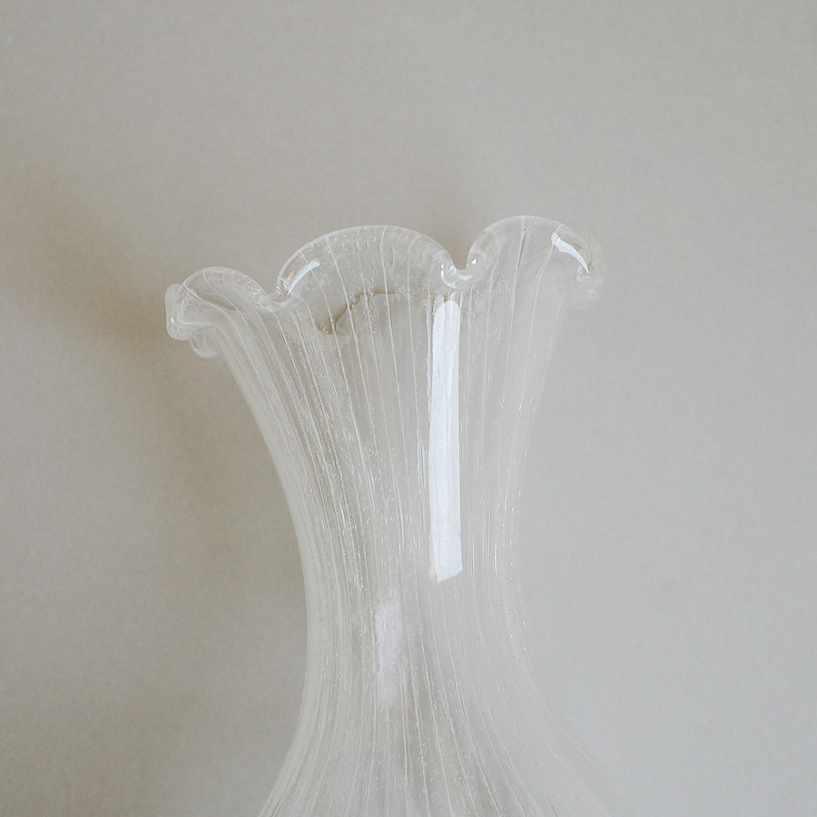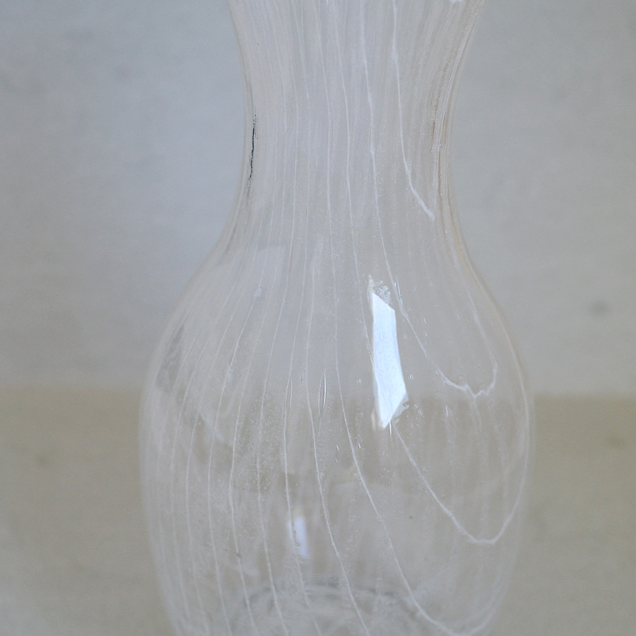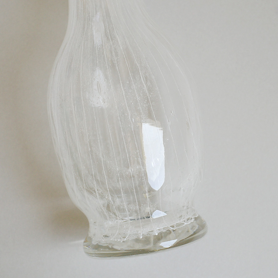 유리의 기포와 함께 무늬가 어우려저 독특한 느낌이 나는 화병이에요.