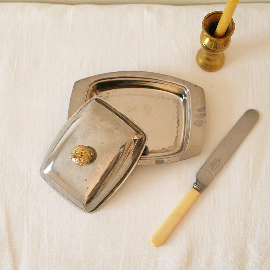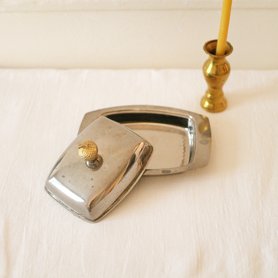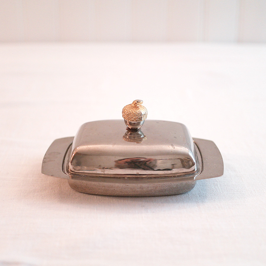 스테인레스 소재의 손잡이가 넓은 버터통으로