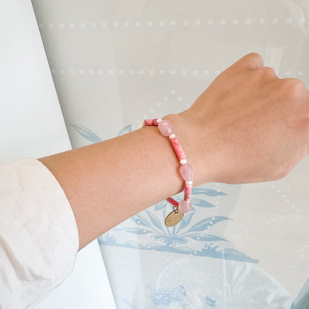 Bracelet Pink & pearl & jade