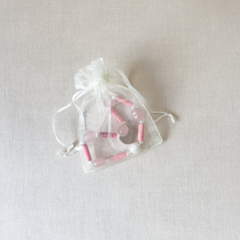 투명하고 밝은 핑크색과, 마블 텍스쳐, 진주가 주는 조화와 작은 기분 좋음을 팔에 가볍게 둘러보세요.
