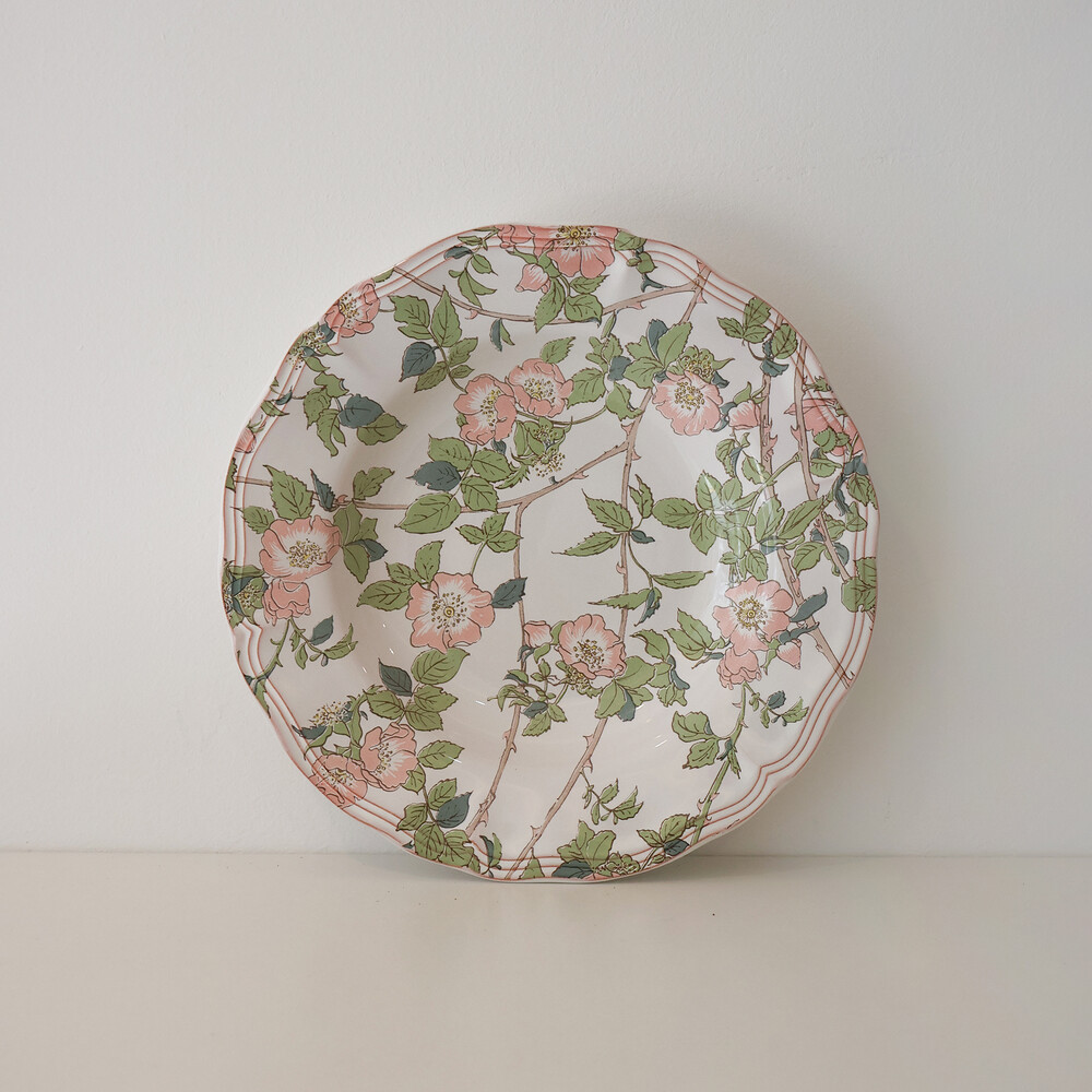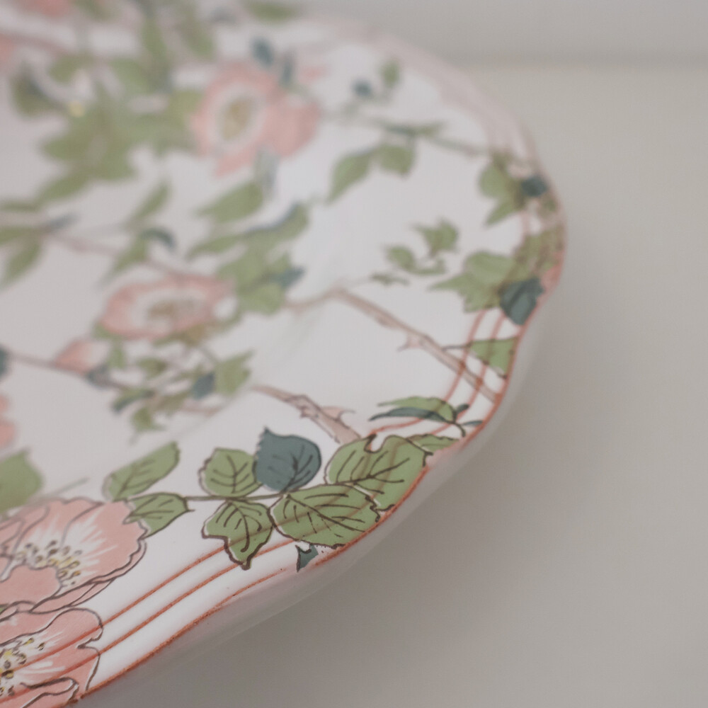지역의 특징인 우아한 꽃모양을 모티브로 한 접시위에 전면으로 꽃무늬가 전사되어있습니다.