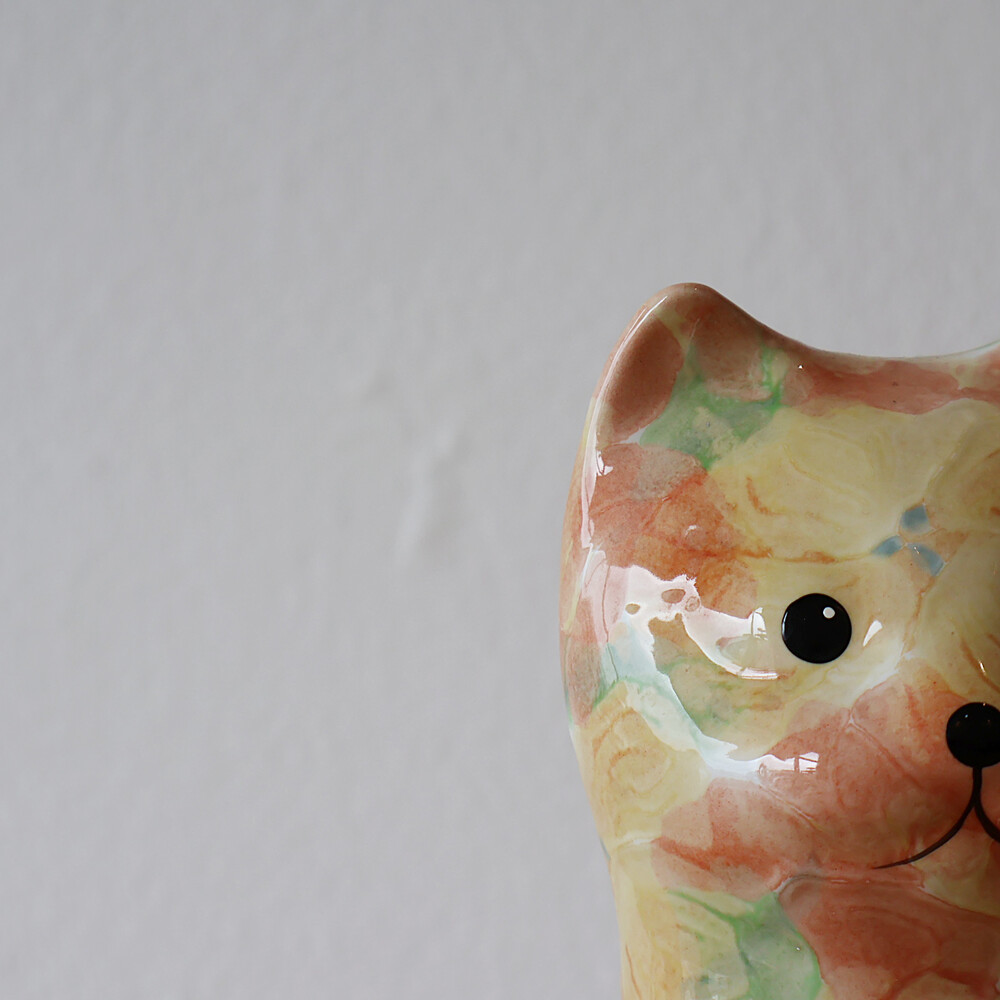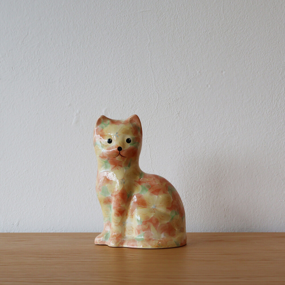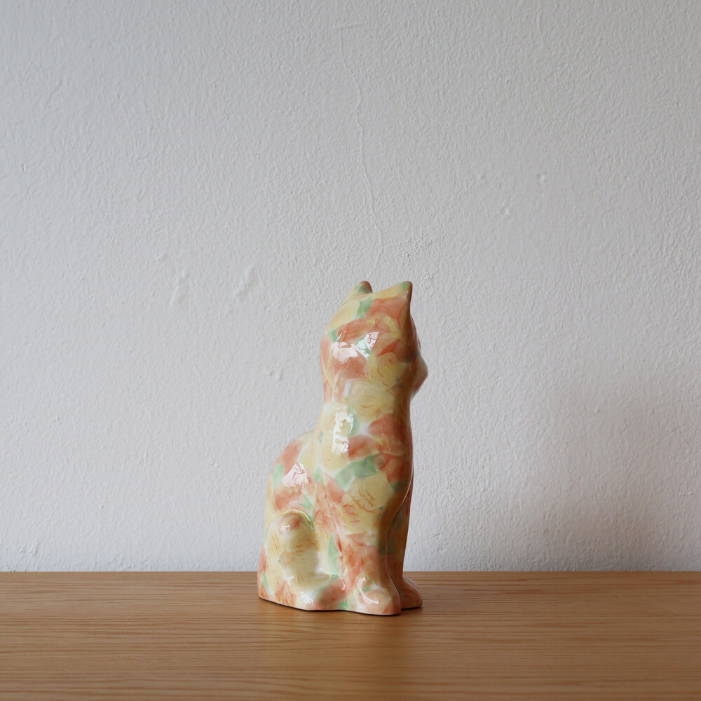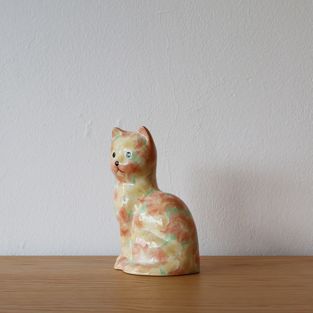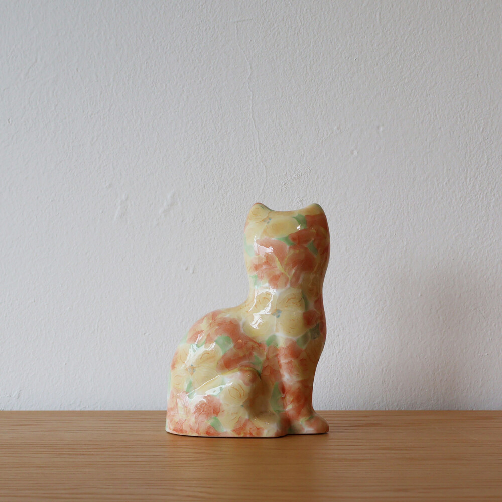 VINTAGE CERAMIC - PINK & YELLOW FLORAL KITTY - PAPA SIZE