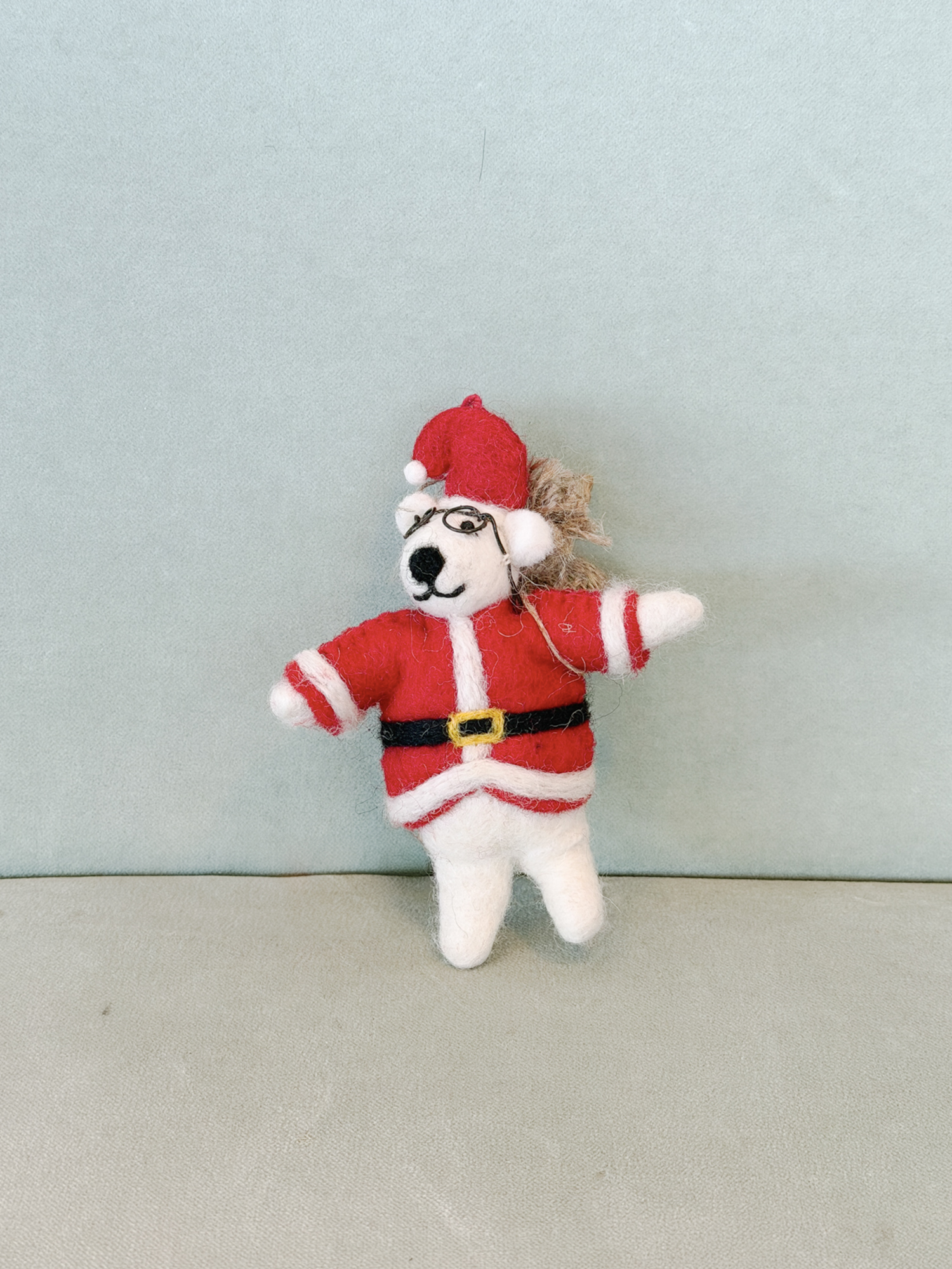 이 유쾌한 북극곰은 지속 가능한 펠트로 정성스럽게 만든 산타 복장을 입고, 북극만의 매력을 듬뿍 담아 연말을 빛내러 왔어요.