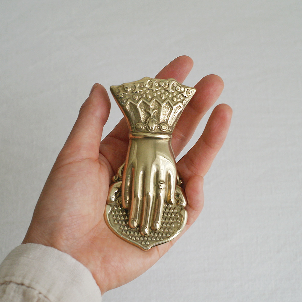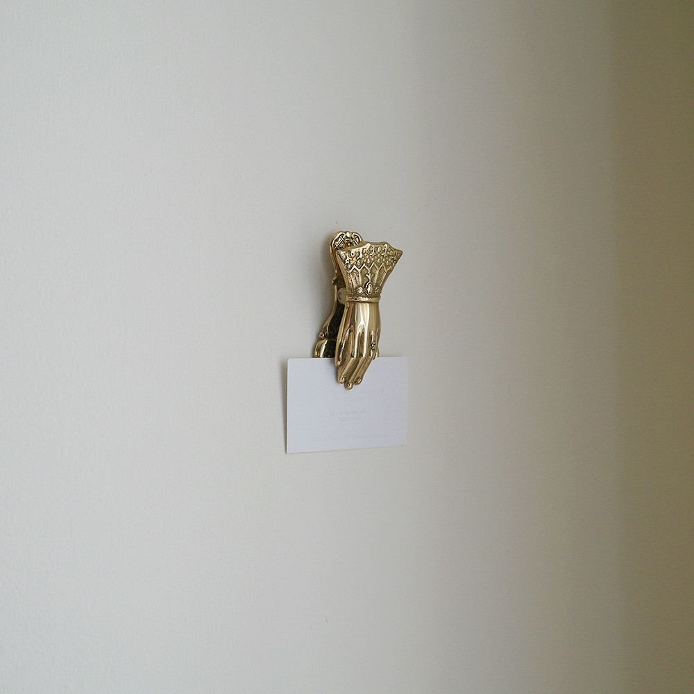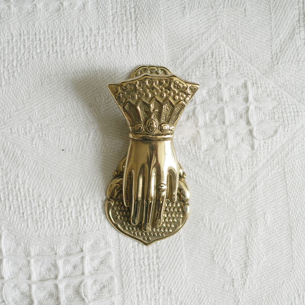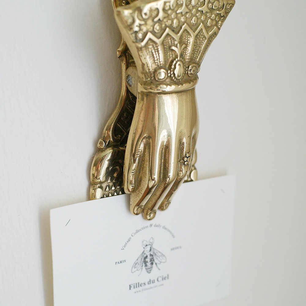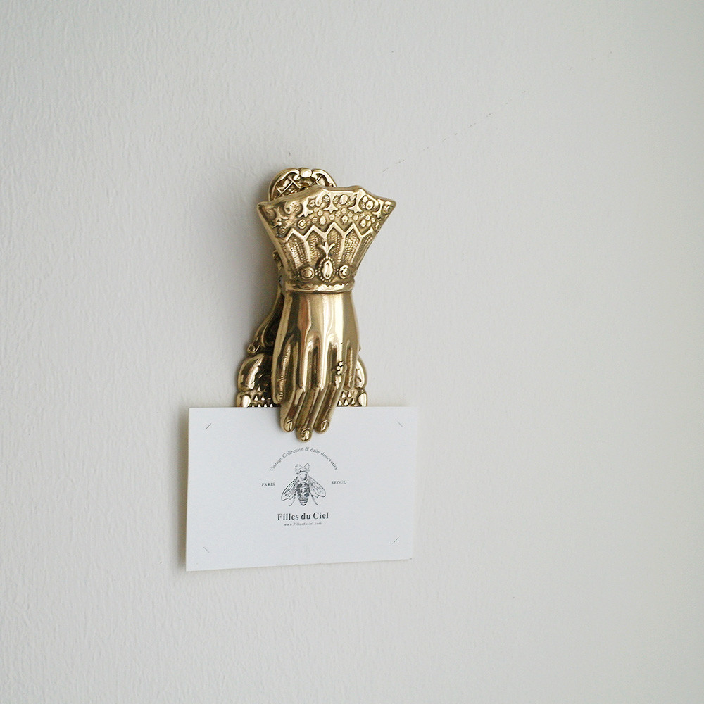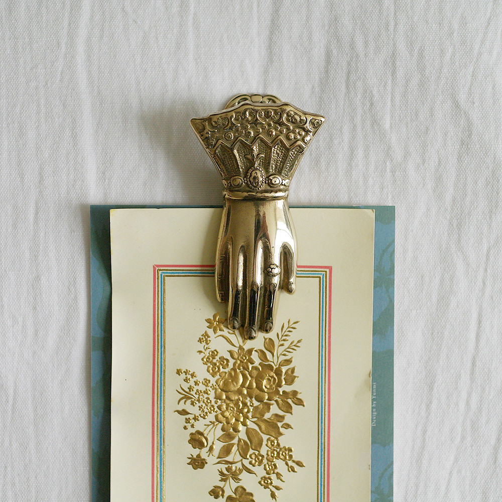 레이스가 달린 옷소매와 고고한 손을 모티브로 한 황동 페이퍼 클립 제품입니다.