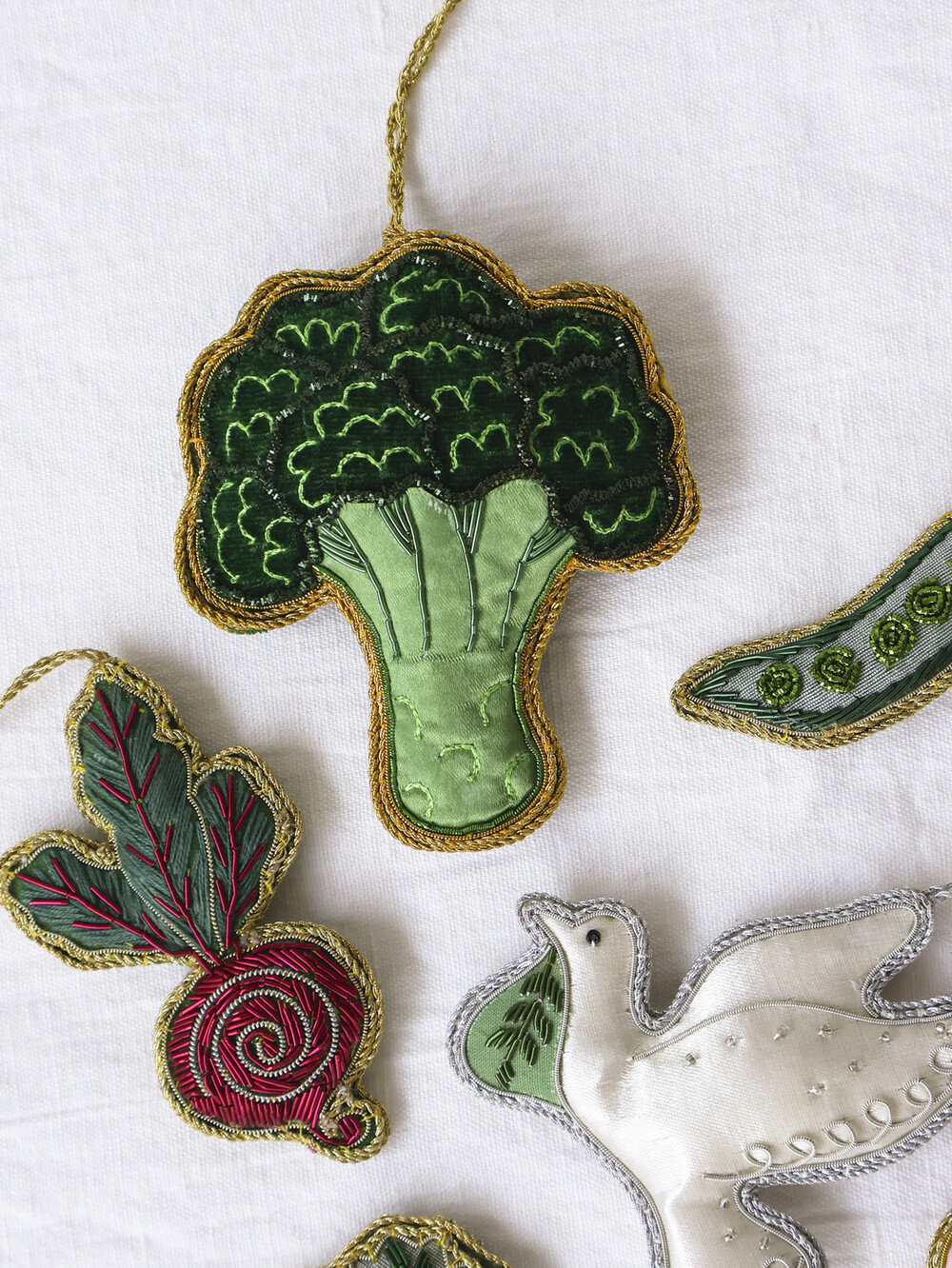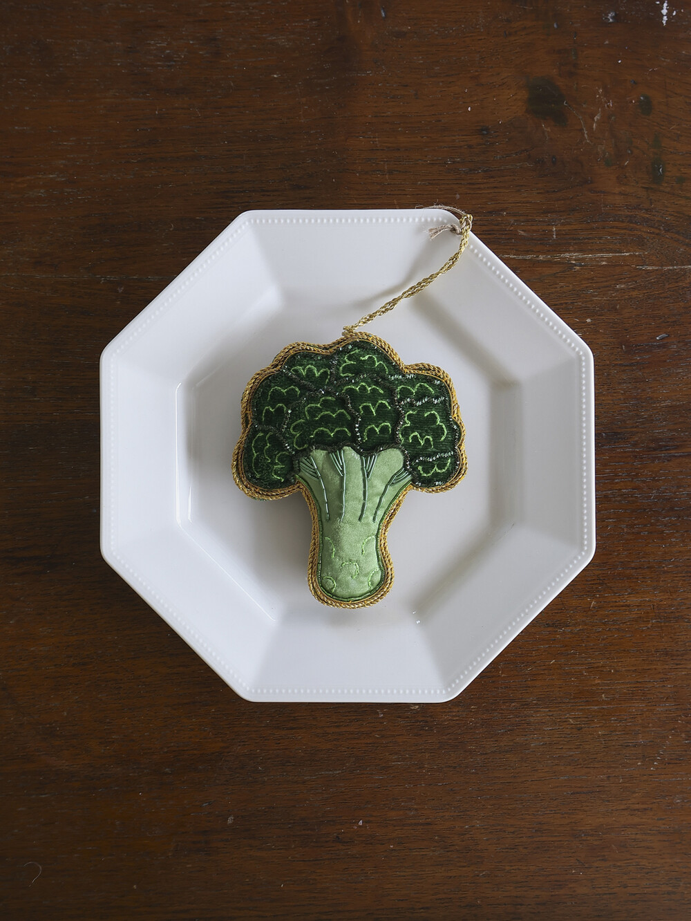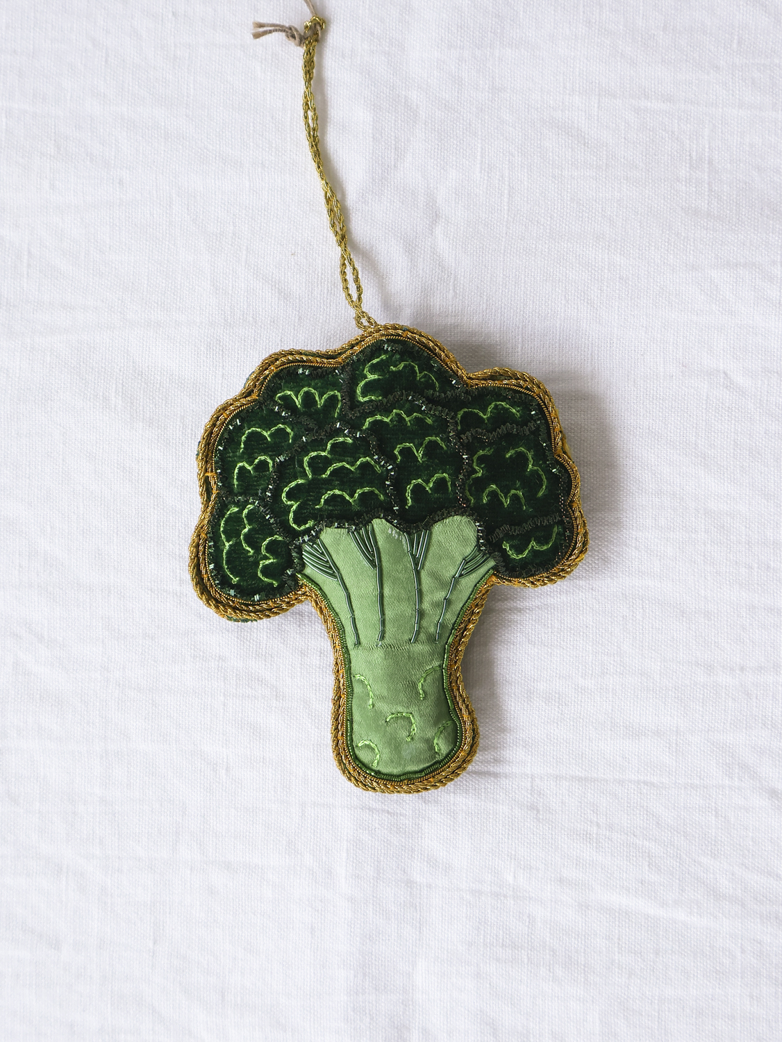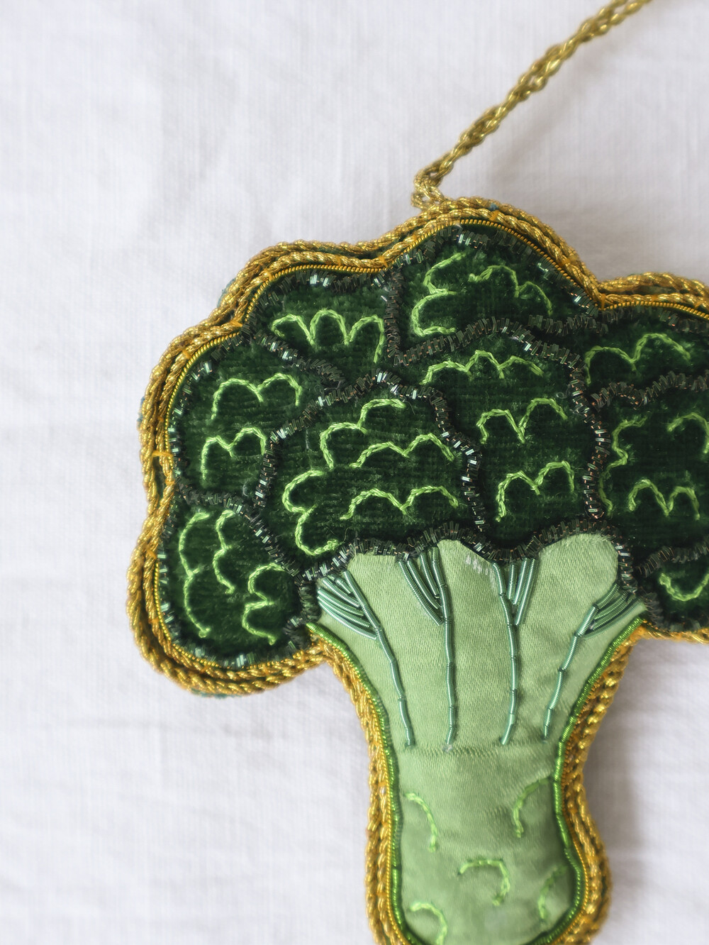 그린 톤의 펠트 위에 더해진 자리(JARI) 자수 디테일이 브로콜리 특유의 질감을 섬세하게 표현합니다.