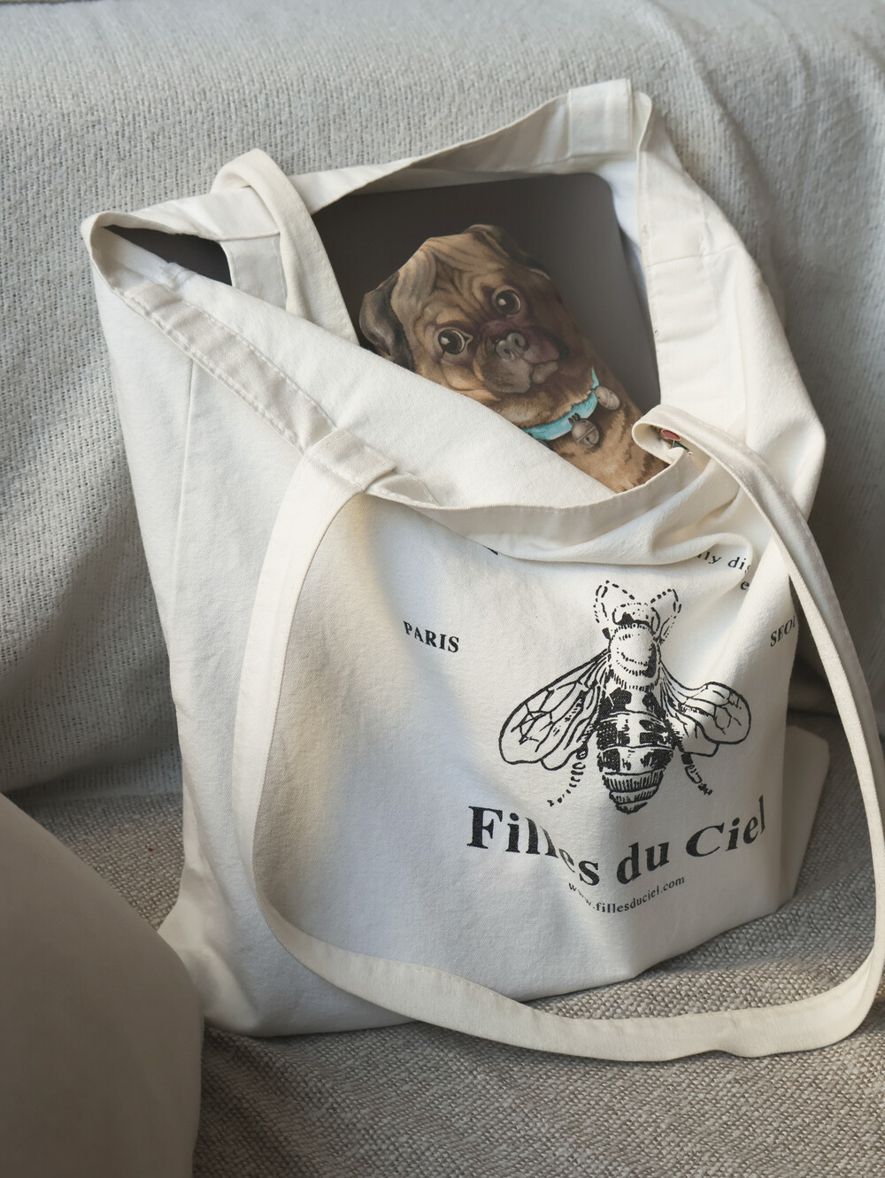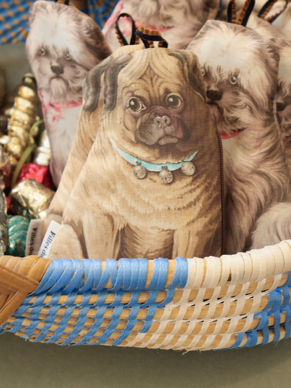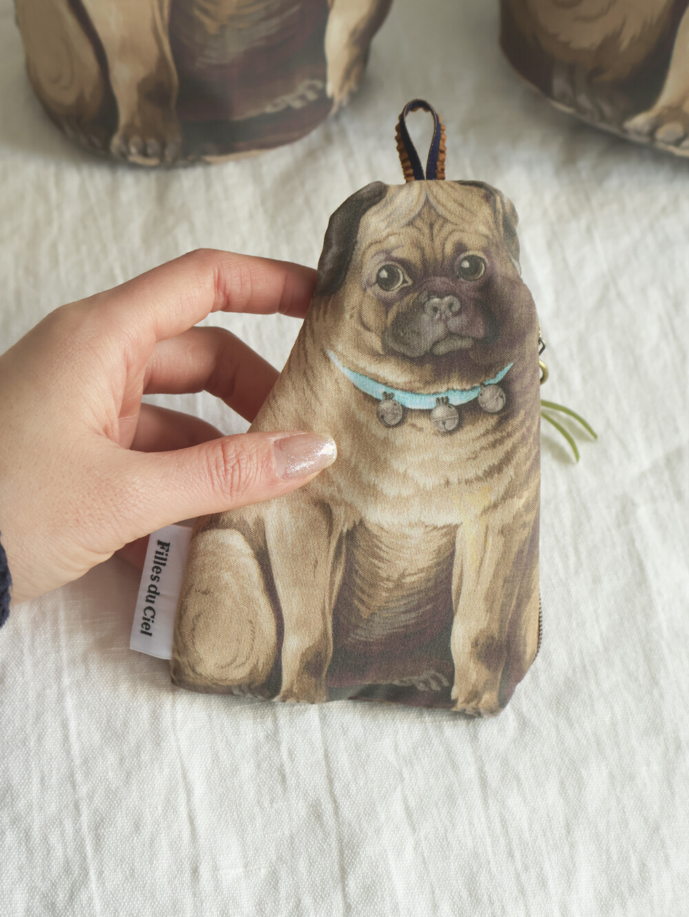 Louis Poufou is a lovable pug with a ribbon and bell collar that jingles softly with every step, making him seem like a little fairy. His kind, warm eyes and cheerful energy light up any room, spreading happiness and joy to everyone he meets. Wherever Louis Poufou goes, he leaves behind smiles and a feeling of comfort, as if he were a small bundle of magic.
