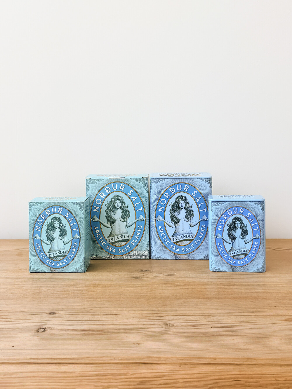 노르뒤 씨 솔트의 특별한 패키지는 레이캬비크 Jónsson & Le'mack의 디자인 팀과 협력하여 제작되었으며 ‘Red Dot Design Award 2014’의 패키징 부문과 다양한 아이슬란드 어워드를 수상했으며 Cannes Lions 및 Epica의 파이널리스트로 진출하기도 했습니다. 종이 패키지 제품의 박스는 재질 또한 재활용 종이로 생산하여 ‘지속가능성'이라는 노르뒤 사의 원칙을 담았습니다. 블루와 오렌지 컬러의 조합은 화산과 빙하가 공존하는 불과 얼음의 땅 아이슬란드를 표현하며, 노르뒤 사 고유의 일러스트 속 인어 ‘Alda 앨다'는 ’브레이다 피오르’로 흘러드는 북극해의 순수함을, 양 손에 들고 있는 소금 더미는 지속가능성에 대한 노르뒤 사의 균형 잡힌 시각을 상징합니다.