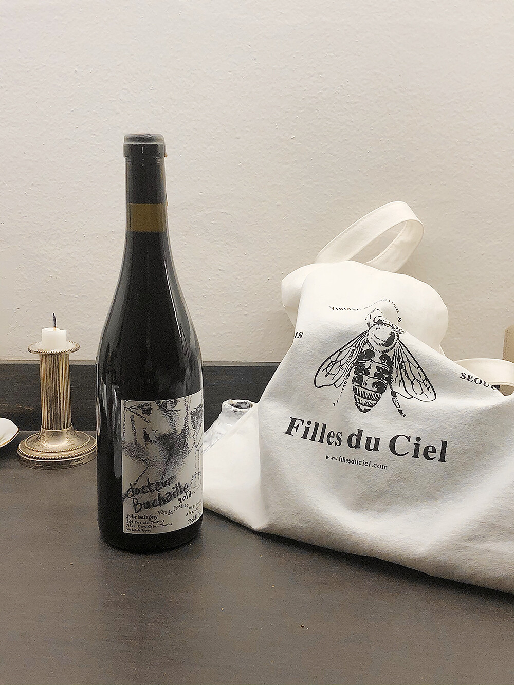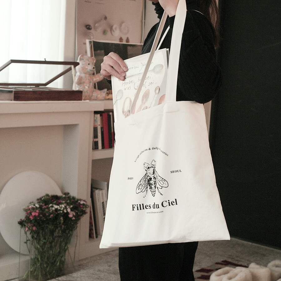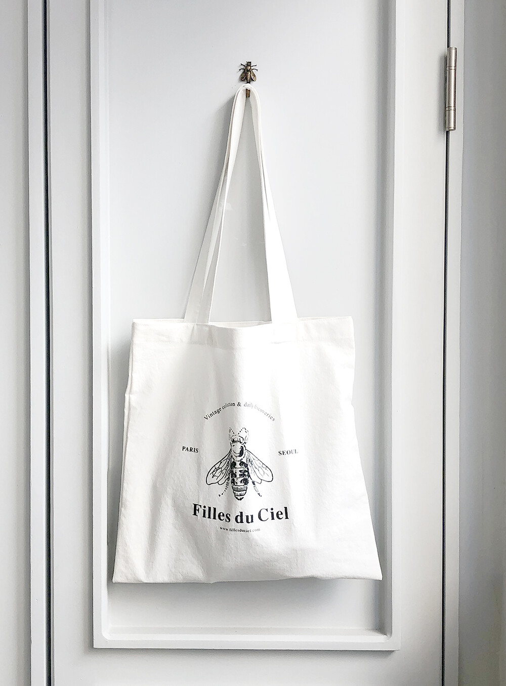 아이보리 빛의 도톰한 하얀 면에, 피이뒤시엘의 벌 심볼과 로고가 새겨져 있으며,