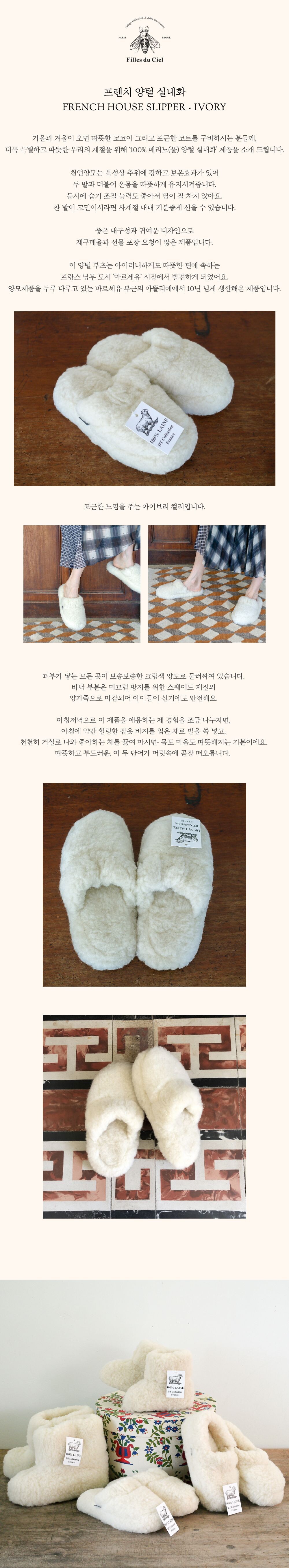 * 실내화 양털 원단은 자연에서 온 제품으로, 생산 계절에 따라 미묘한 컬러 차이가 있습니다.
