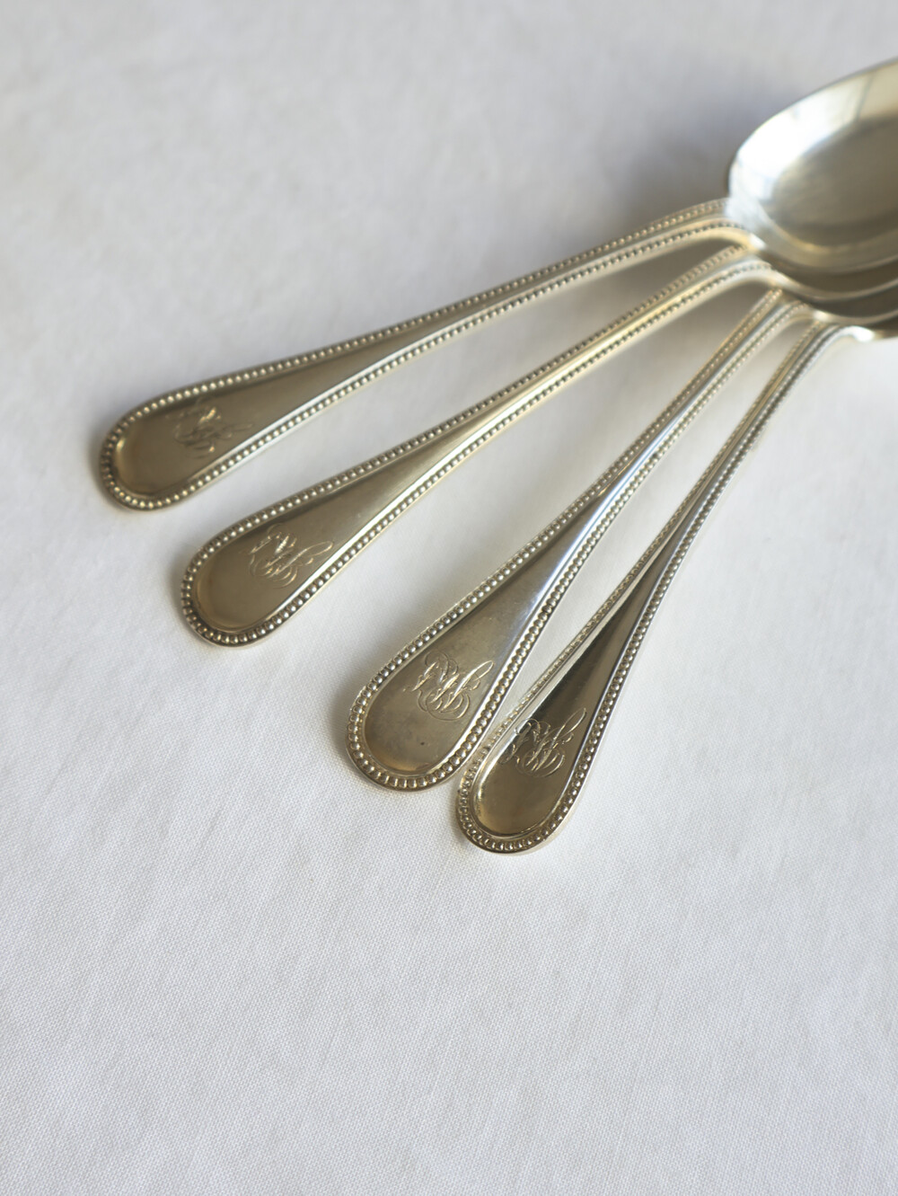깊고 안정적인 형태의 클래식한 테두리 장식이 있는 스푼입니다.