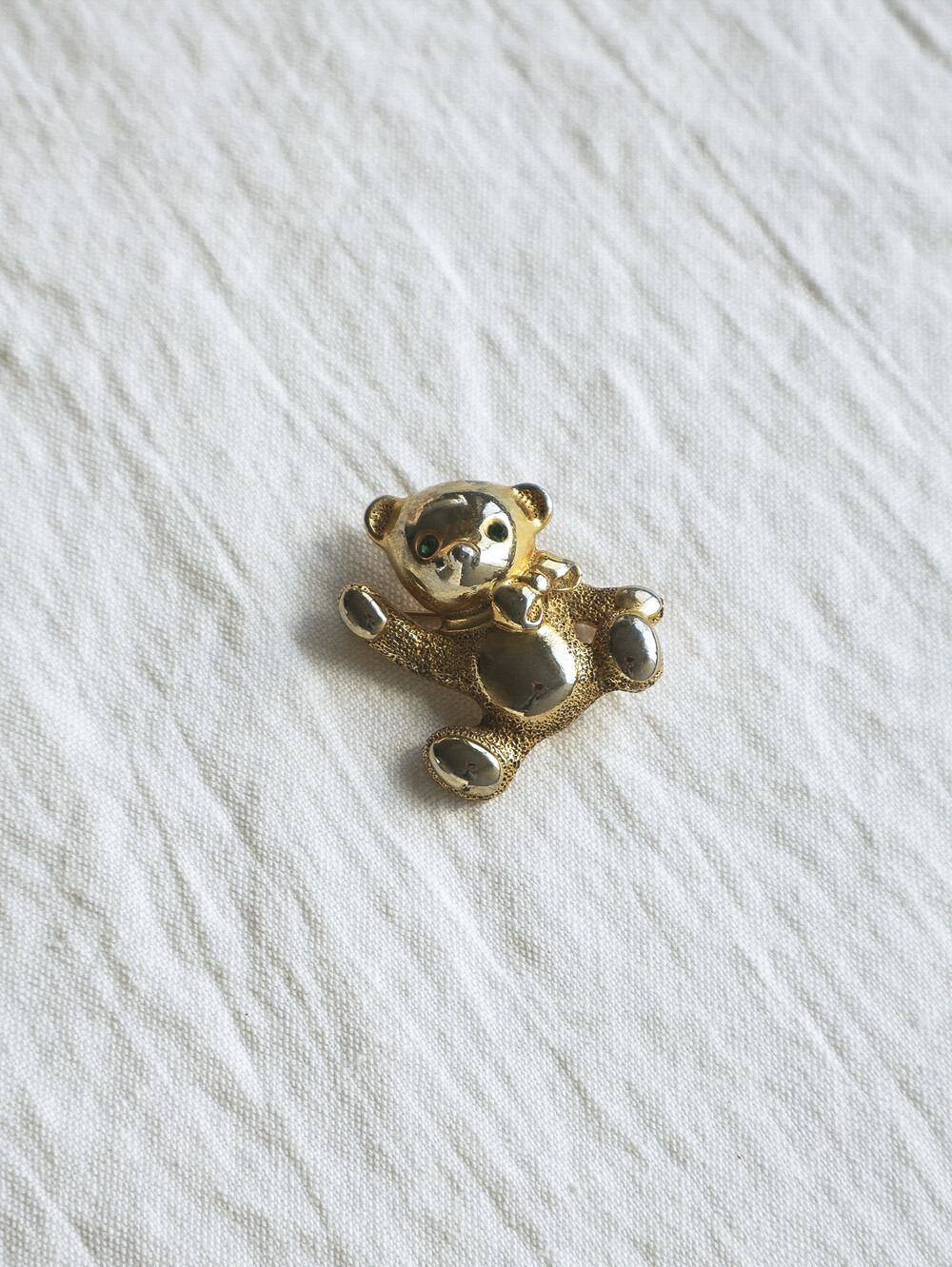 1980년대 녹색 라인스톤이 장식된 귀여운 테디베어 브로치 입니다.