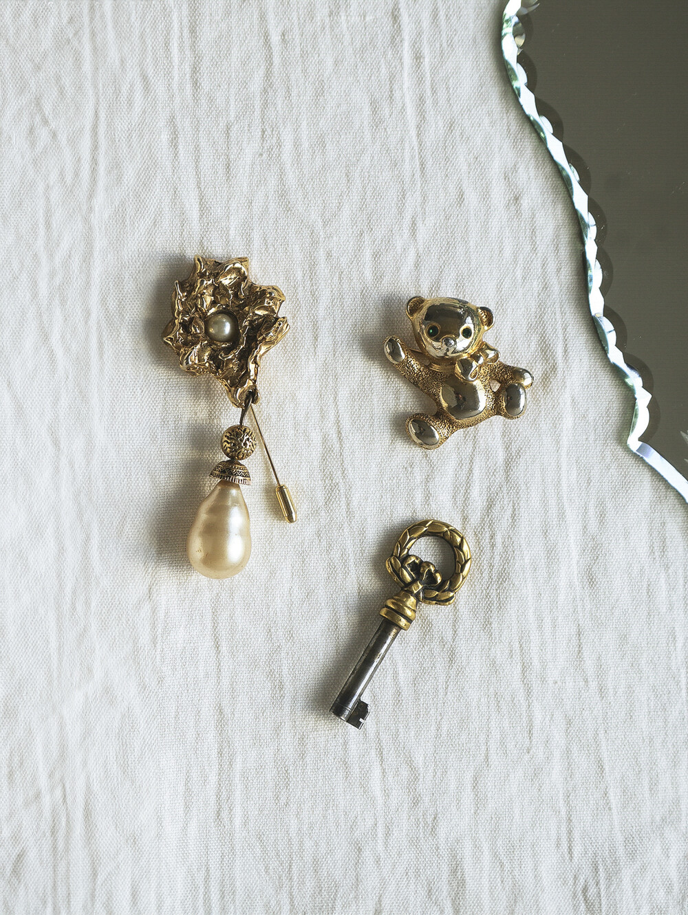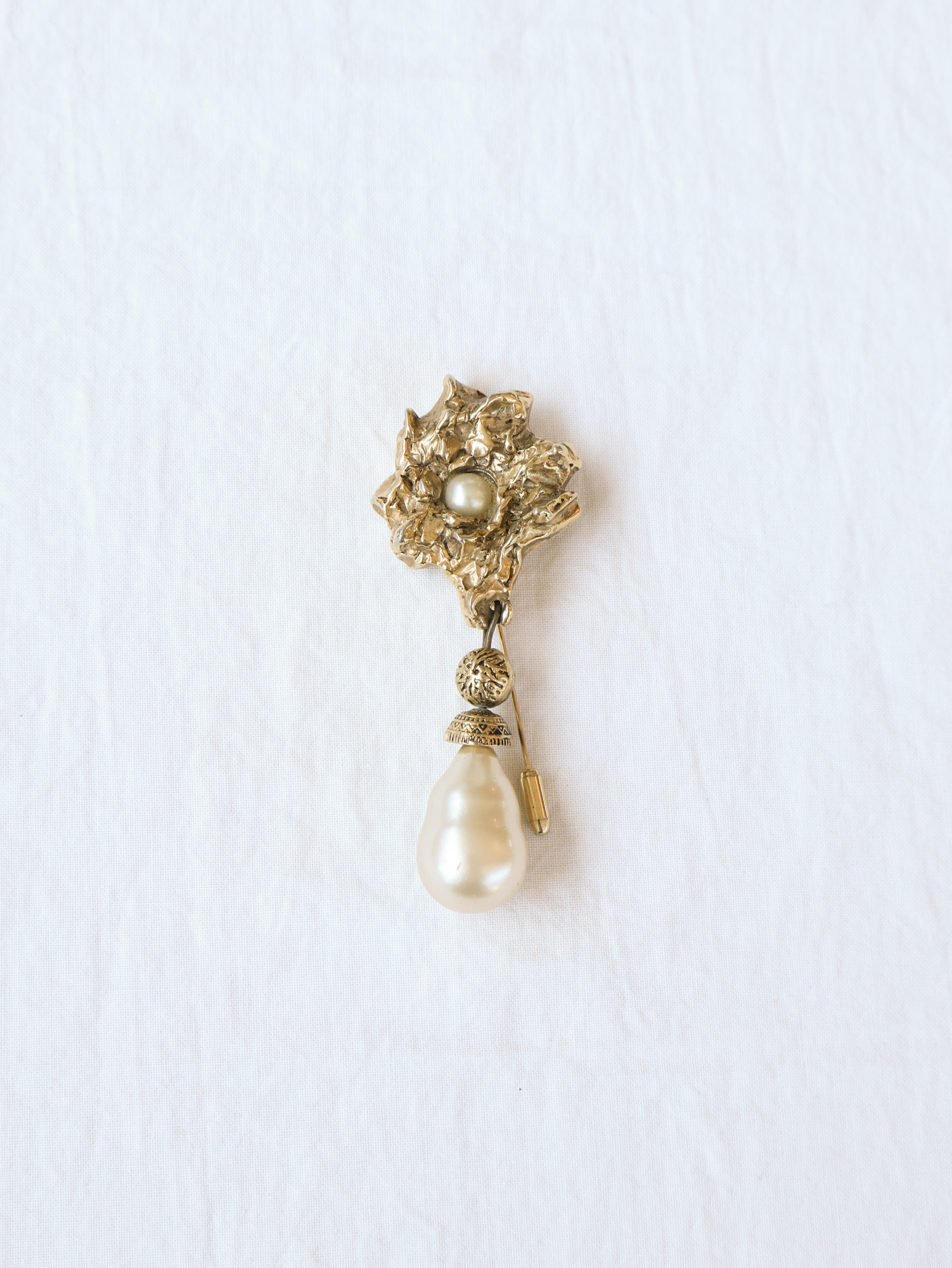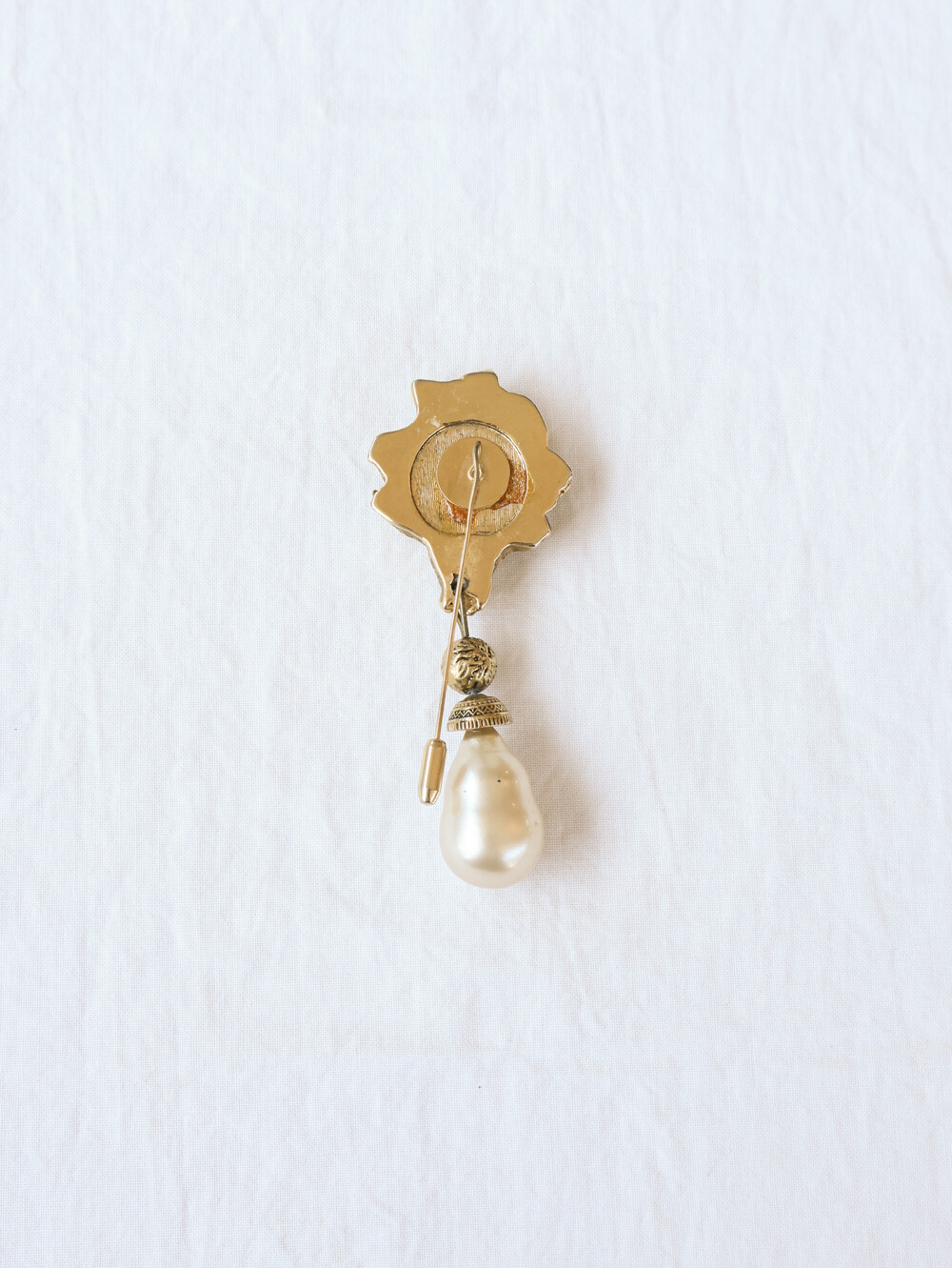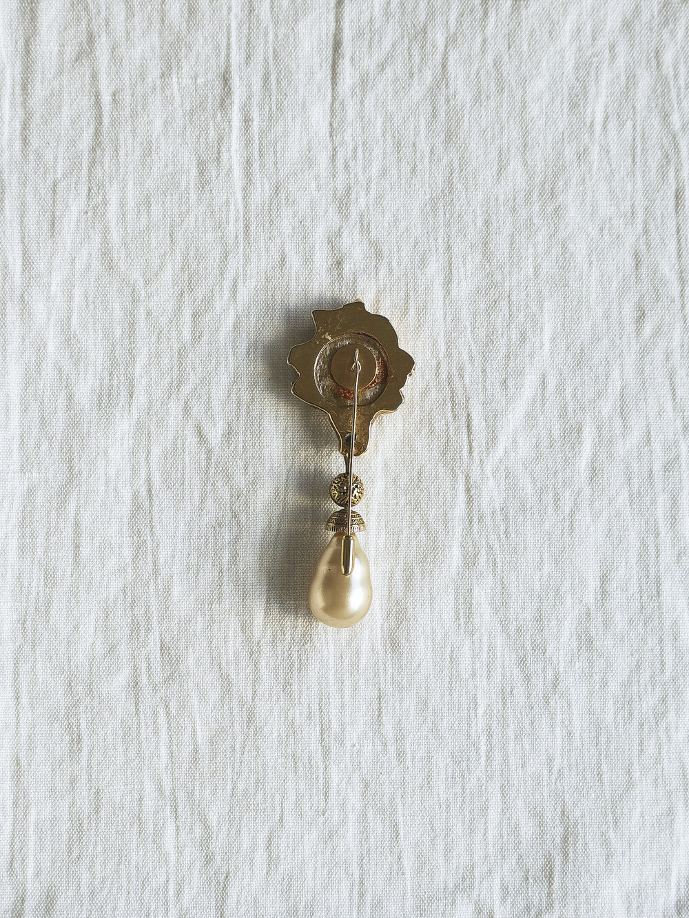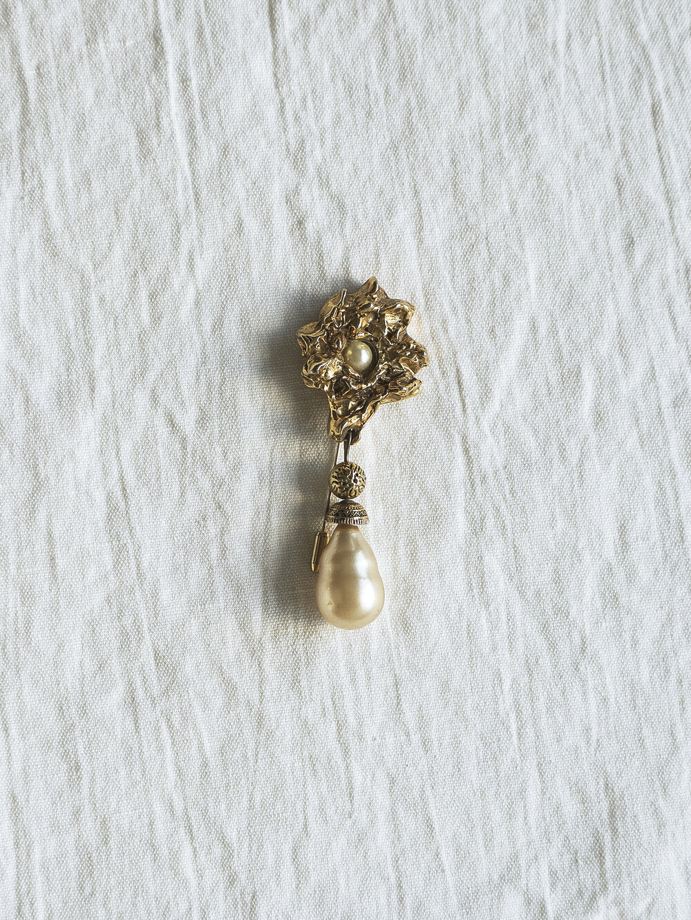 커다란 진주와 금장식의 조화가 멋있는 브로치 입니다.