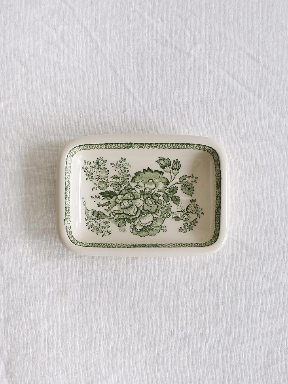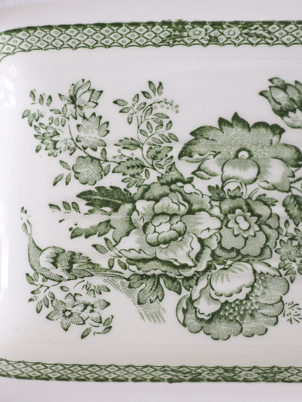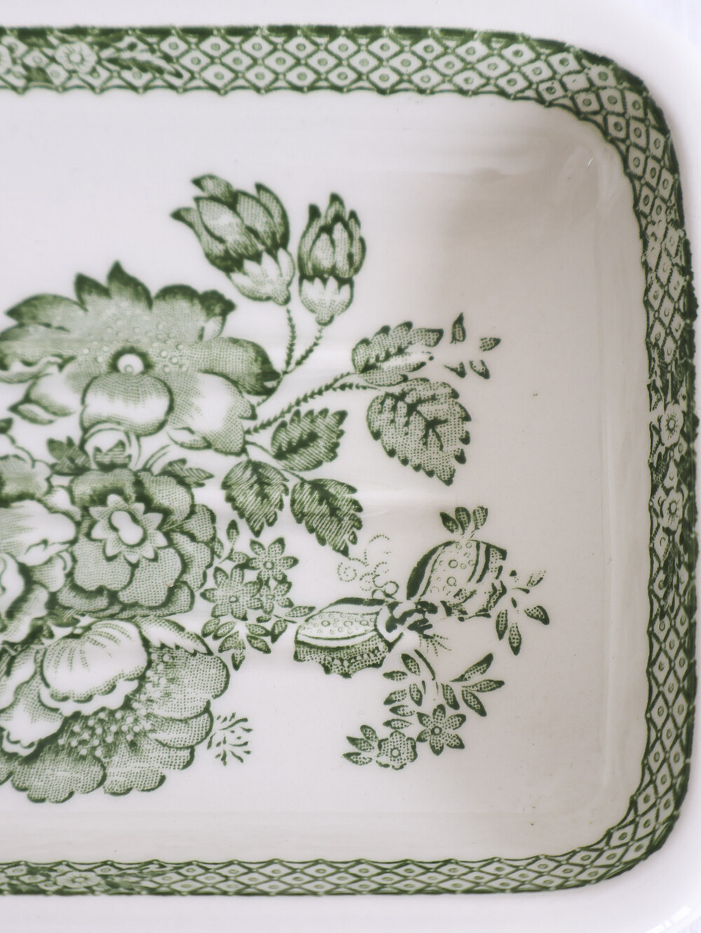 아이언스톤이라는 견고한 세라믹 소재로 만들으며, 중앙에는 고전적인 풍의 녹색 플로럴 패턴이 정교하게 프린팅되어 있고,