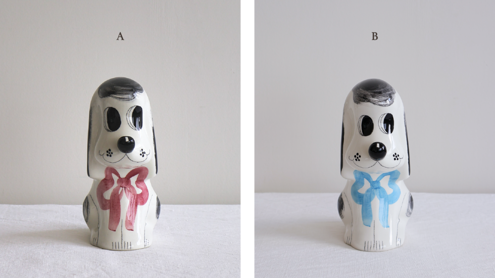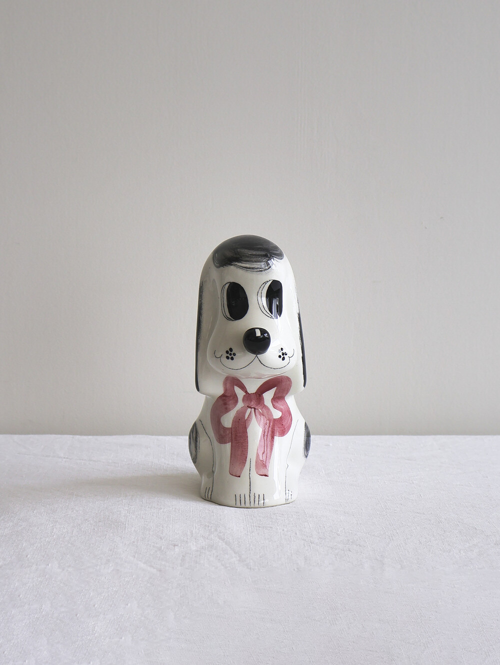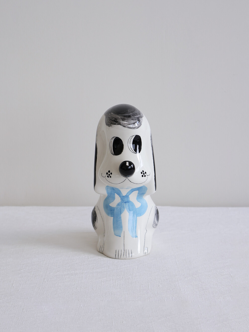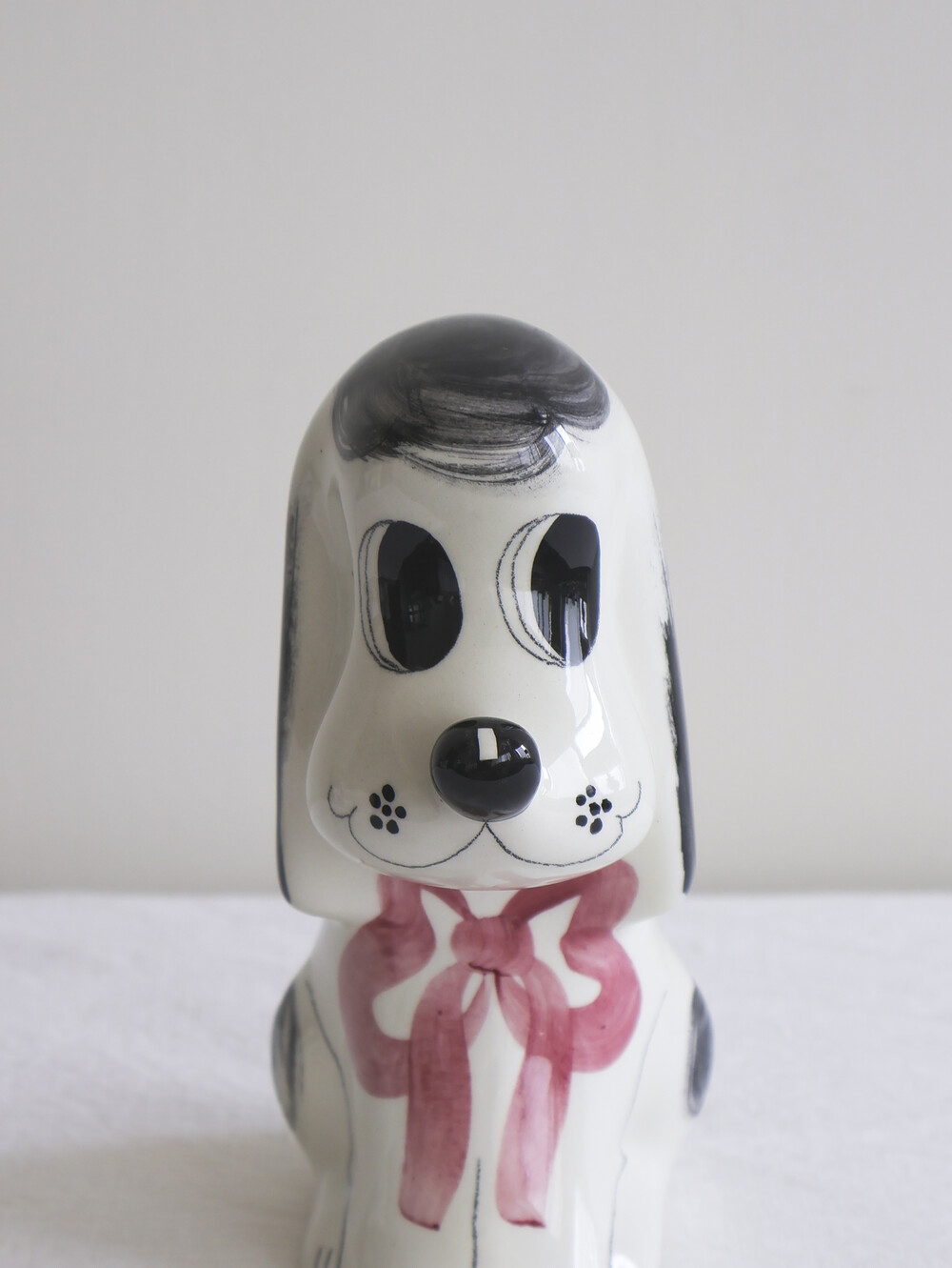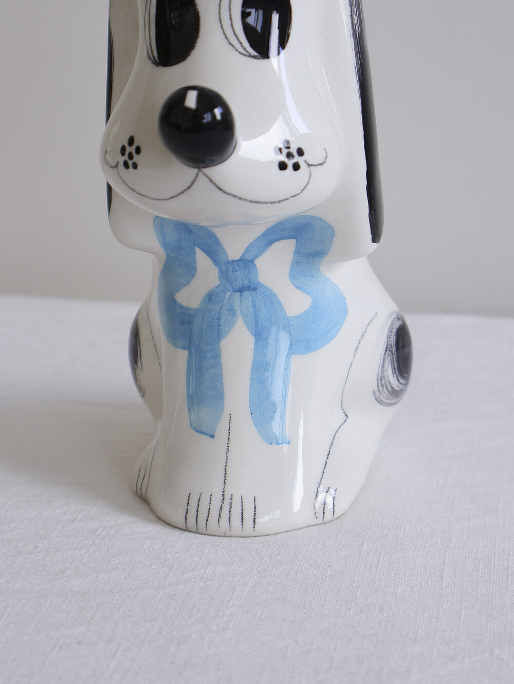 수작업으로 정성스럽게 채색된 강아지 얼굴과, 가슴 앞에 그려진 진홍색 리본 장식이 따뜻한 감성과 유쾌한 분위기를 더해줍니다.