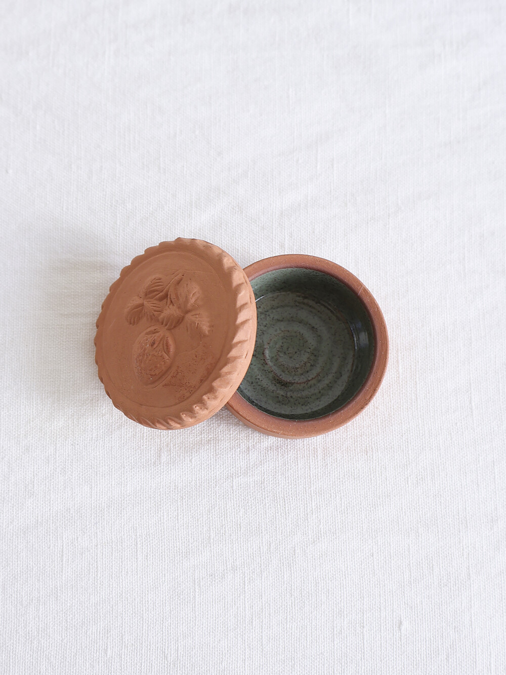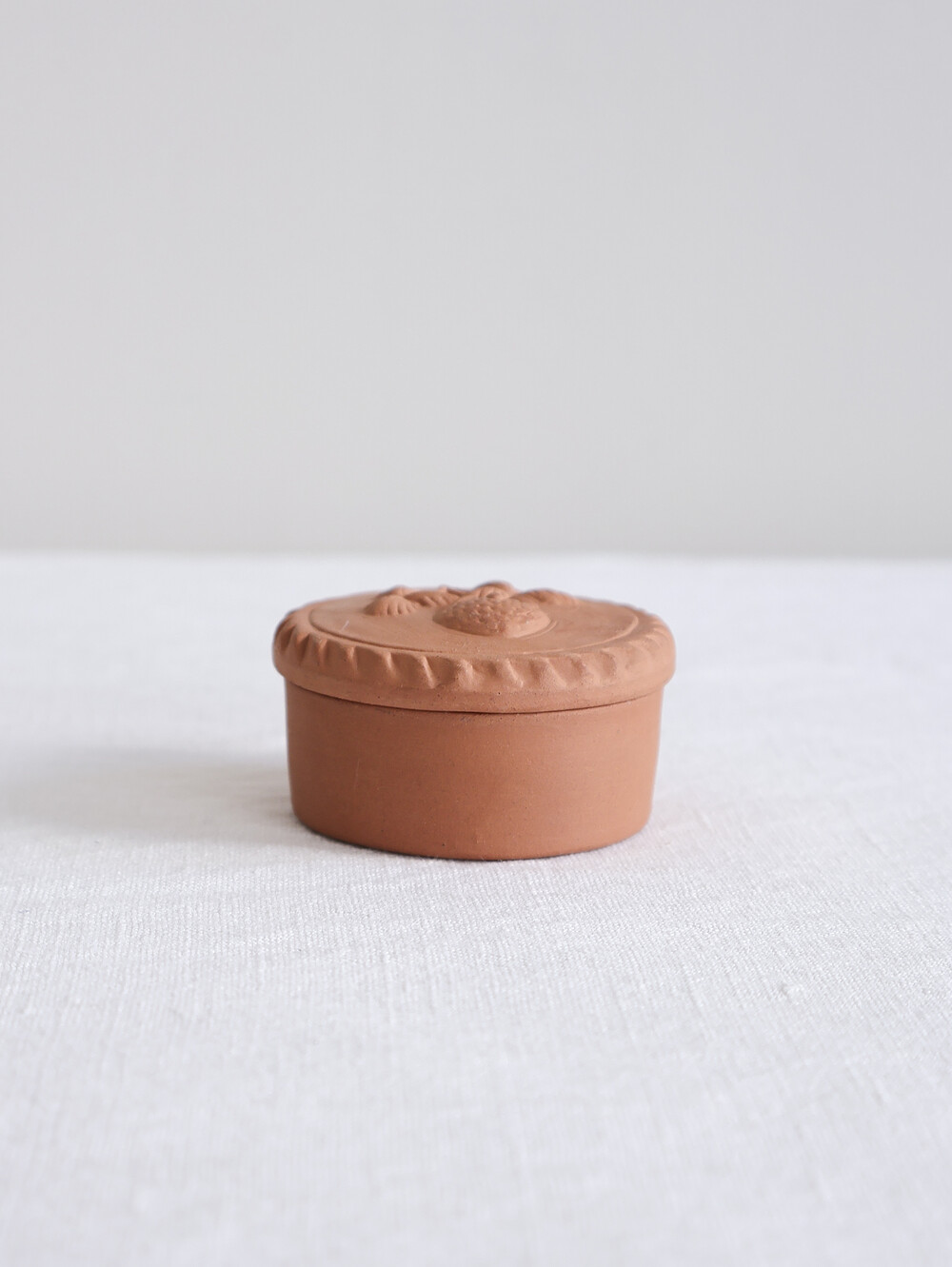 작고 둥근 이 테라코타 함은 마치 오래된 동화 속 한 장면을 떠올리게 합니다.