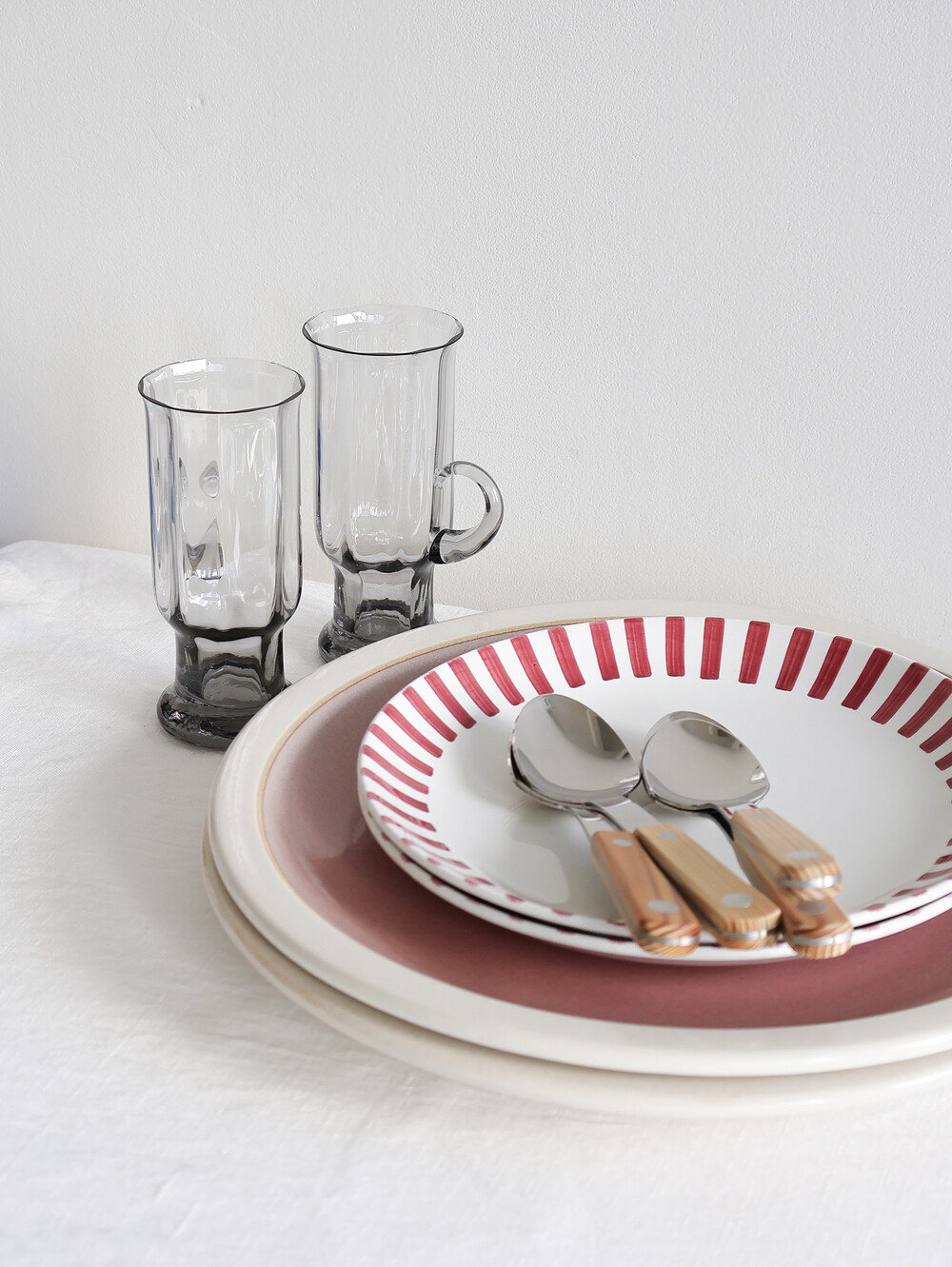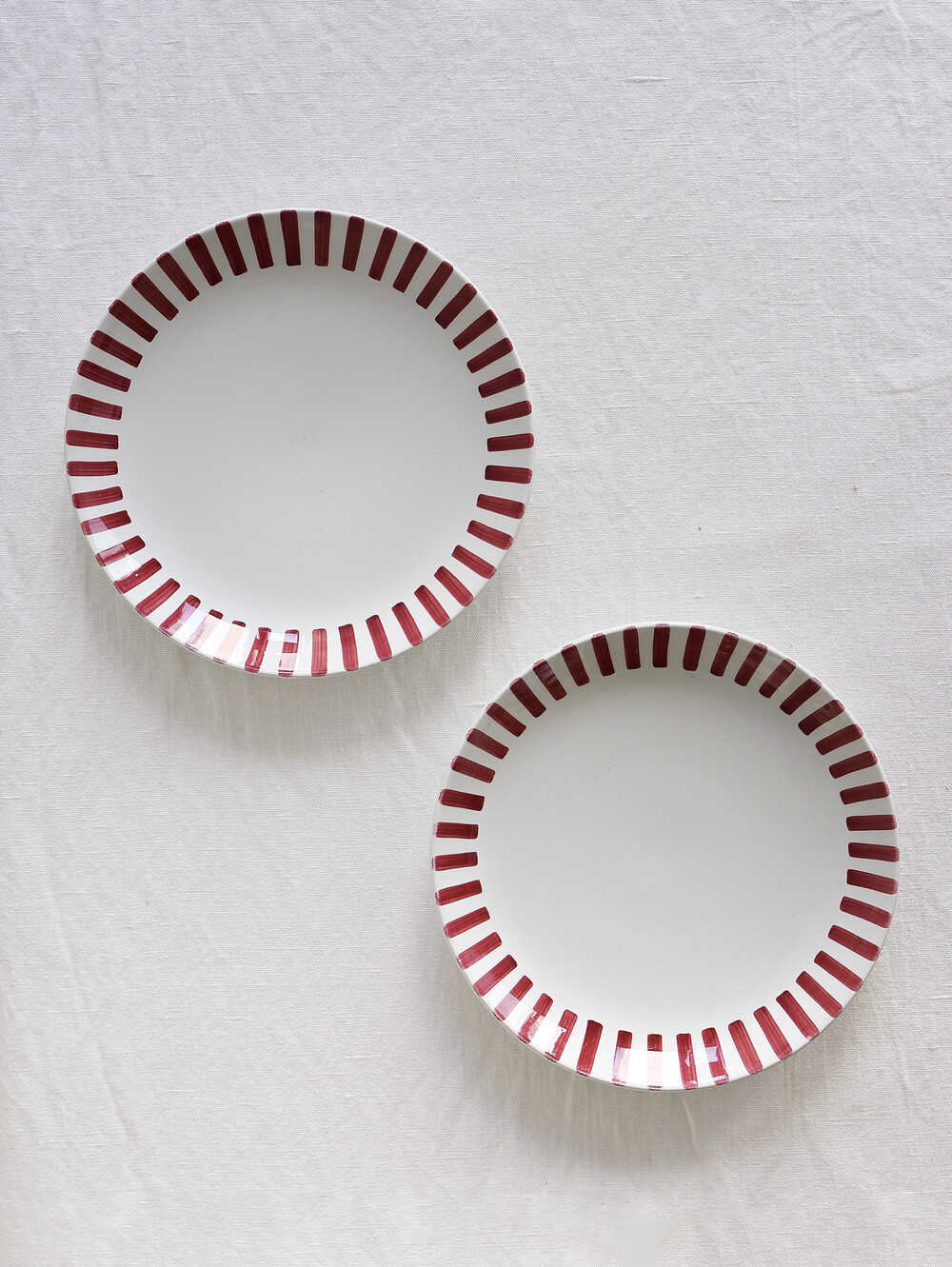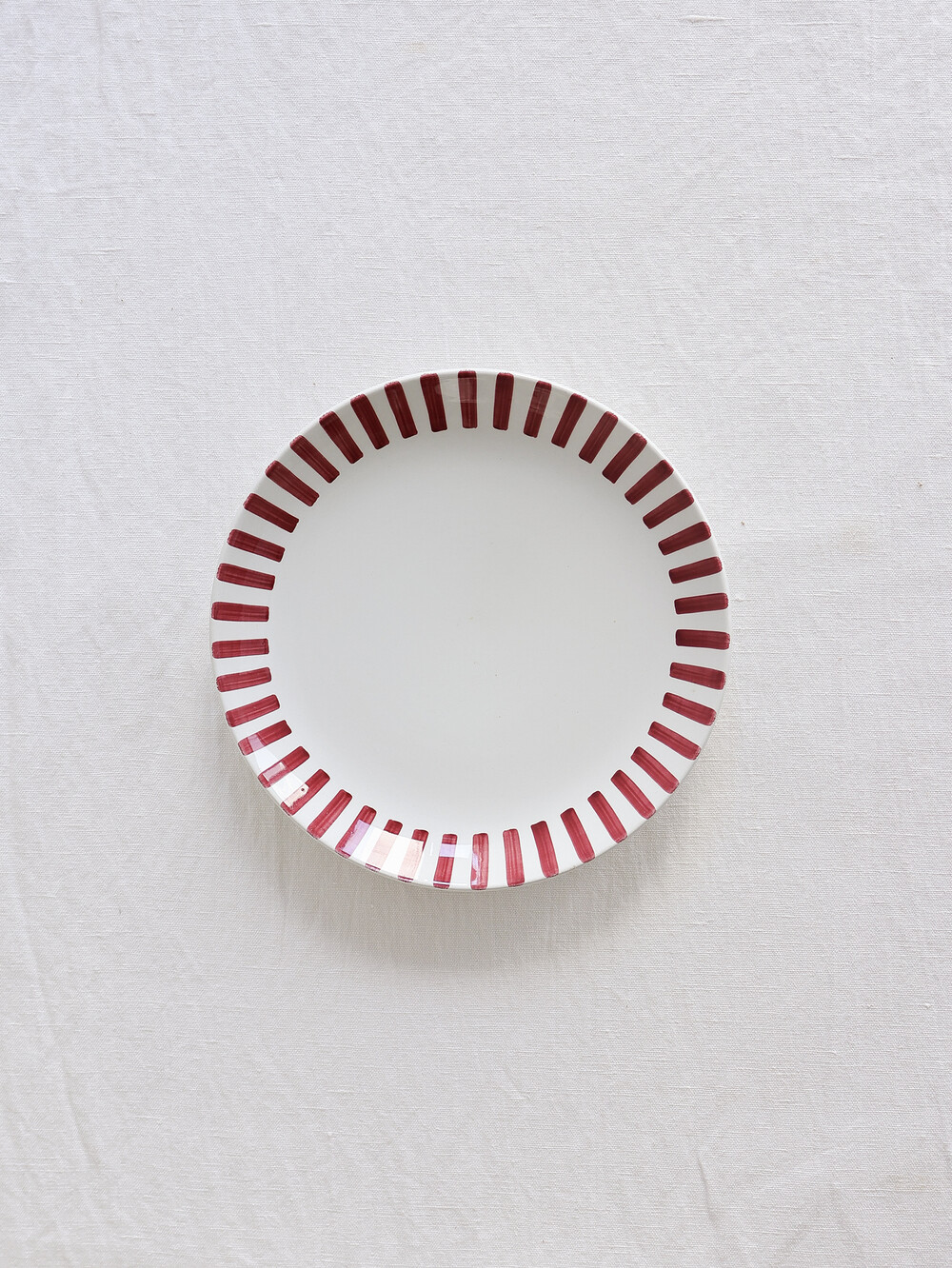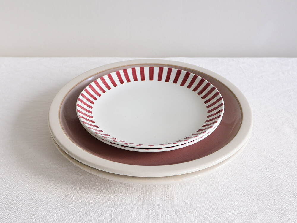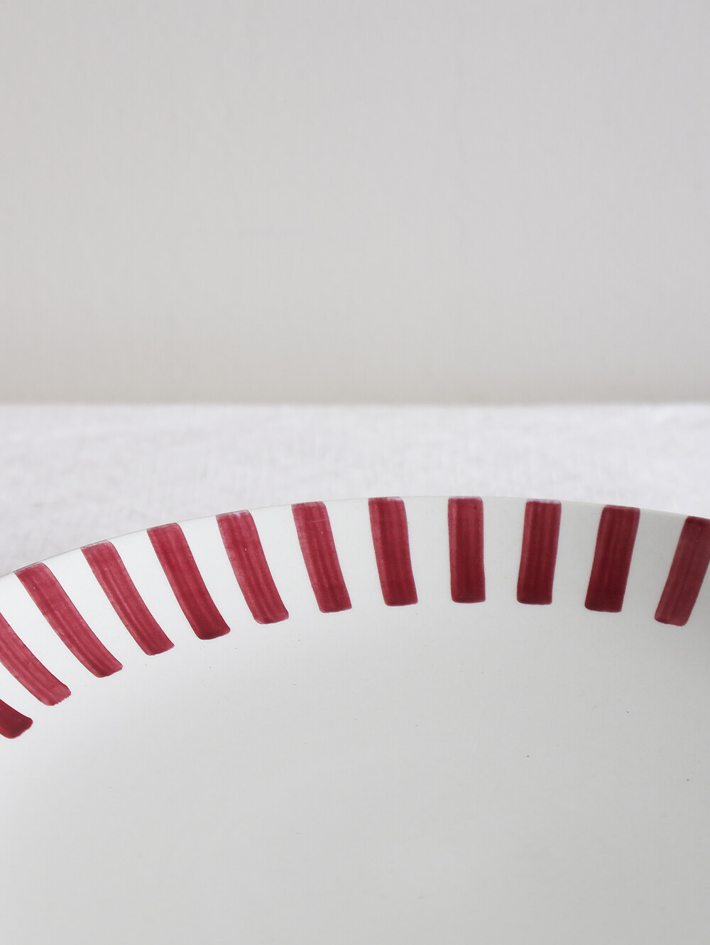 단순하면서도 강렬한 붉은 스트라이프 패턴이 특징으로, 깔끔한 아이보리 바탕 위로 규칙적으로 번지는 붉은 줄무늬가 테이블에 생기를 더해줍니다.