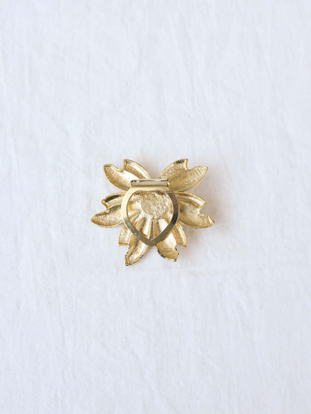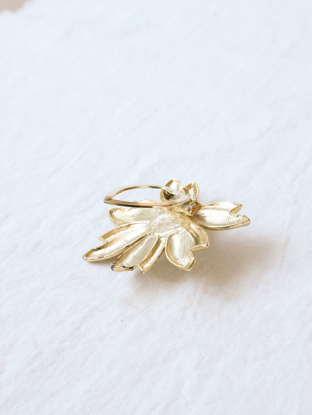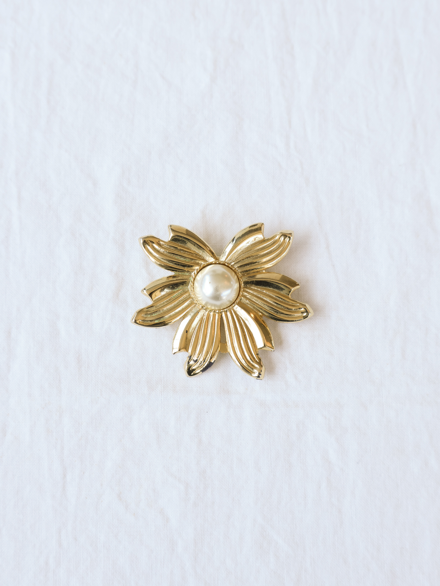부드럽게 펼쳐진 꽃잎 사이로 한 알의 진주가 자리한 브로치입니다.곡선을 살린 골드 톤의 꽃잎은 빛을 받는 각도에 따라 은은하게 반짝이며,