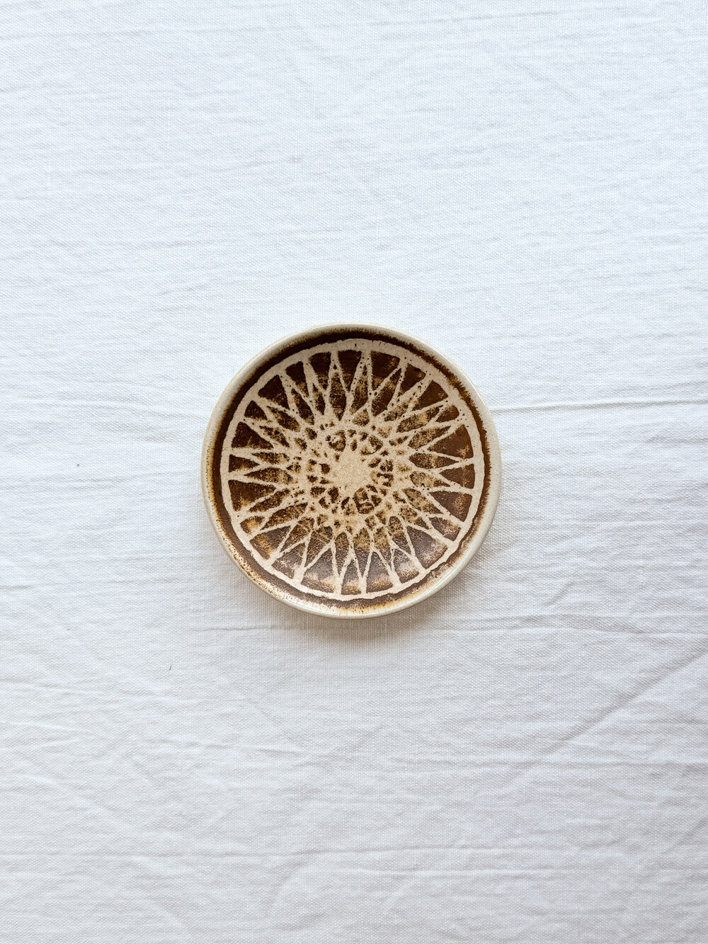 낮고 단정한 형태로 작은 디저트 접시나 액세서리 트레이로 활용하기 좋으며, 사용하지 않을 때에도 테이블 위에서 조형적인 존재감을 드러냅니다.