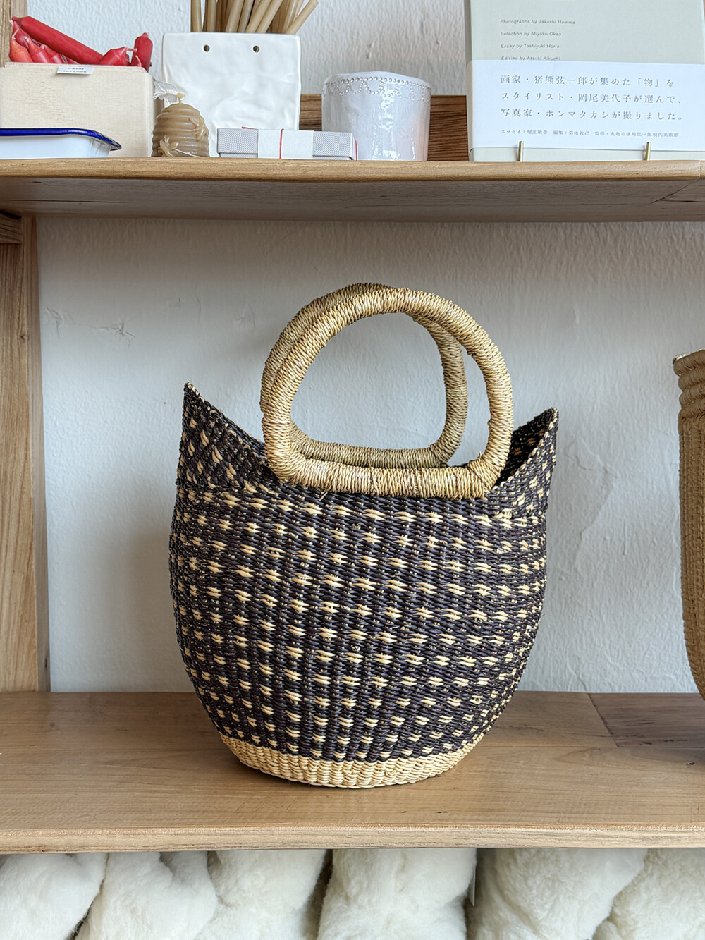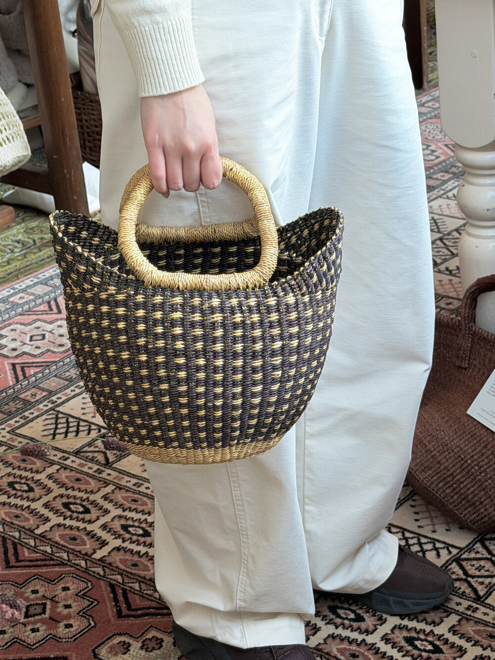지갑과 휴대폰을 넣기 좋은 컴팩트한 사이즈로, 가볍게 외출할 때 사용하기 좋습니다.튼튼한 수초 식물인 엘리펀트 그래스를 장인의 손으로 하나하나 엮어 완성해 견고하면서도 따뜻한 분위기를 지닙니다.